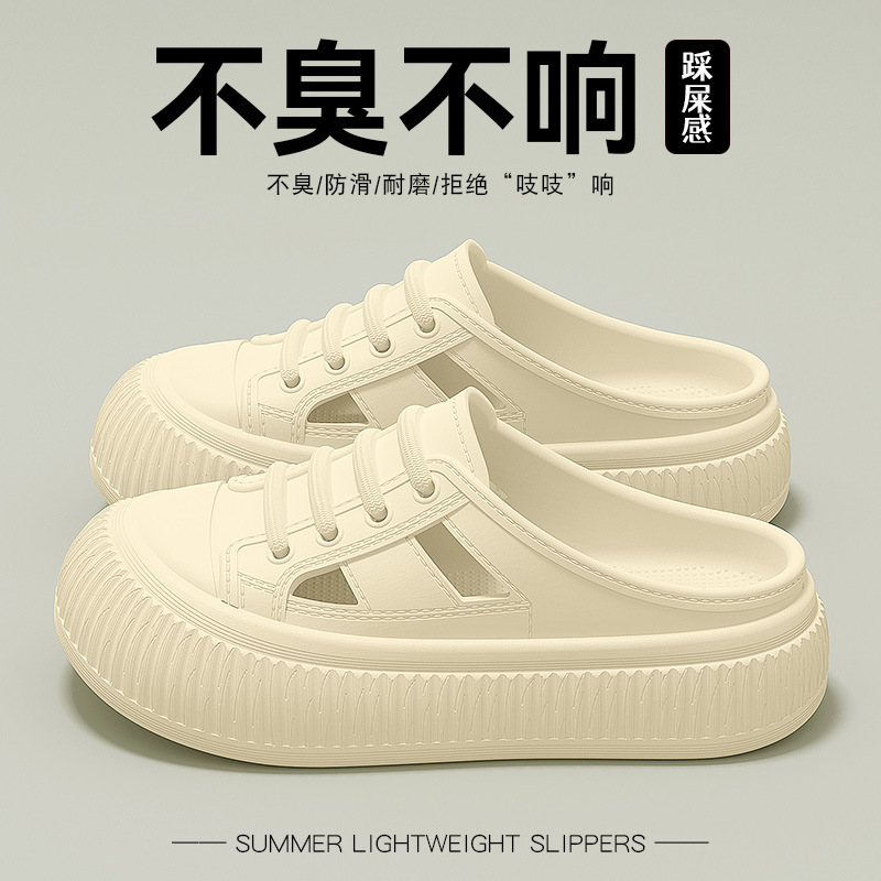 洞洞鞋女夏季2025新款外穿防滑舒适透气踩屎感沙滩厚底包头凉拖鞋