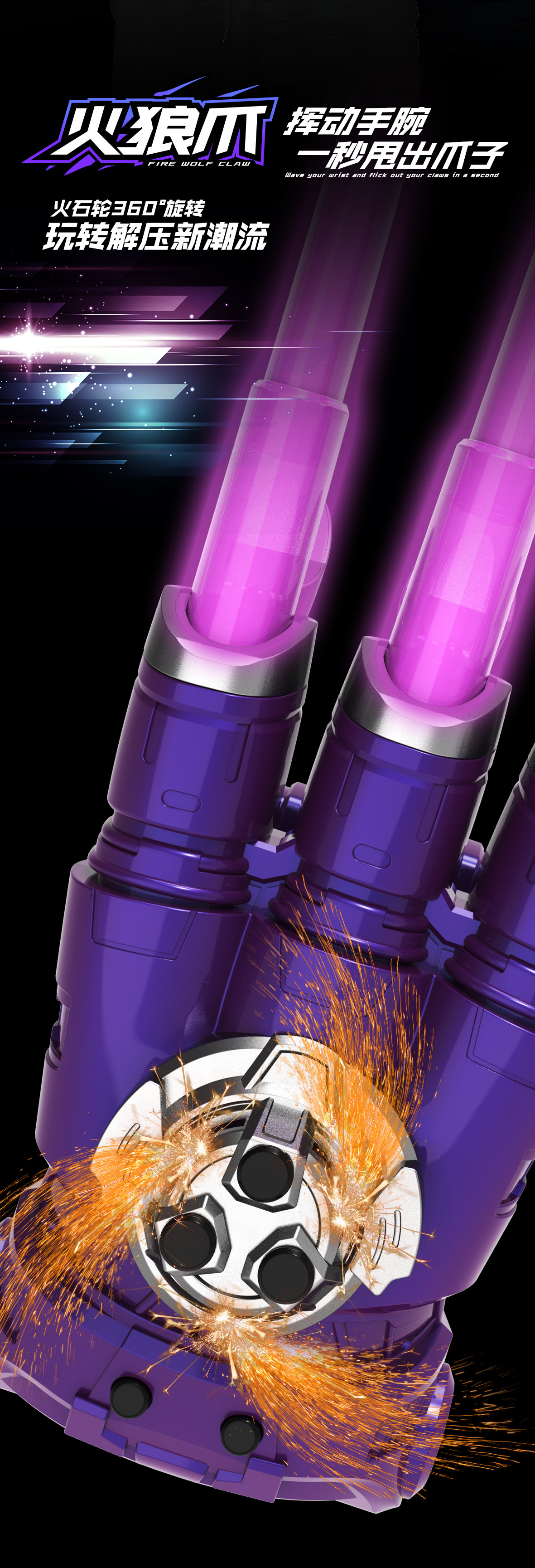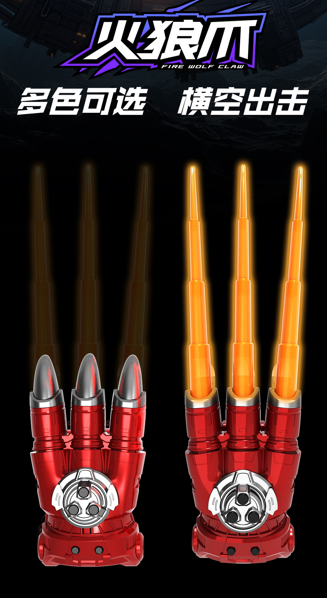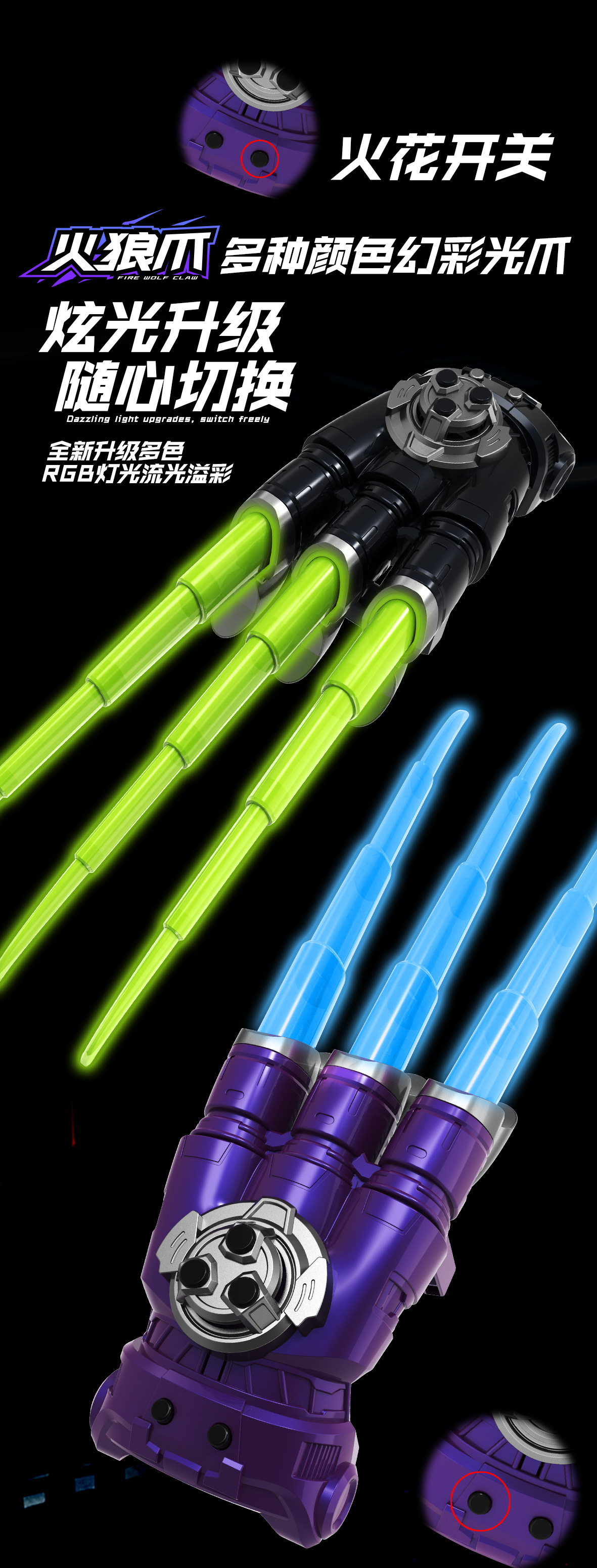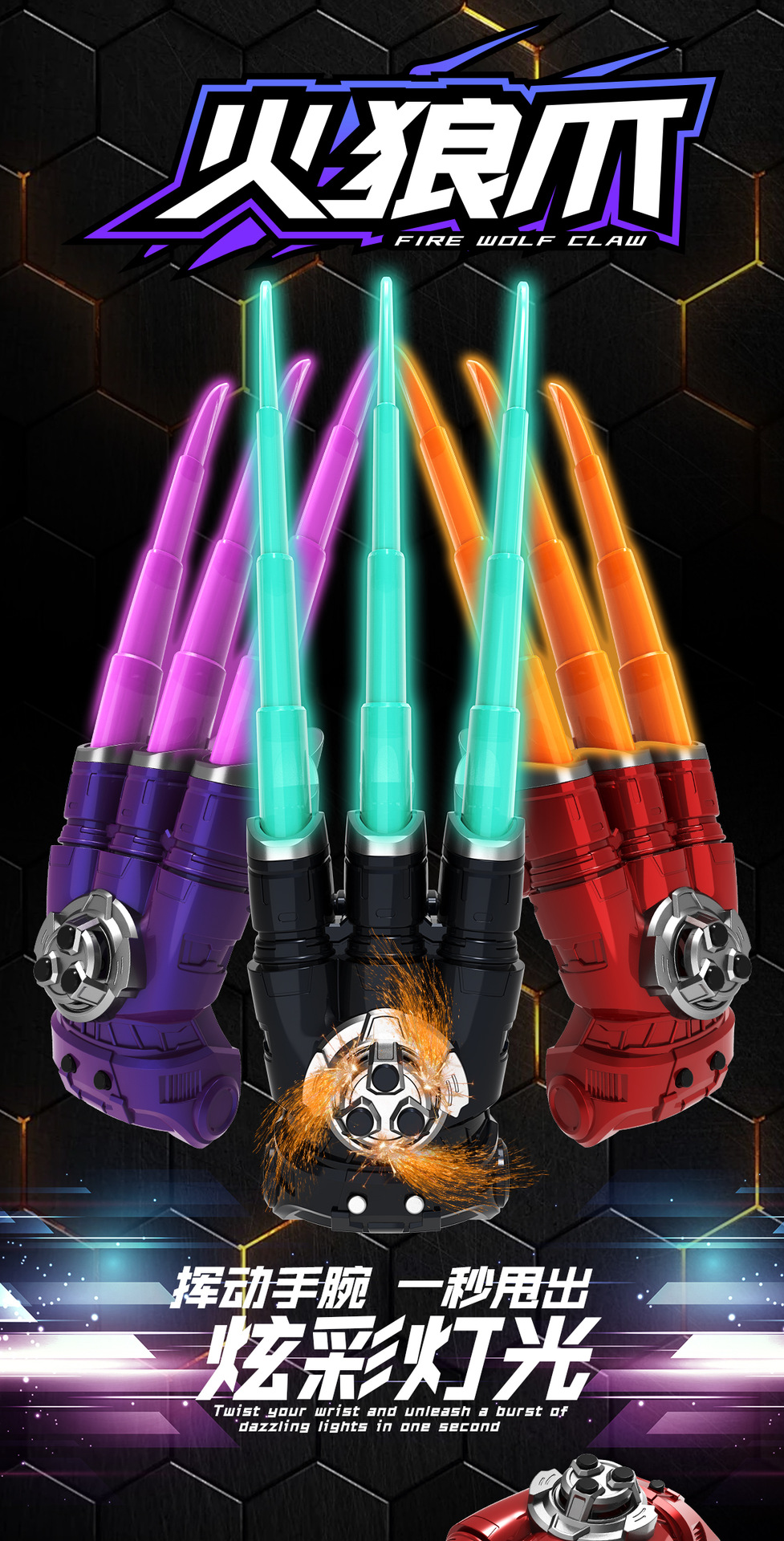 抖音同款火狼爪旋转火花可伸缩穿戴七彩灯光音效金刚狼爪发光玩具