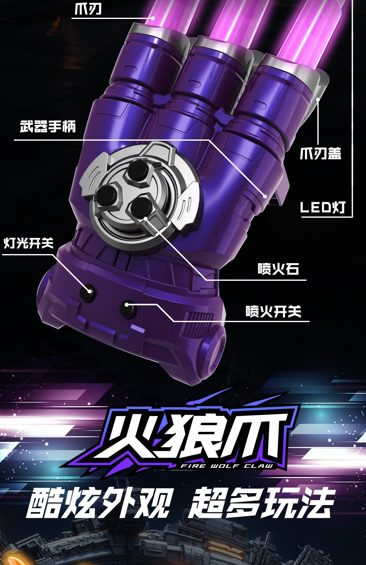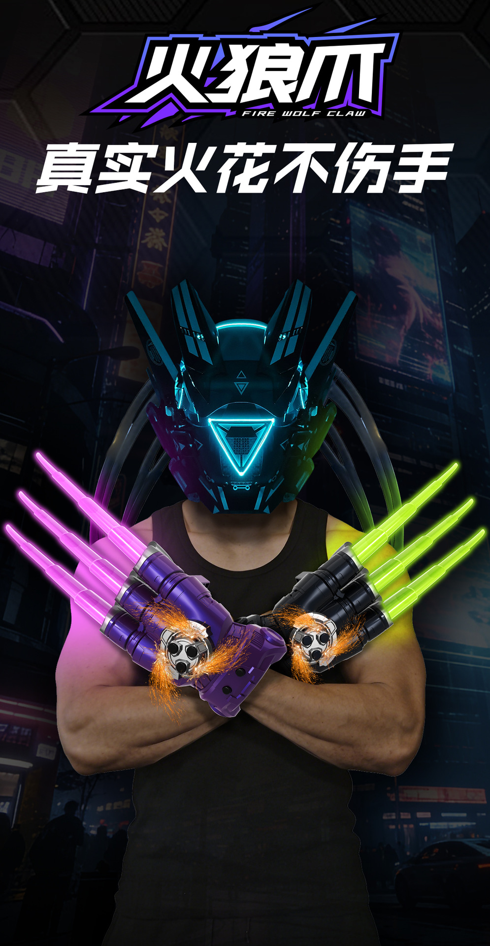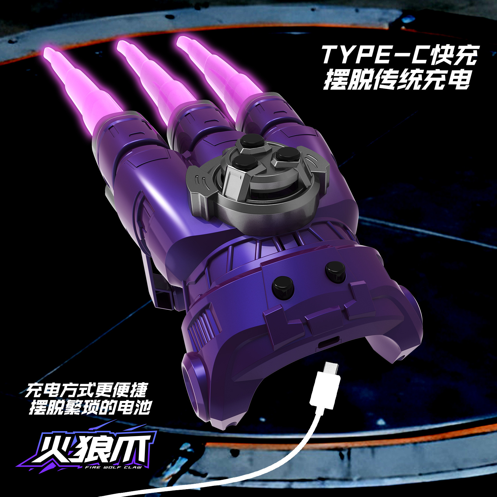 抖音同款火狼爪旋转火花可伸缩穿戴七彩灯光音效金刚狼爪发光玩具