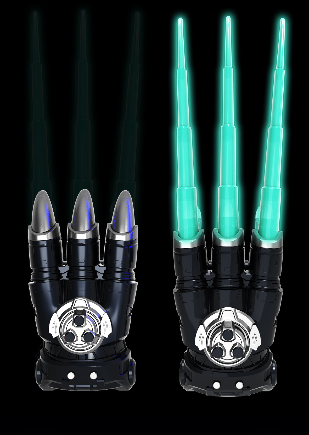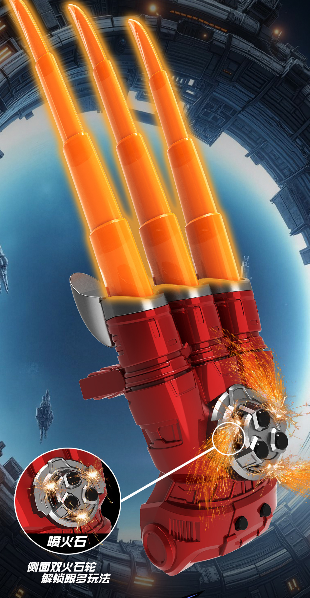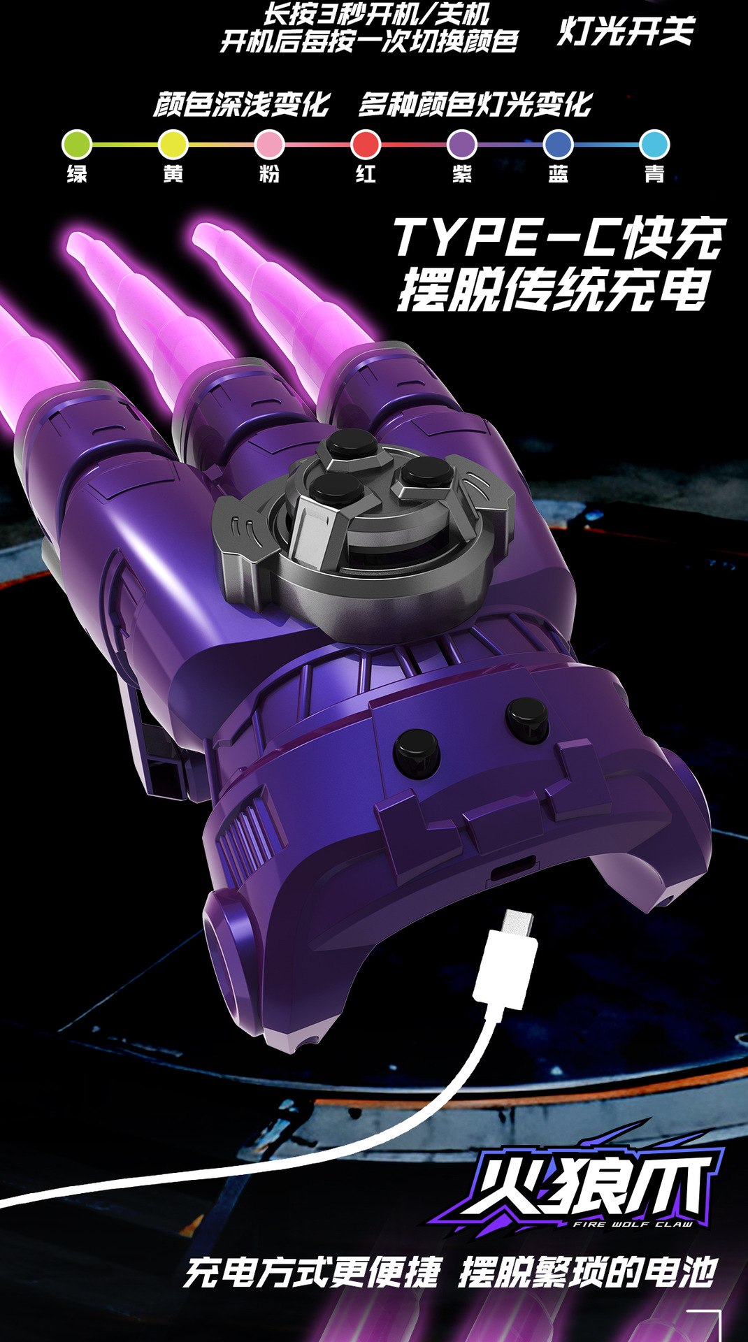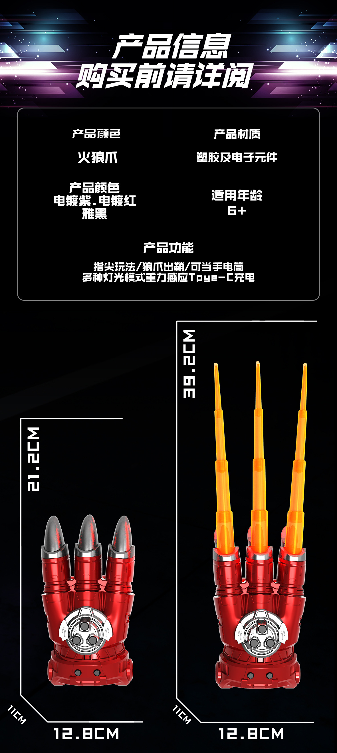 抖音同款火狼爪旋转火花可伸缩穿戴七彩灯光音效金刚狼爪发光玩具