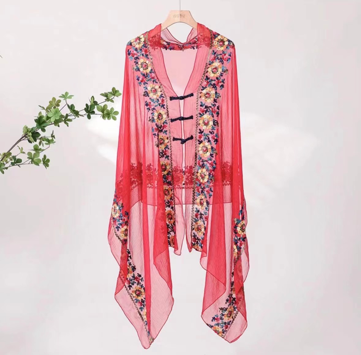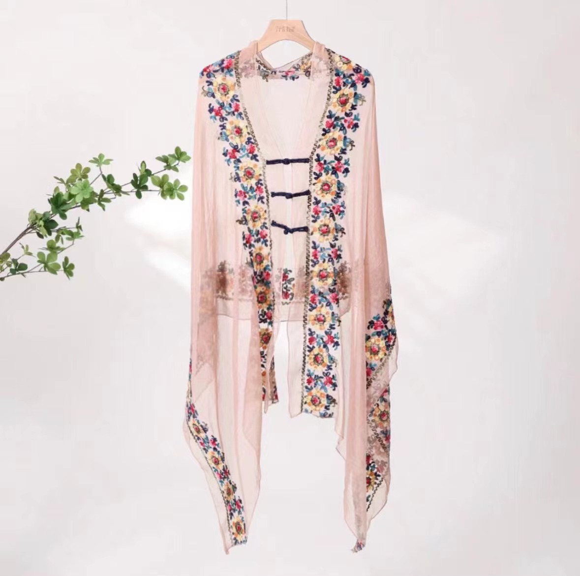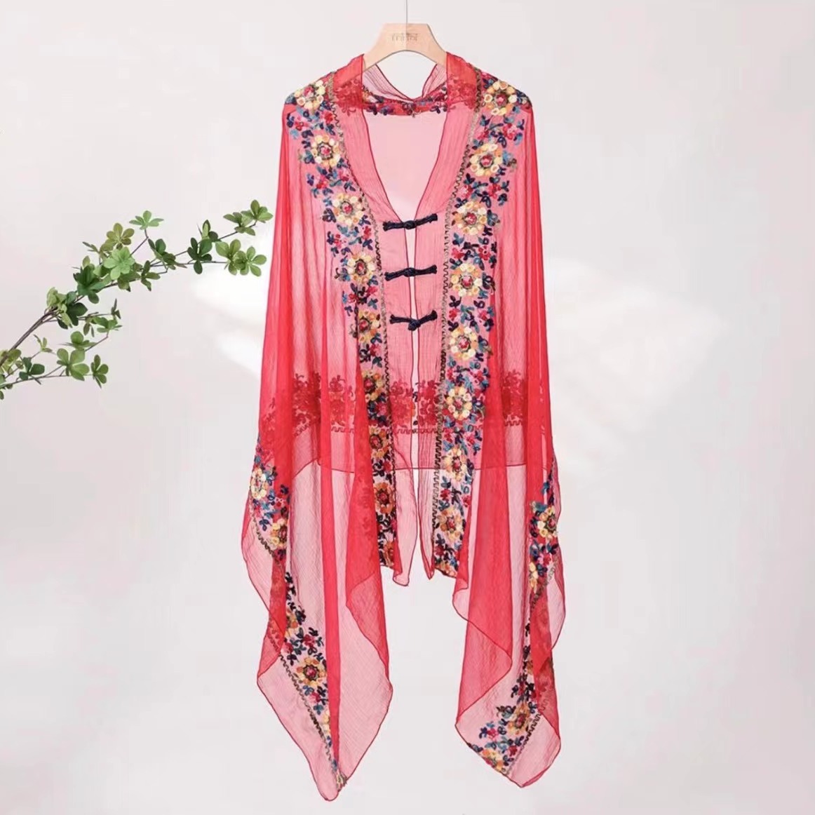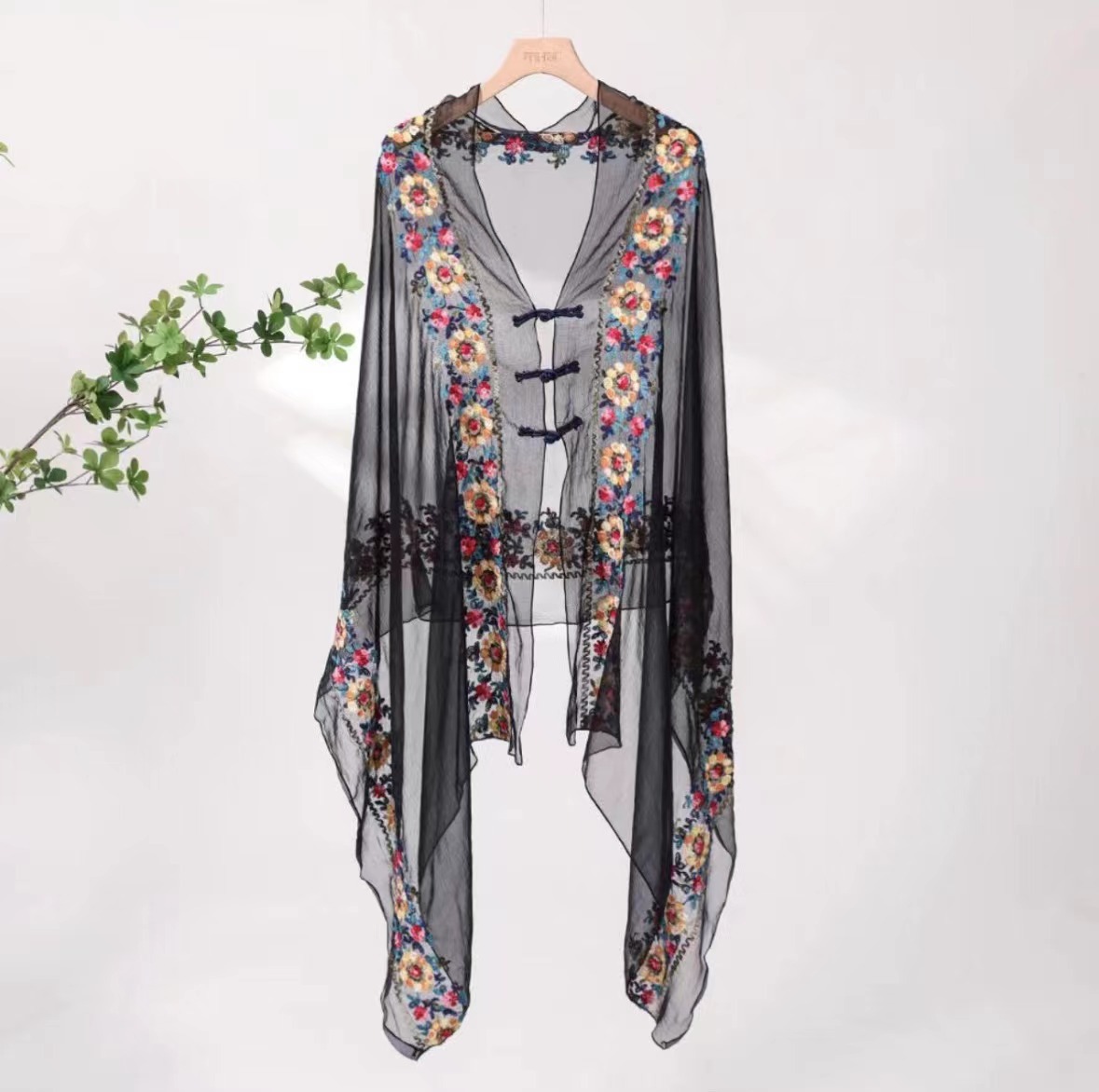 披肩女外搭民族风夏季新款刺绣琉璃纱时尚百搭防晒衣遮阳旅行披风