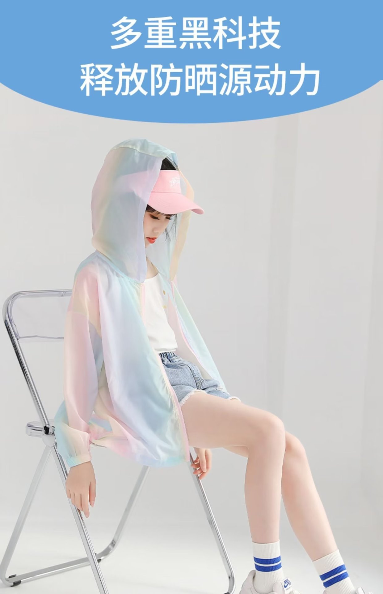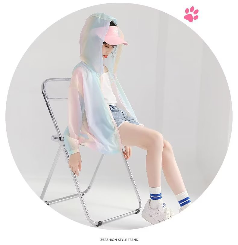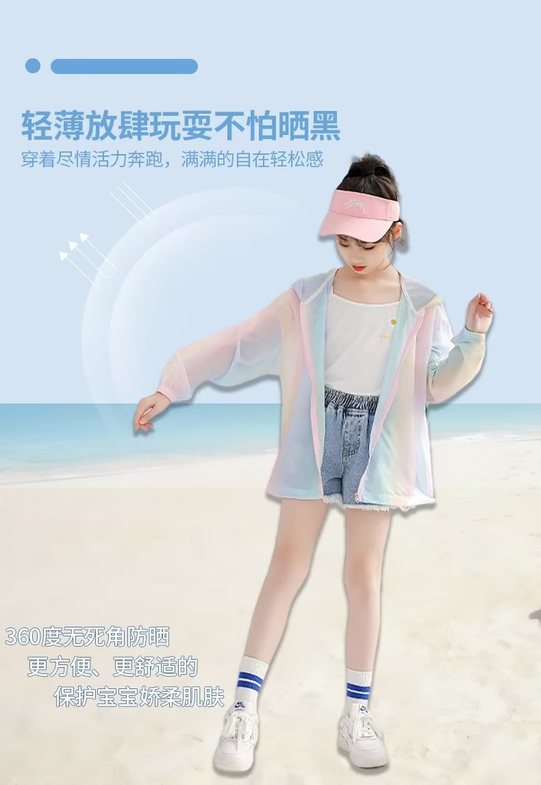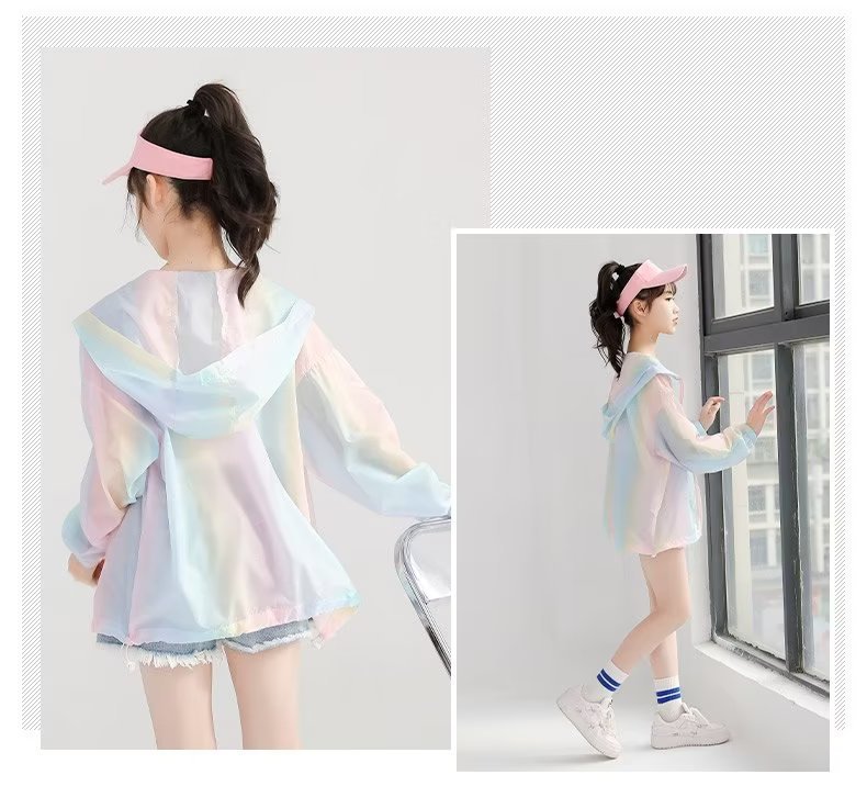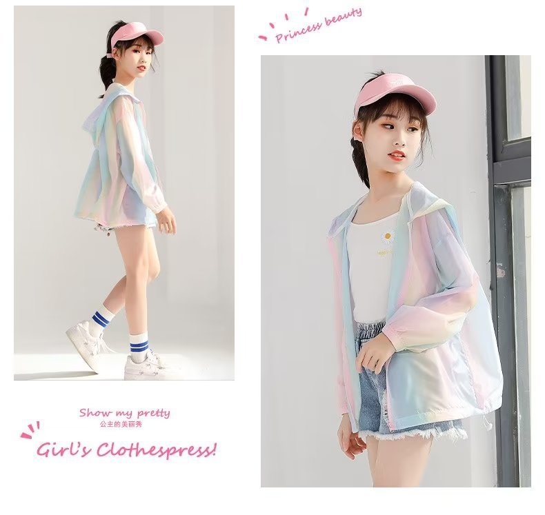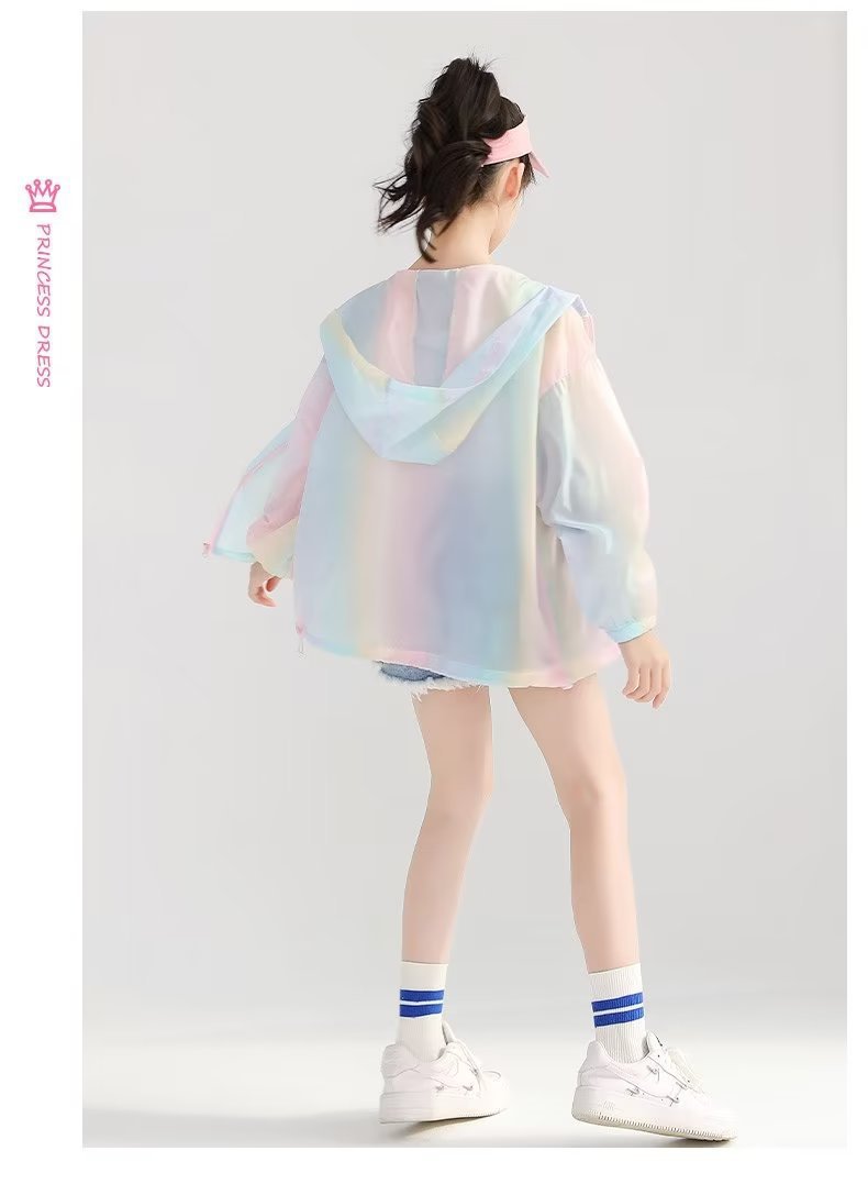 女童防晒衣夏季薄款中大童新款冰丝彩虹防晒外套儿童宽松潮流上衣