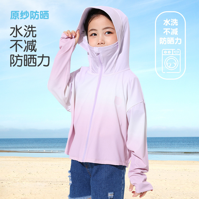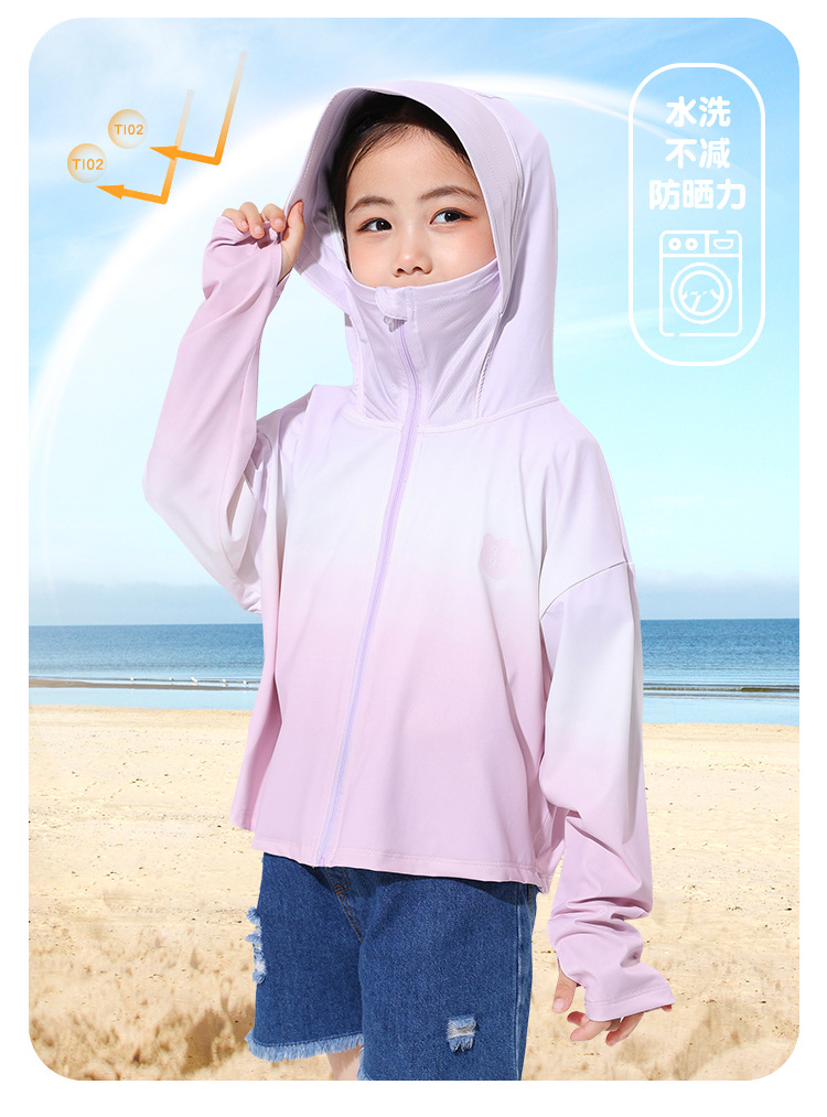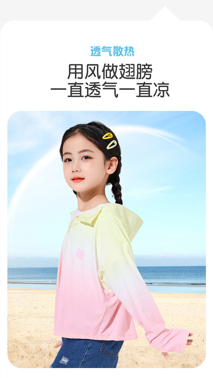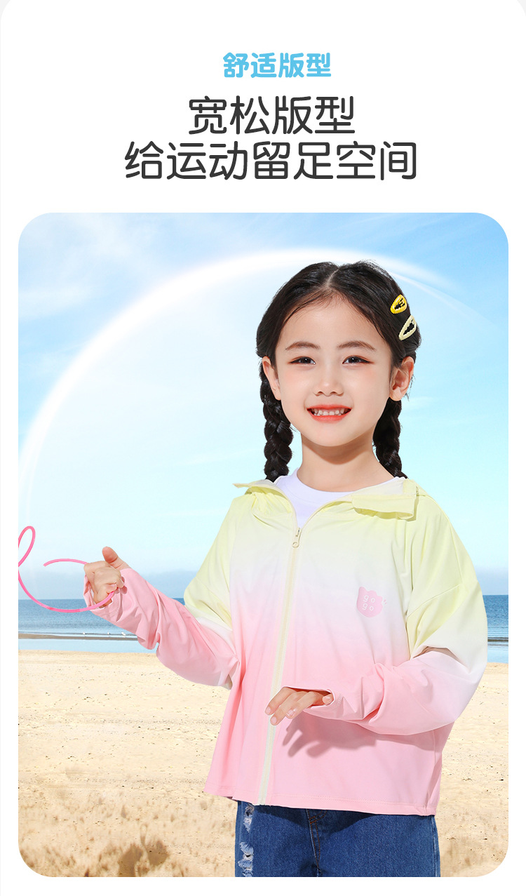 2024新款渐变儿童防晒连帽男女童防晒UPF50+小女孩户外运动防晒衣