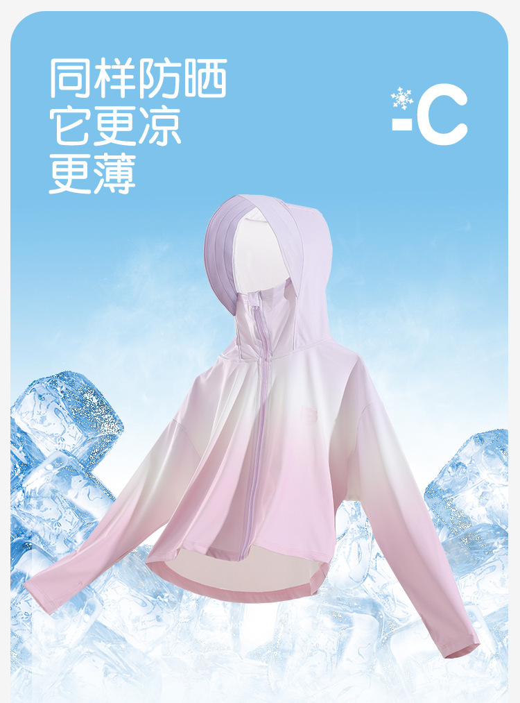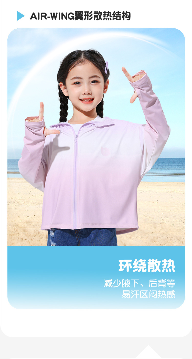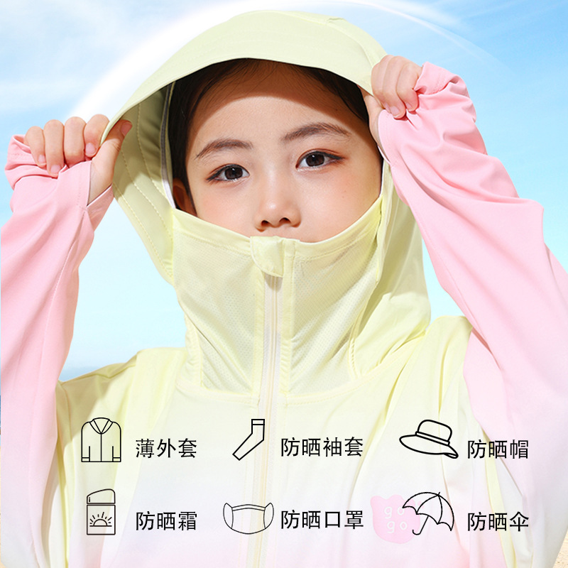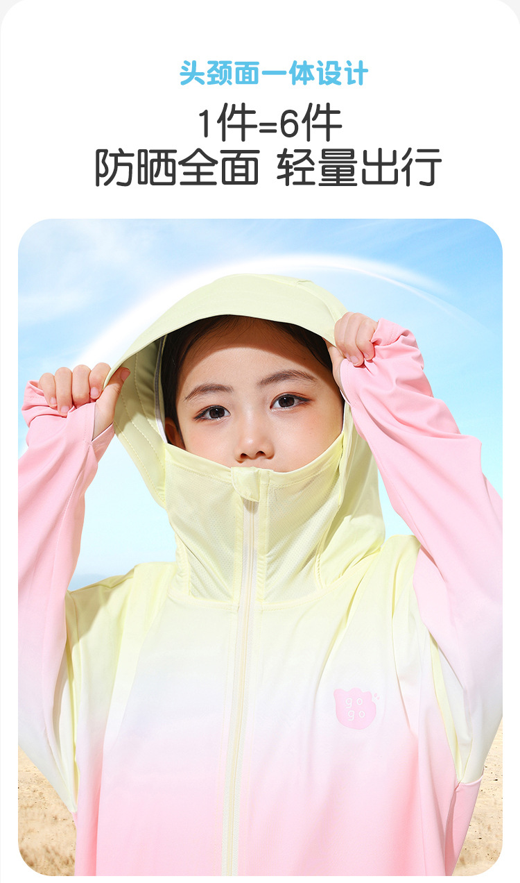 2024新款渐变儿童防晒连帽男女童防晒UPF50+小女孩户外运动防晒衣