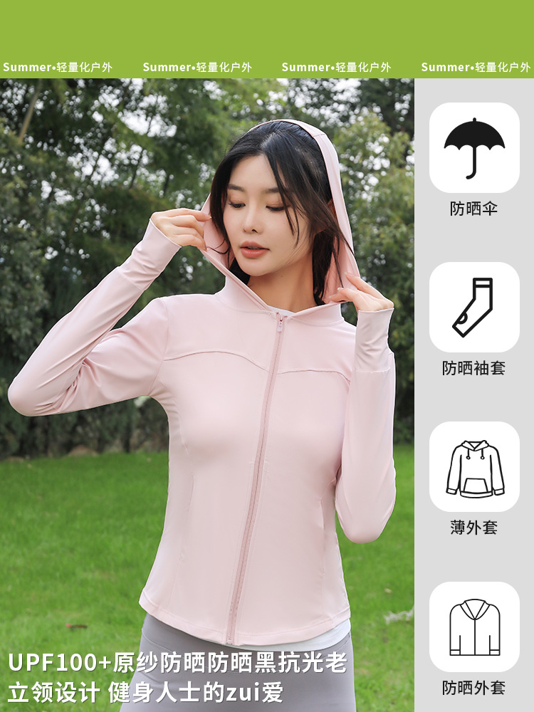 原纱防晒服修身防晒衣外套女夏季户外连帽紫外线骑行运动防晒外套