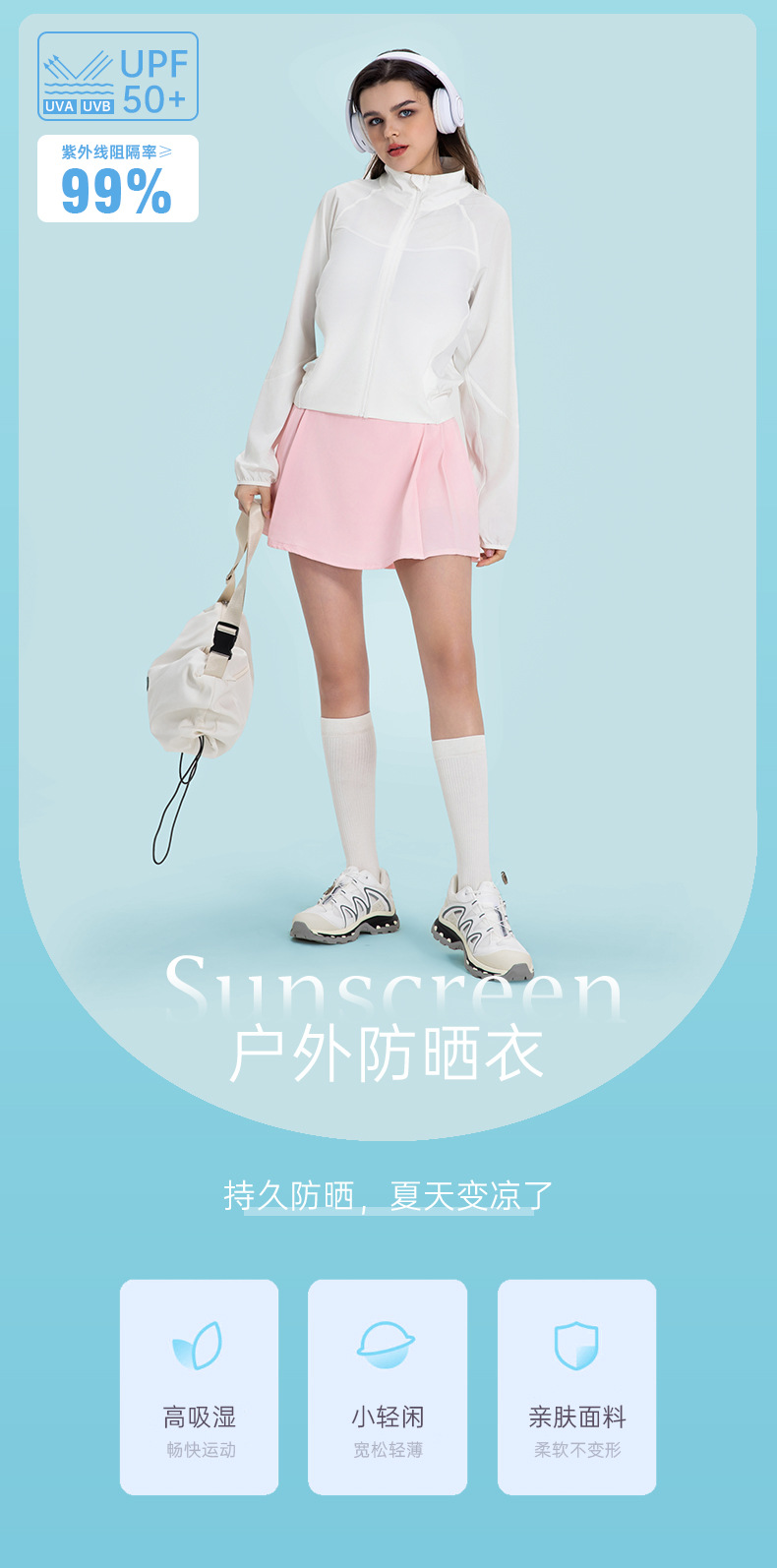 户外新款原纱冰感UPF50+防晒衣女时尚吸湿排汗宽松运动外套DSS065