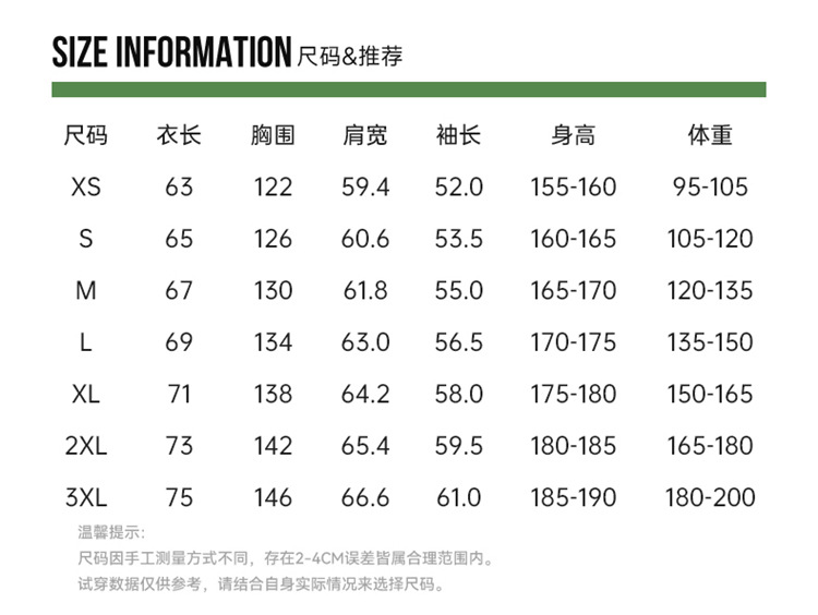 | 3XL【女款180-200斤】 | USD $13.57 | 1221 piece available |