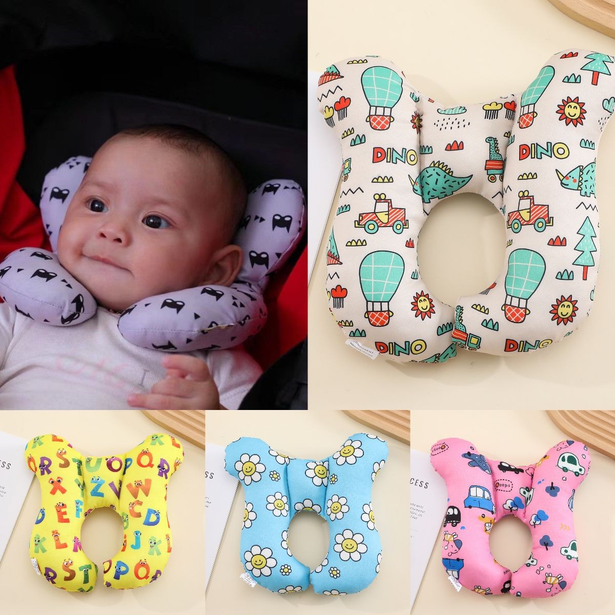 新款卡通儿童图案儿童U型枕 外出旅行推车护颈婴儿头部定型枕现货
