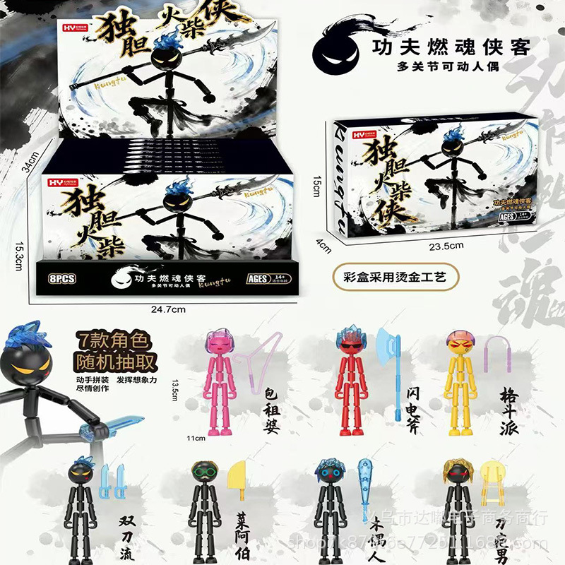 功夫燃魂侠客男孩格斗独胆火柴侠火柴人多关节可动人偶玩具拼装