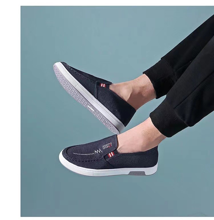 一件代发新款男学生鞋一脚蹬牛仔帆布老北京布鞋时尚休闲 懒 人鞋
