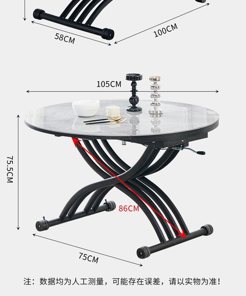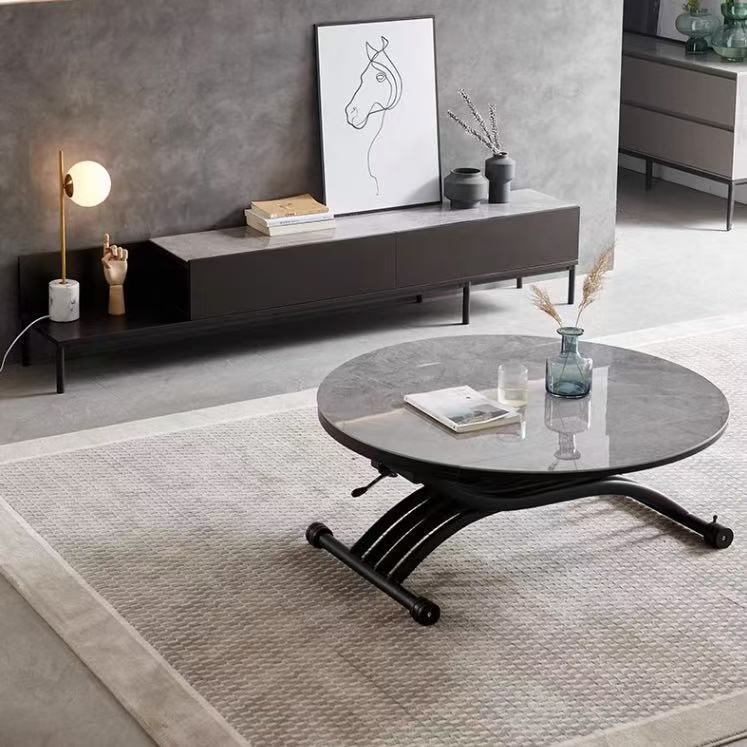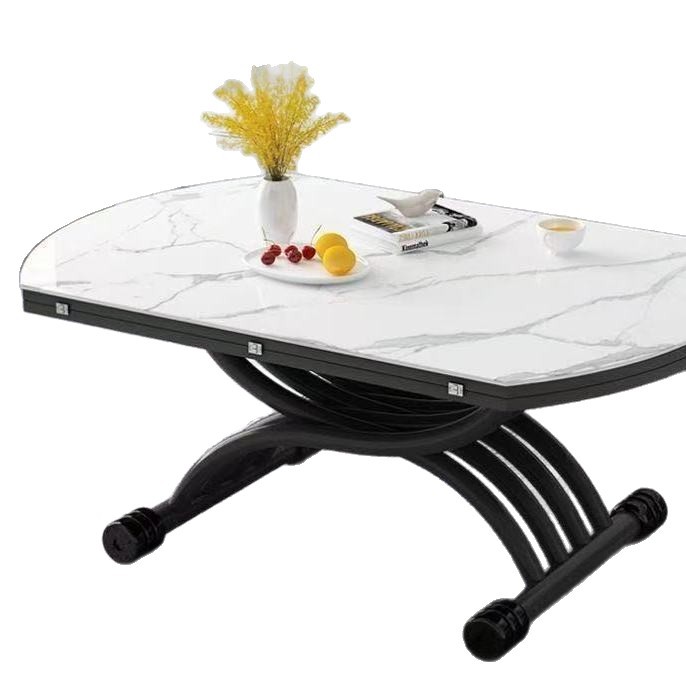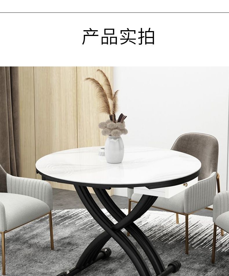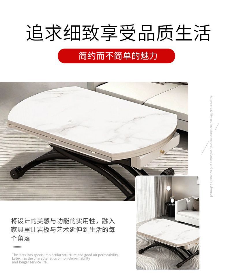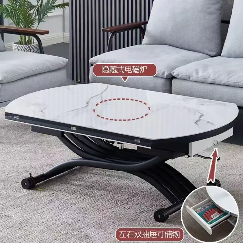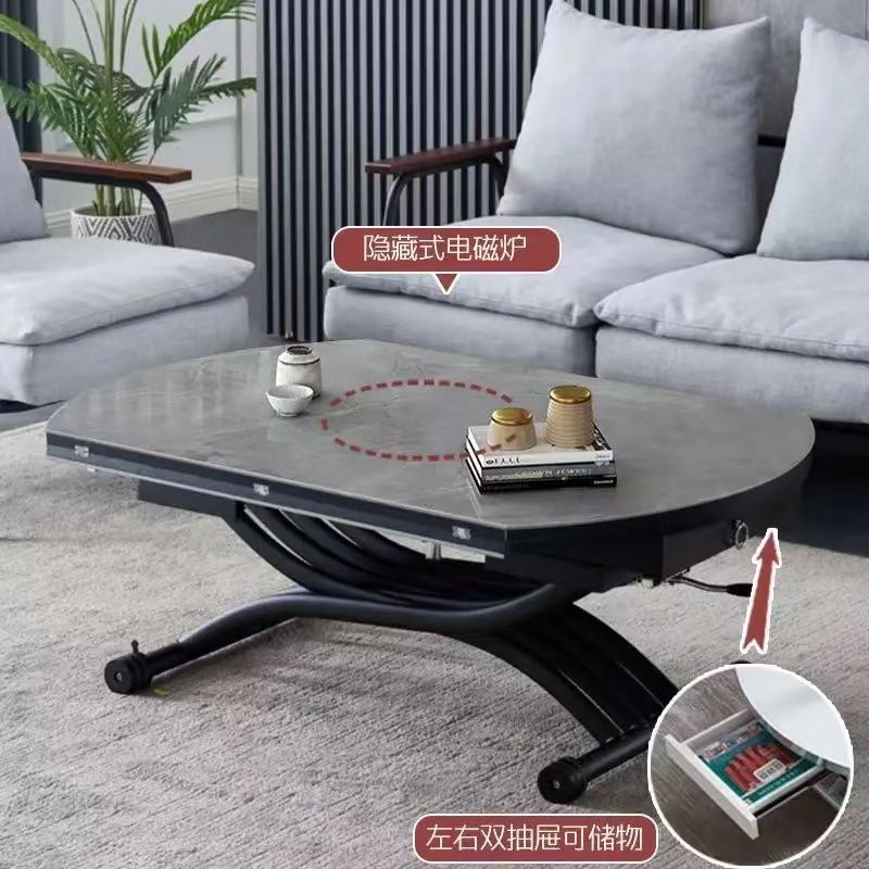 可移动升降茶几升降岩板餐桌一体式饭桌岩板玻璃客厅茶几