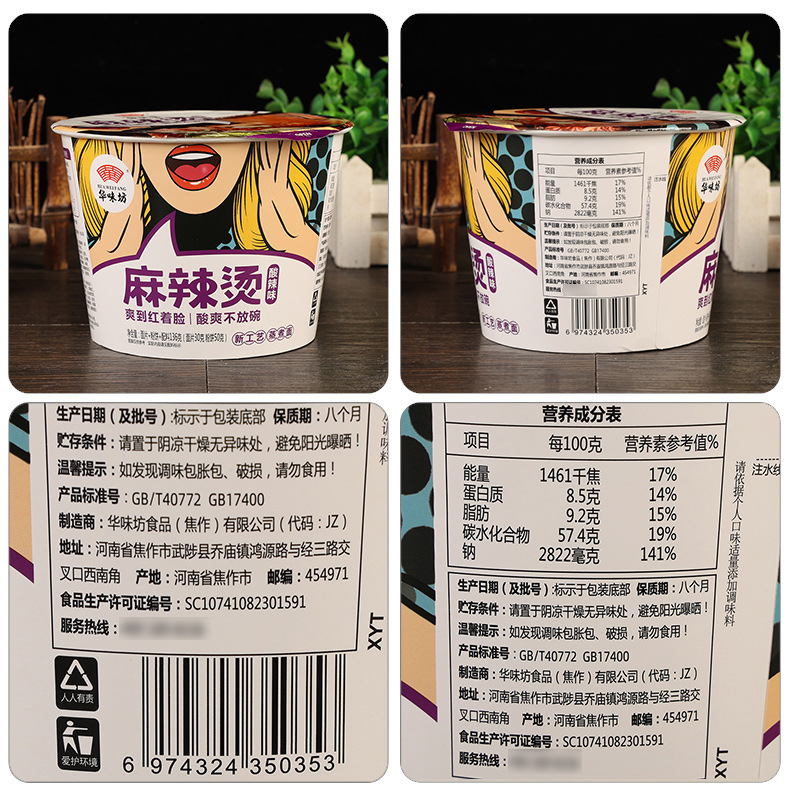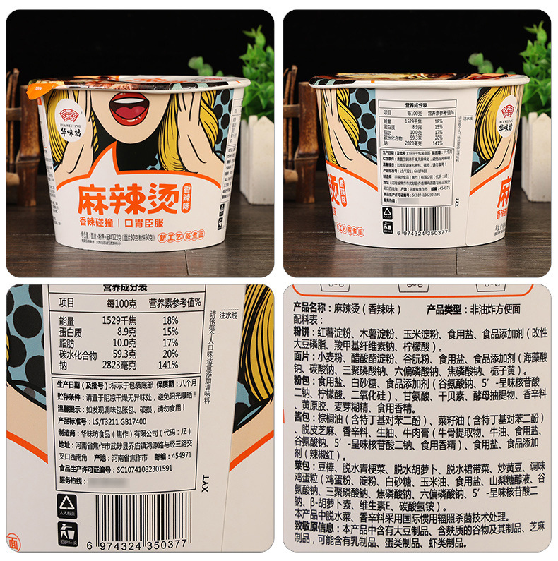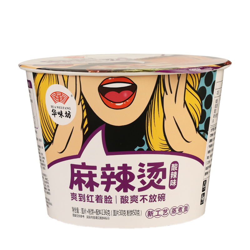 包邮华味坊麻辣烫桶装泡面酸辣粉宿舍冲泡免煮速食方便面整箱批发