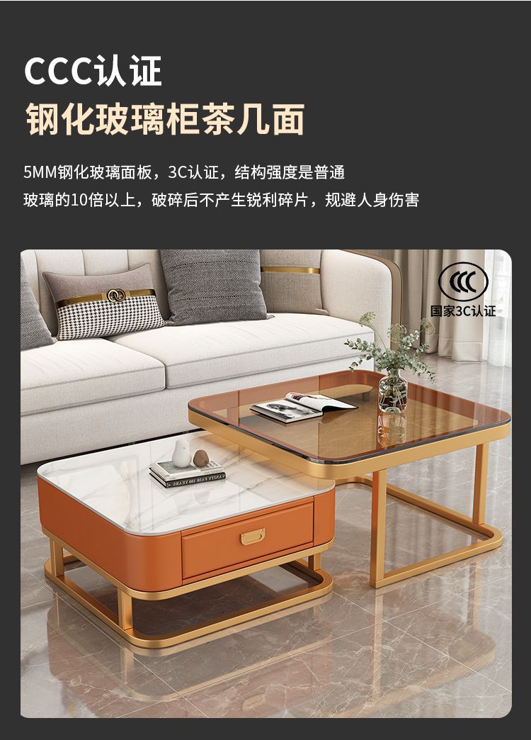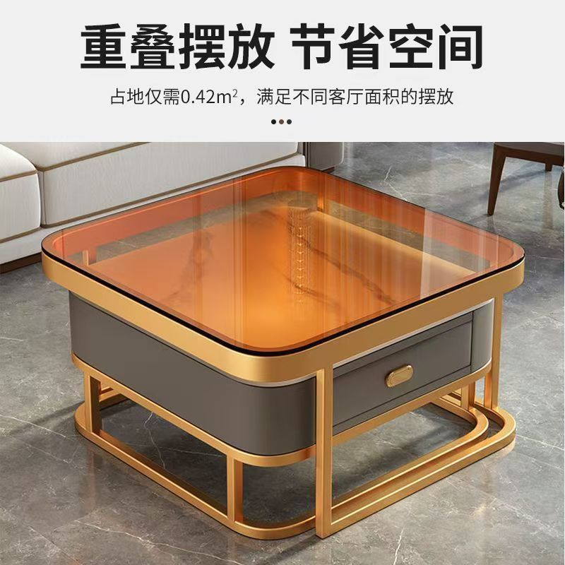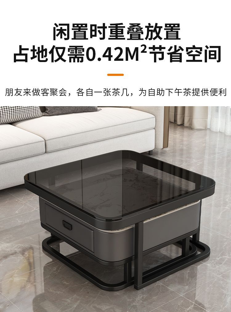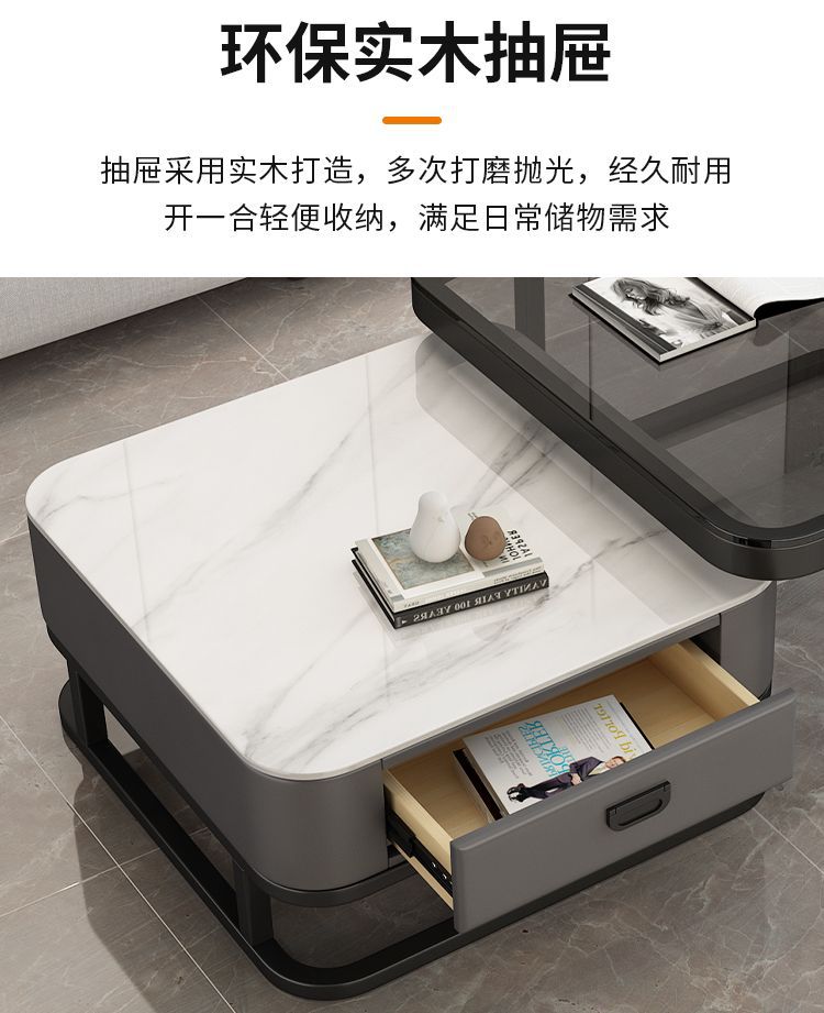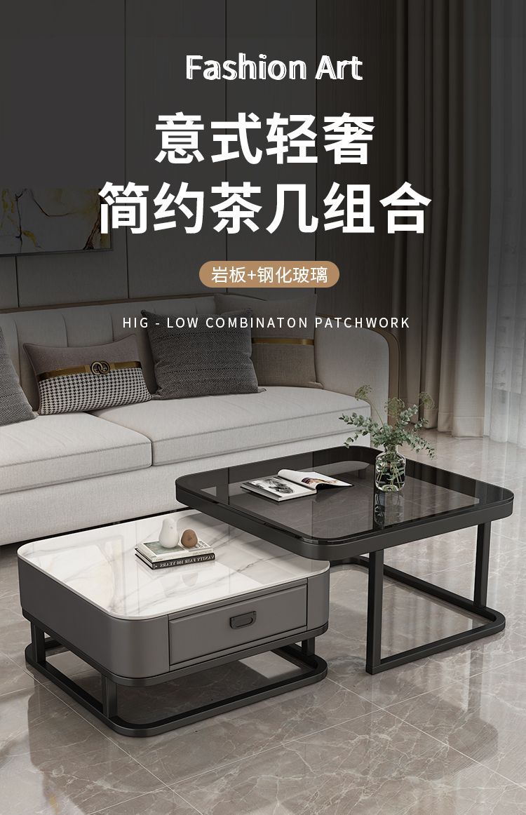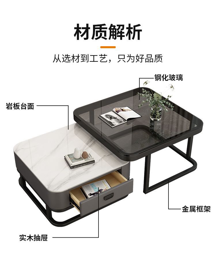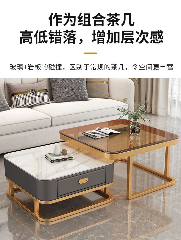 轻奢茶几客厅家用现代简约小户型网红方形玻璃岩板茶几电视柜组合