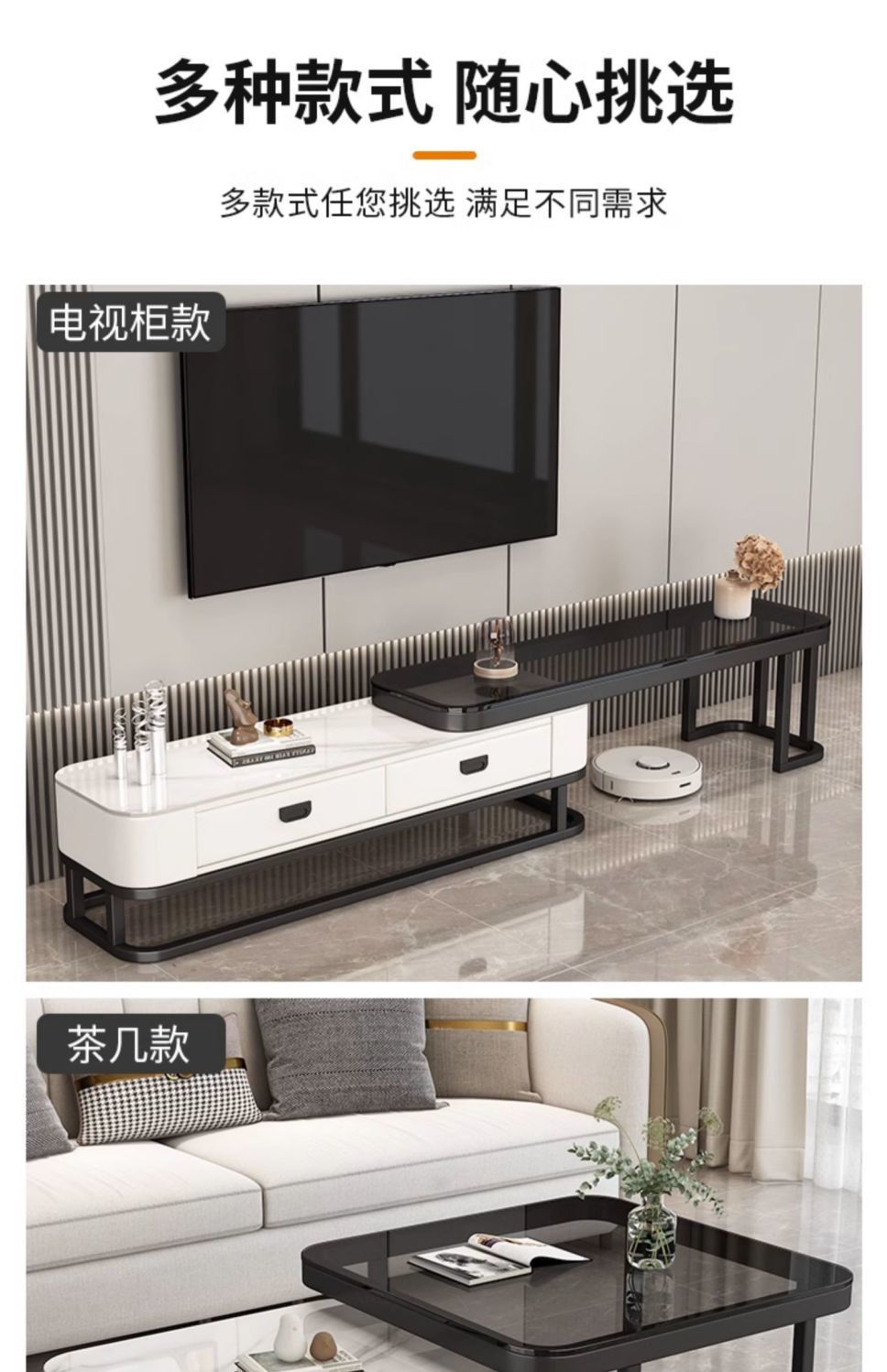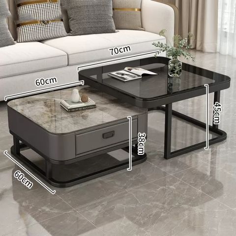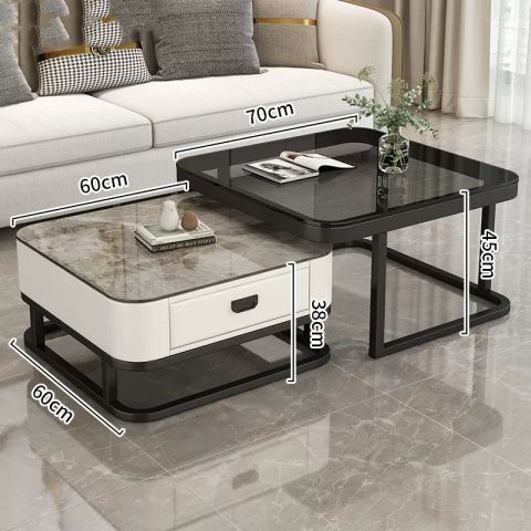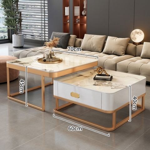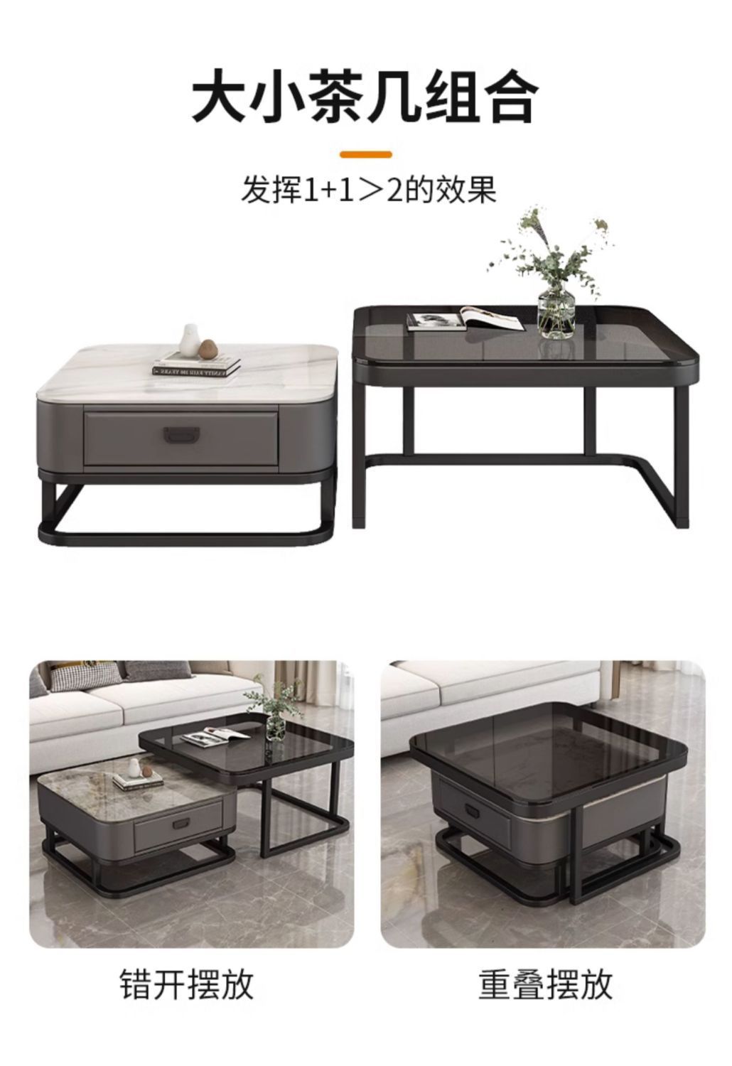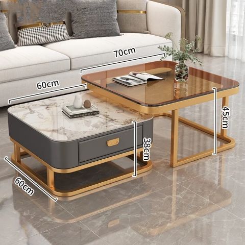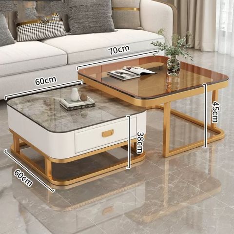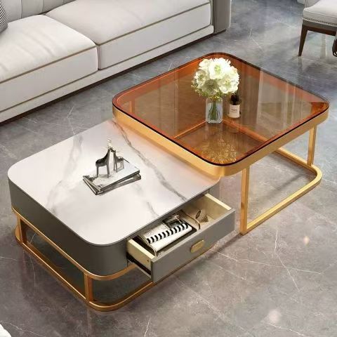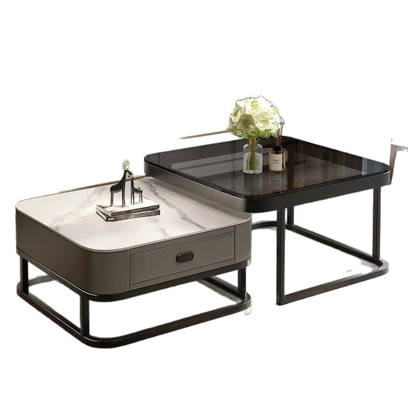 轻奢茶几客厅家用现代简约小户型网红方形玻璃岩板茶几电视柜组合