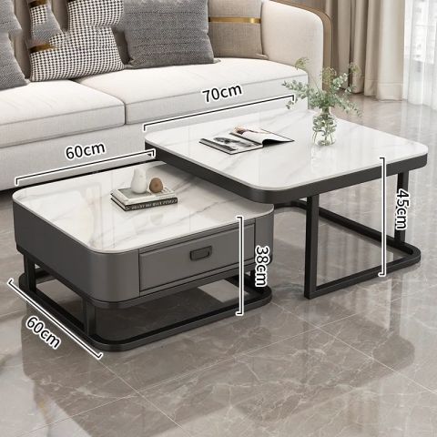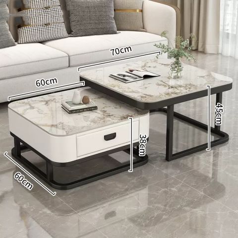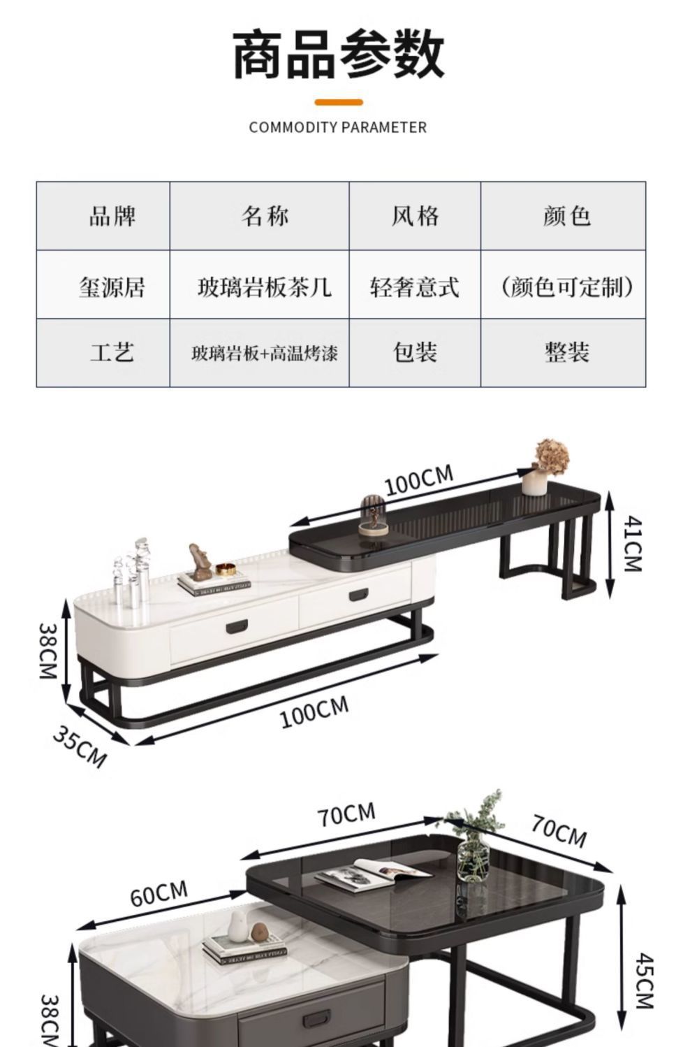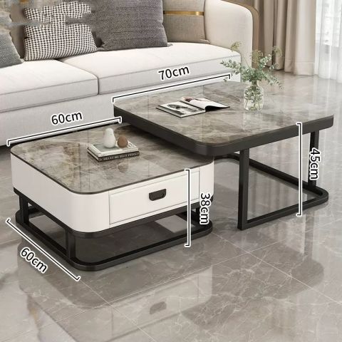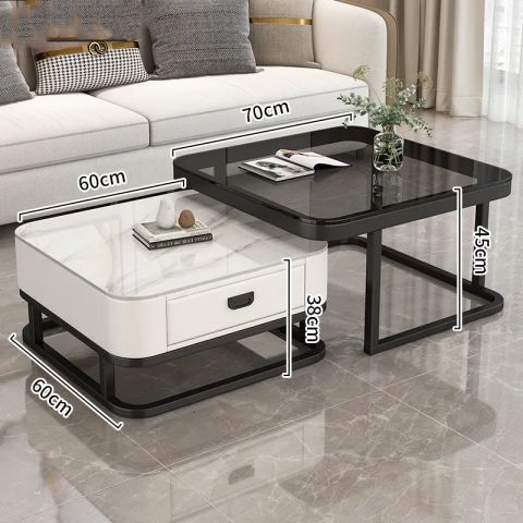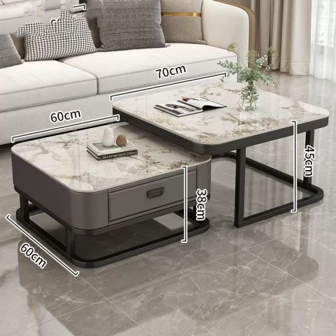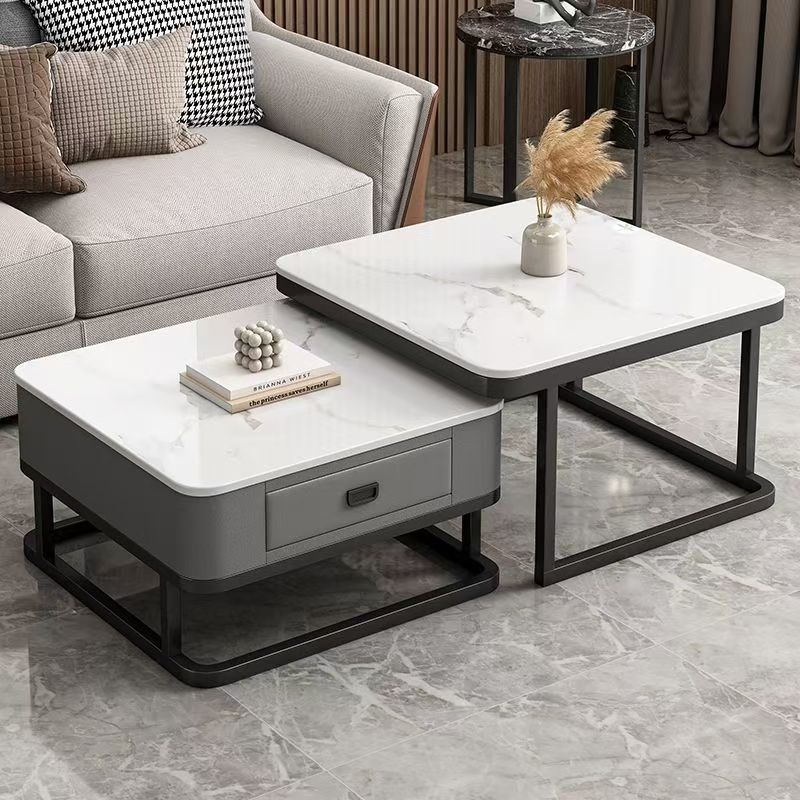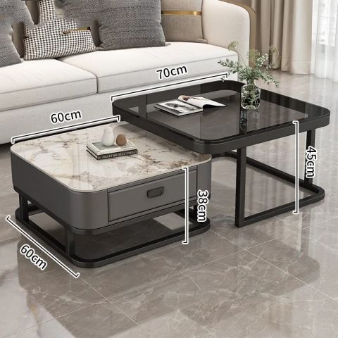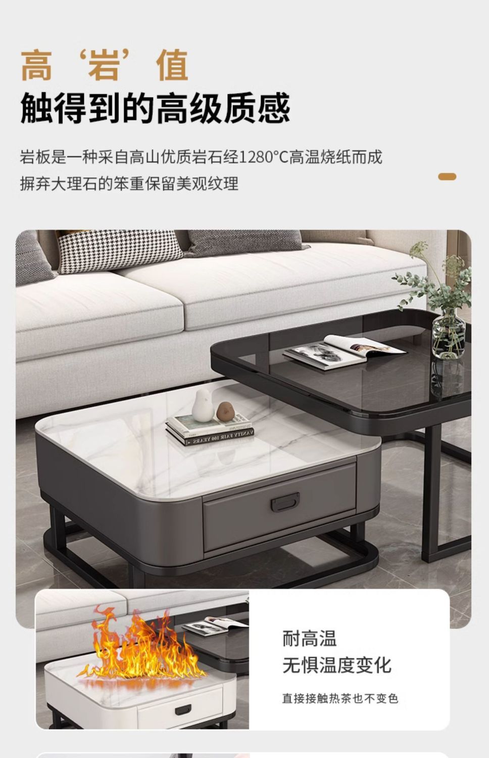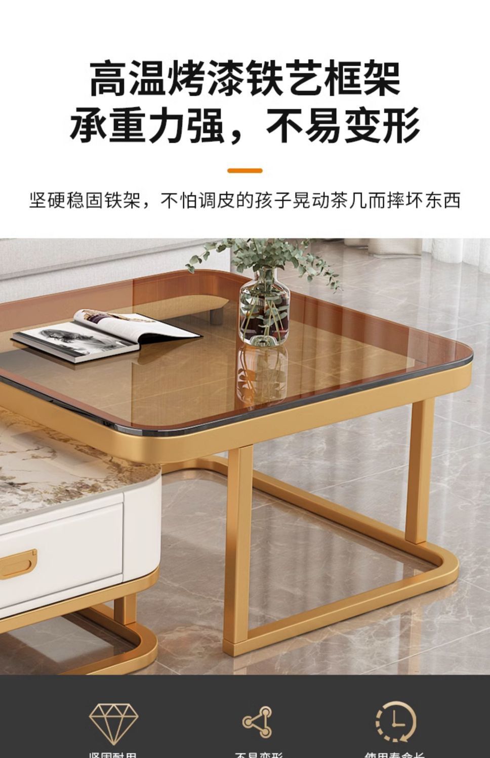 轻奢茶几客厅家用现代简约小户型网红方形玻璃岩板茶几电视柜组合