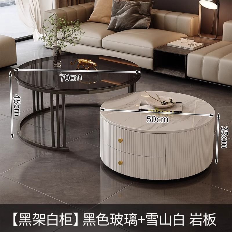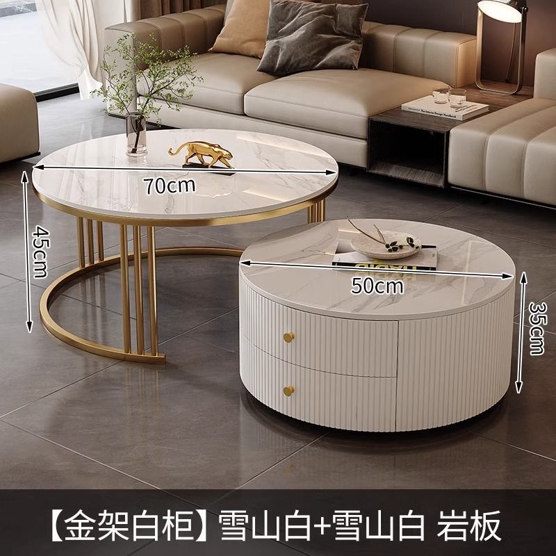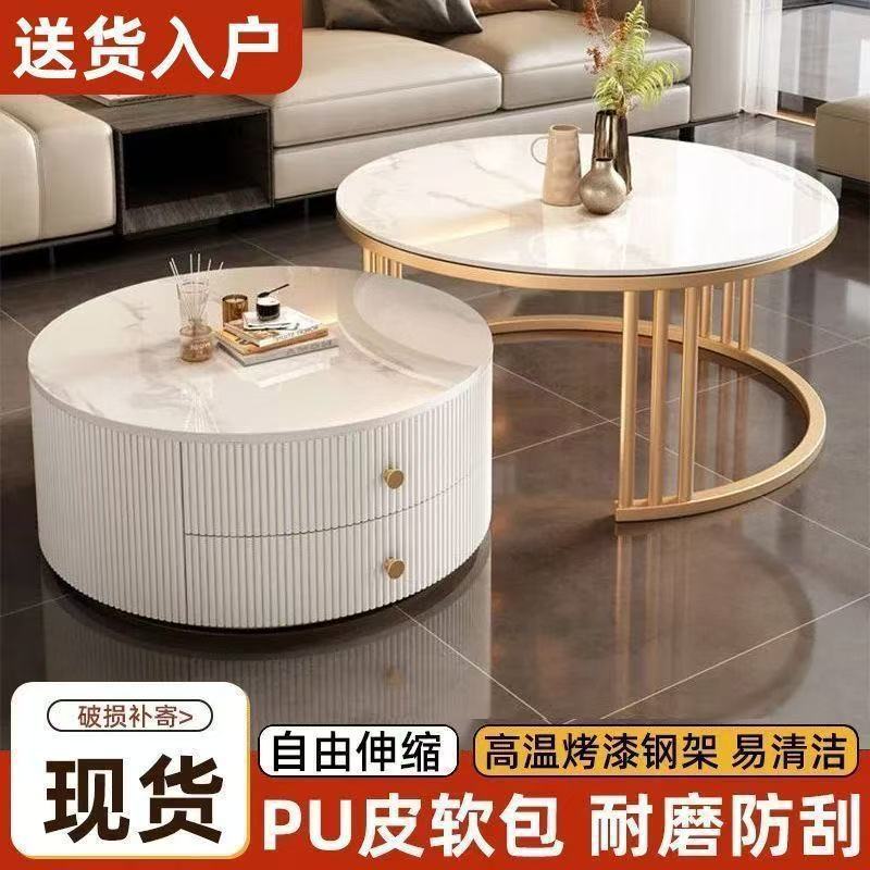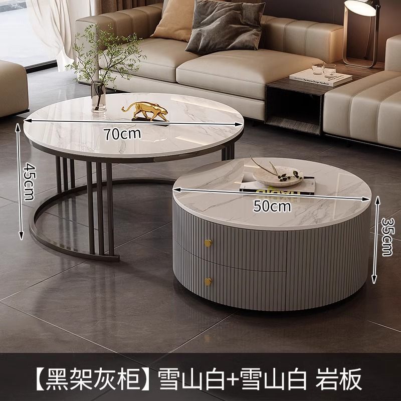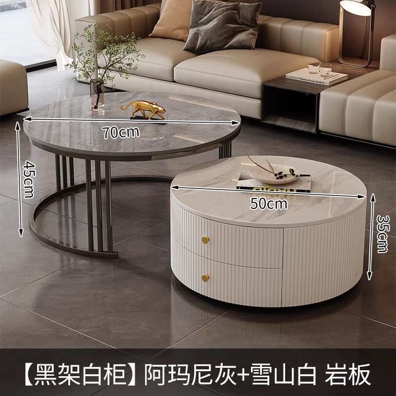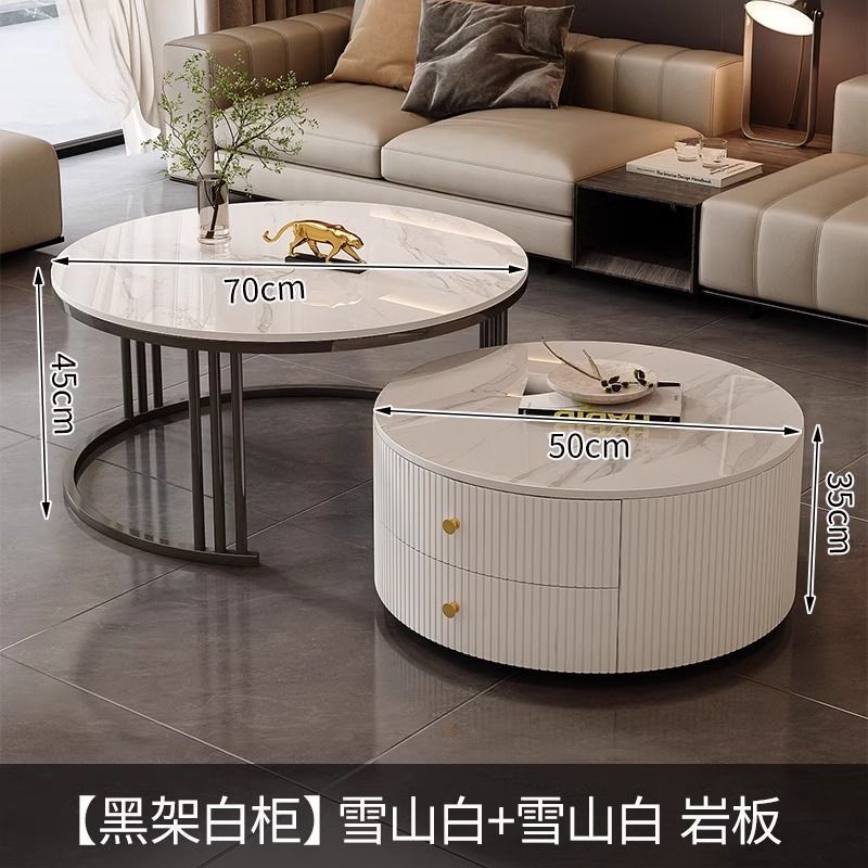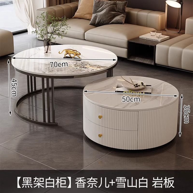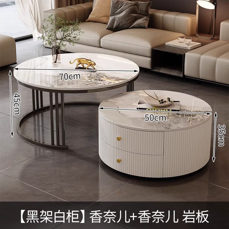 简约现代小户型北欧边几大理石岩板圆形小茶几桌茶几家用客厅环保