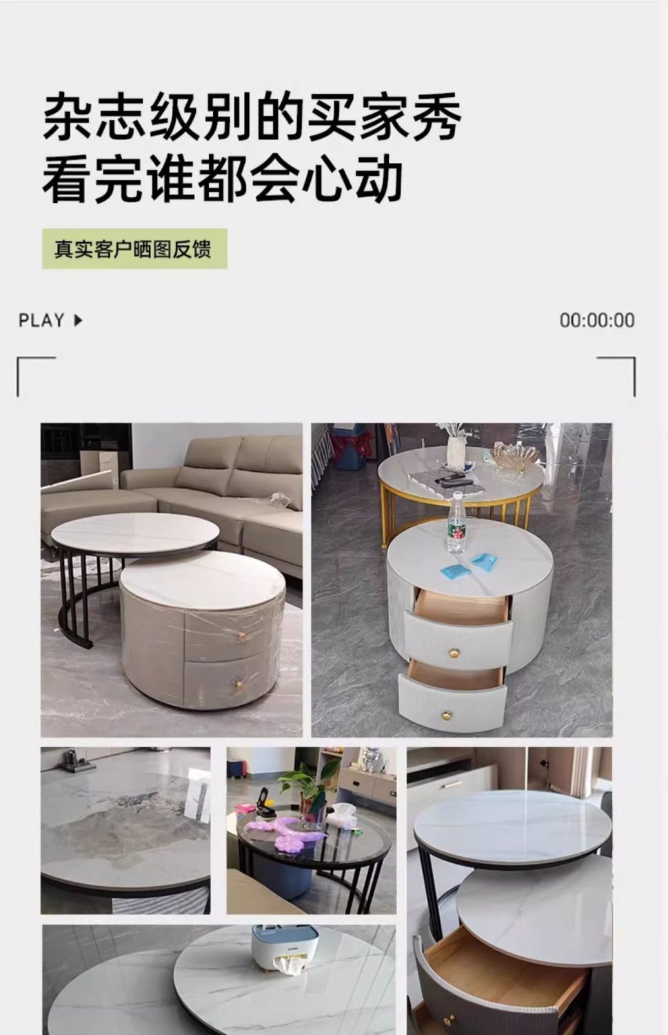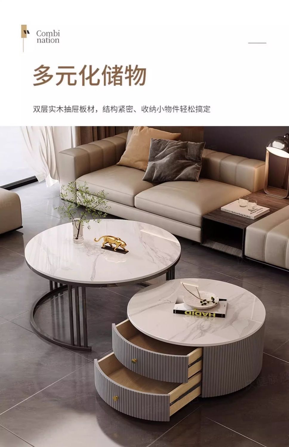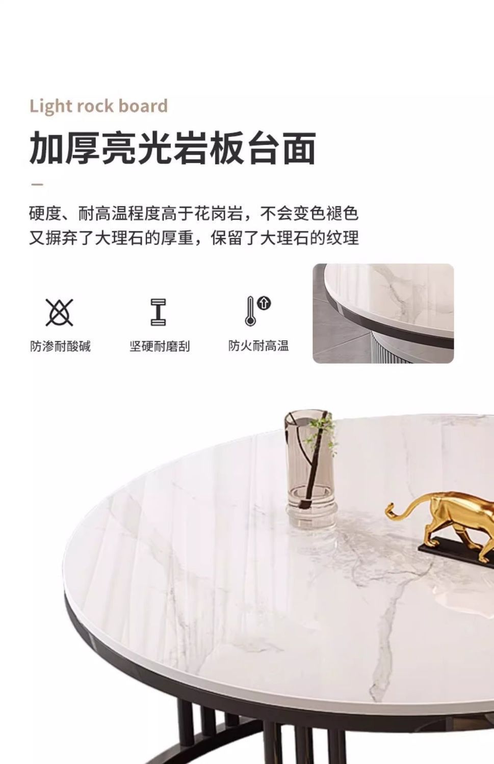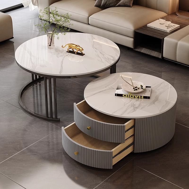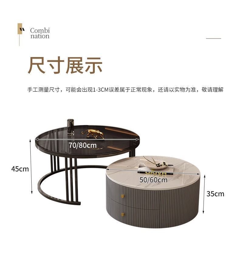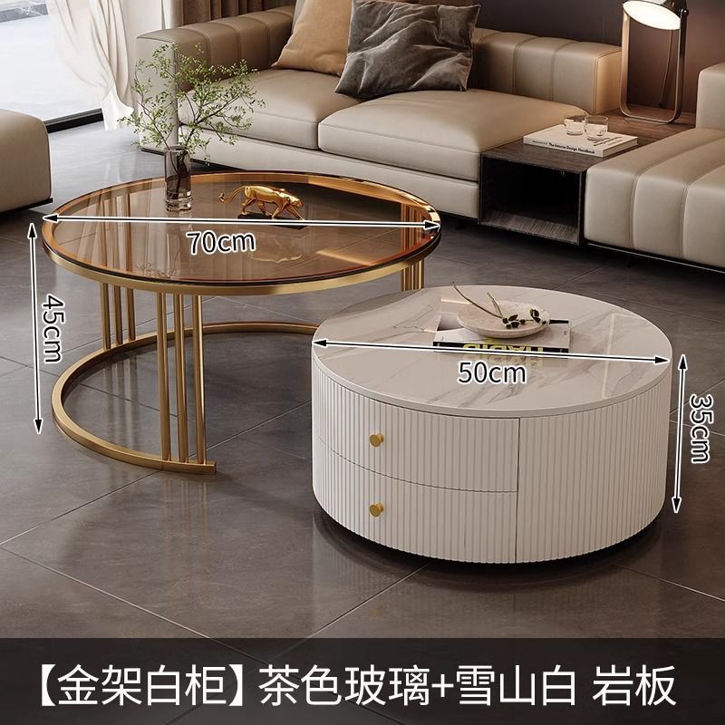 简约现代小户型北欧边几大理石岩板圆形小茶几桌茶几家用客厅环保