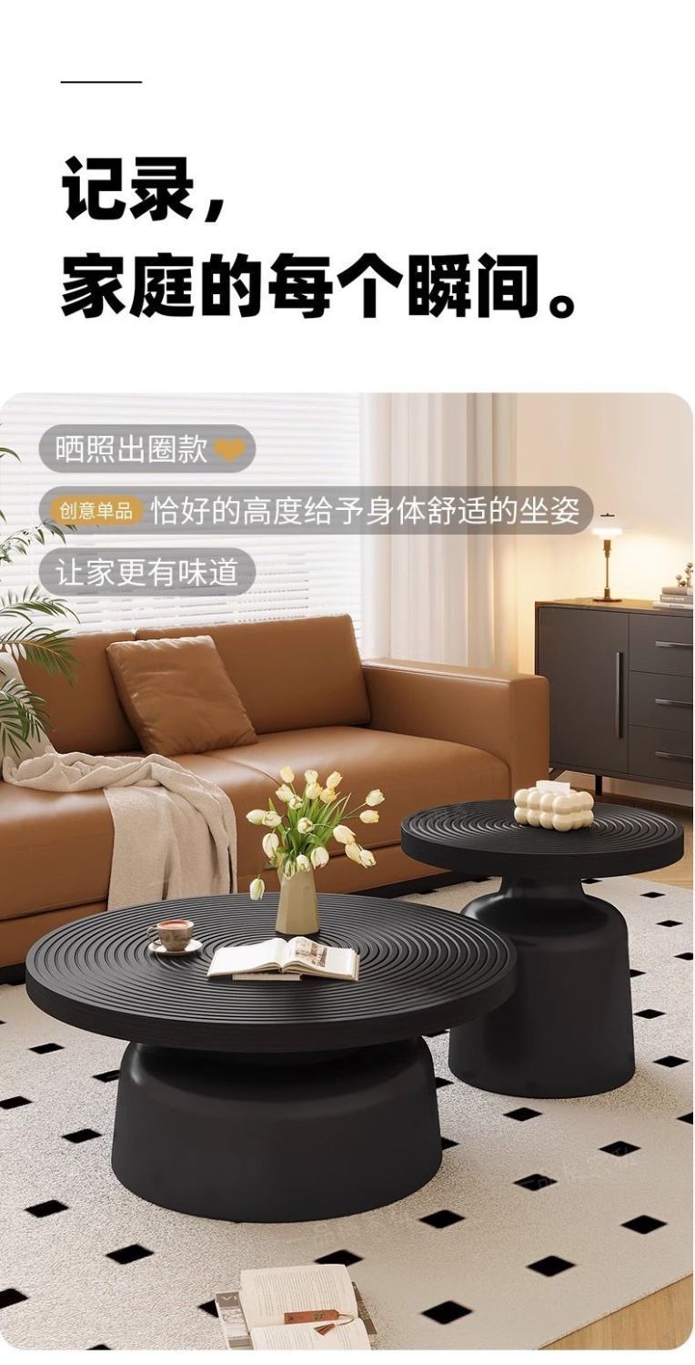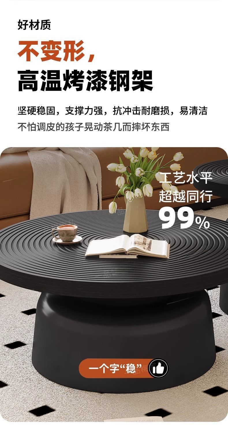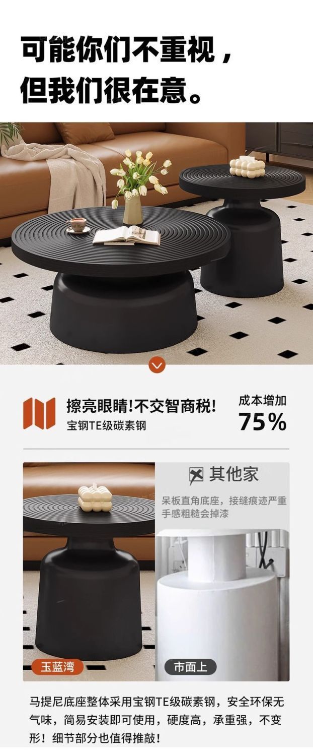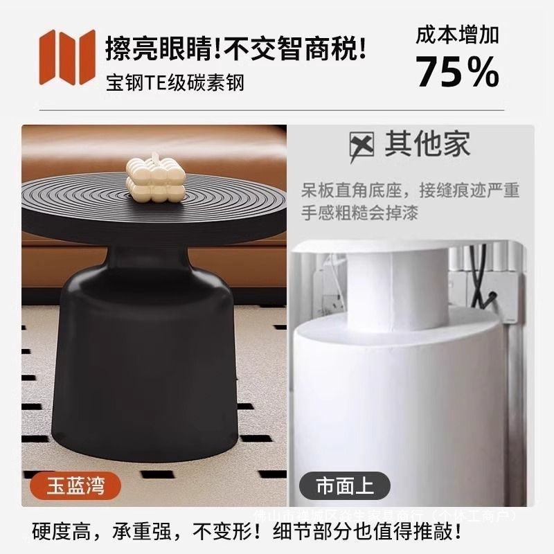 圆形茶几客厅新款家用轻奢高级感碳素钢小茶几现代简约小户型