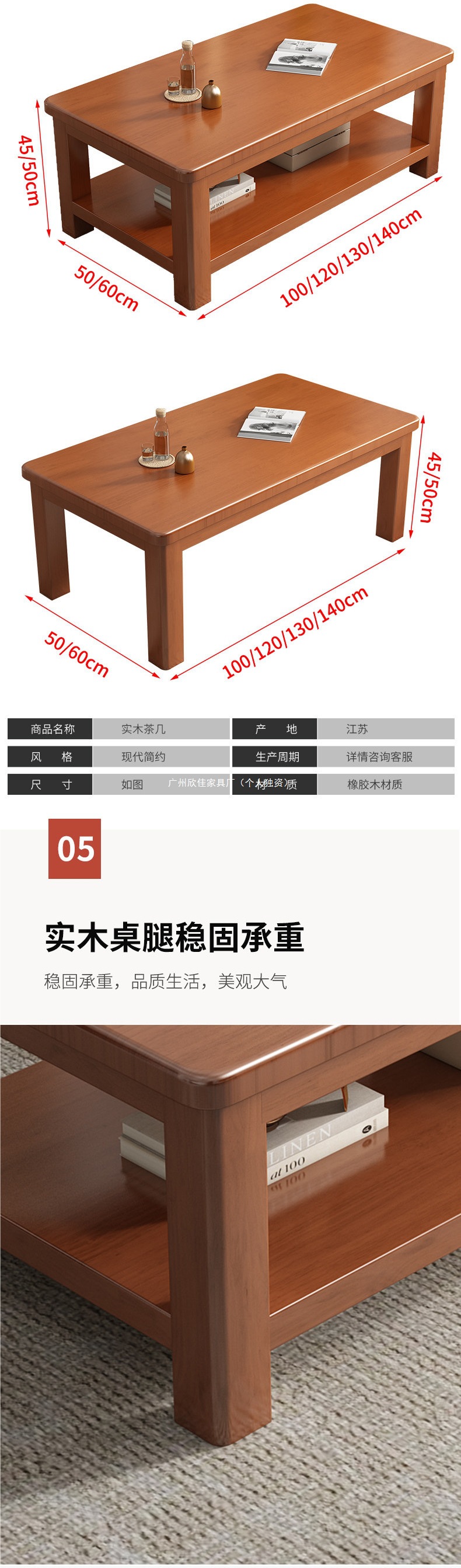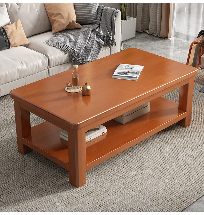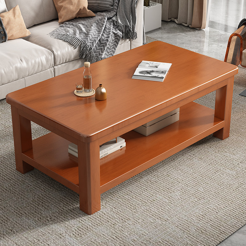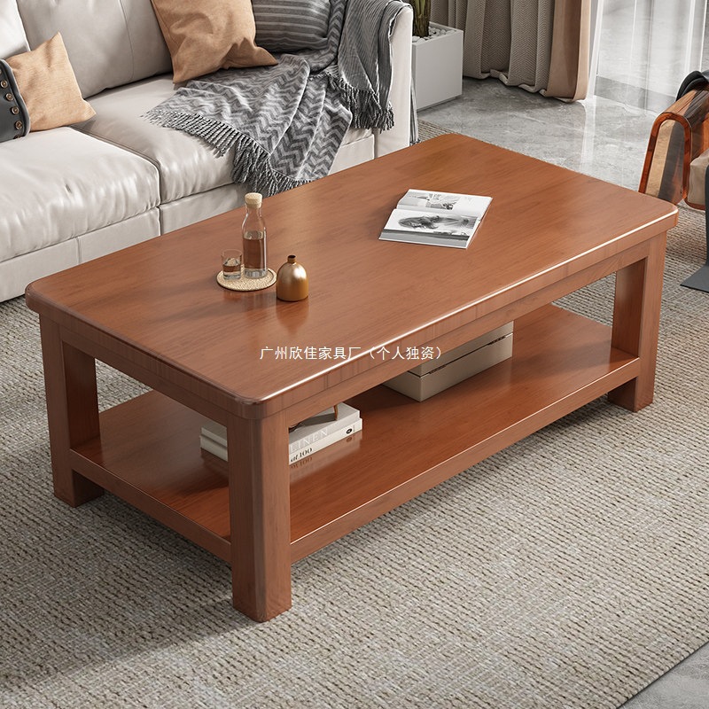 客厅茶几实木家用小户型双层储物全实木新中式炮茶桌现代简约原木