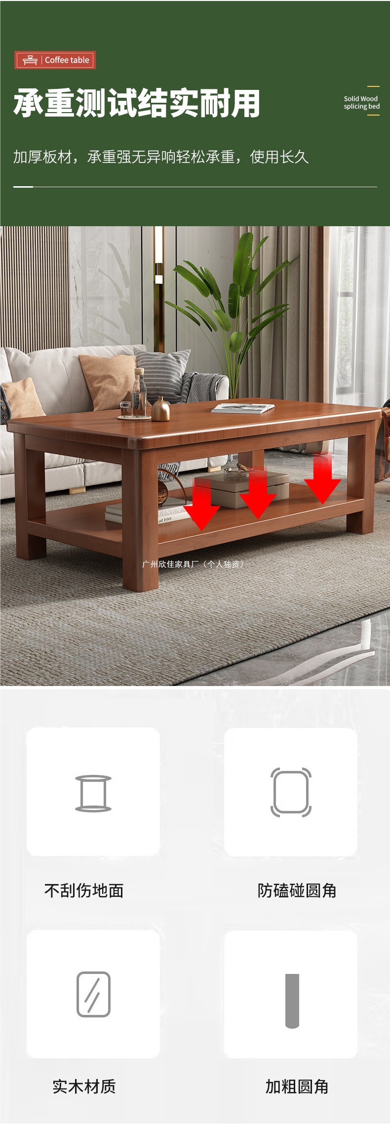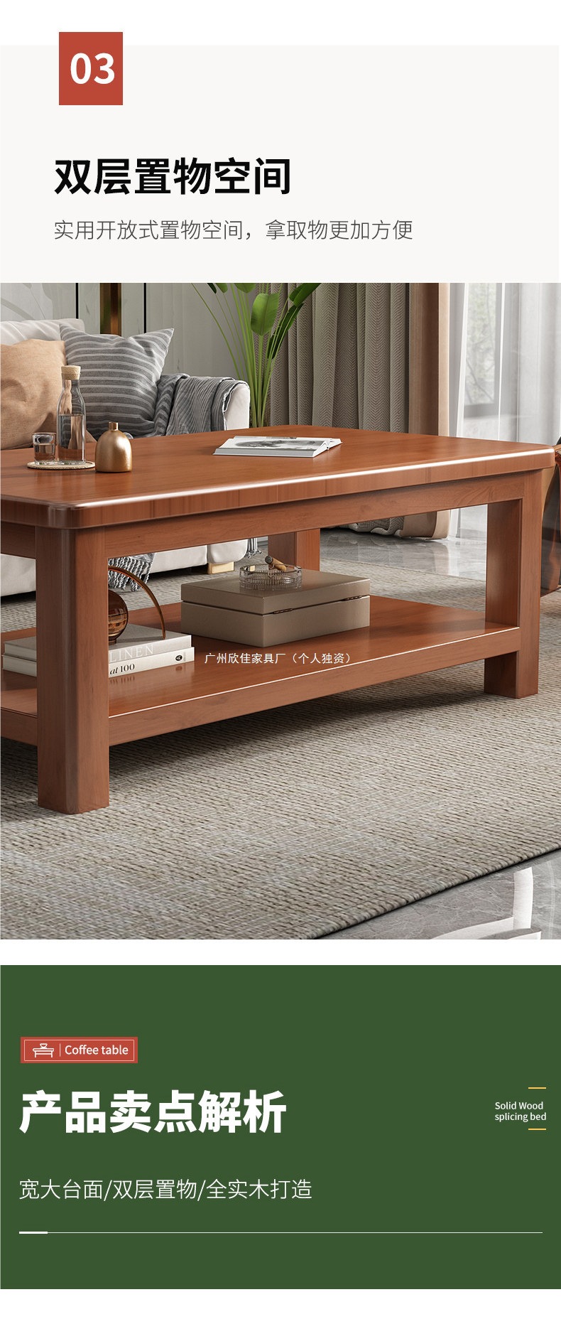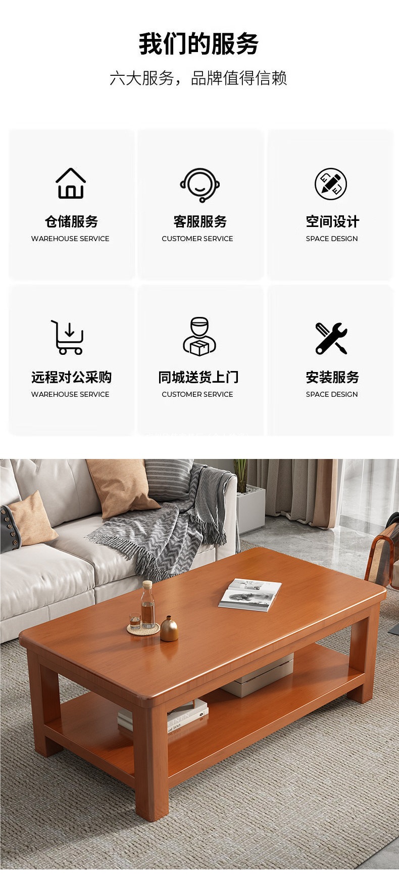 客厅茶几实木家用小户型双层储物全实木新中式炮茶桌现代简约原木