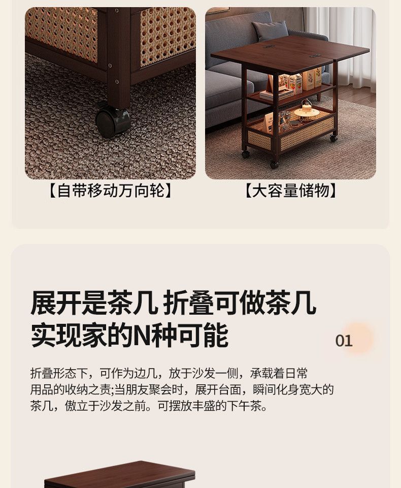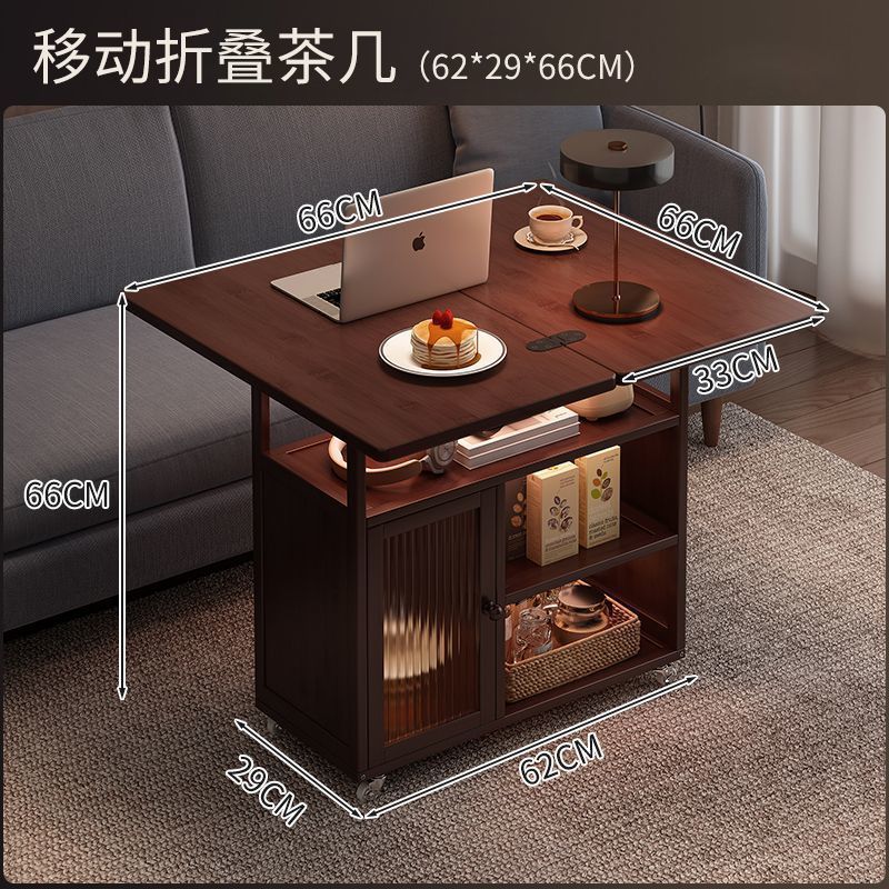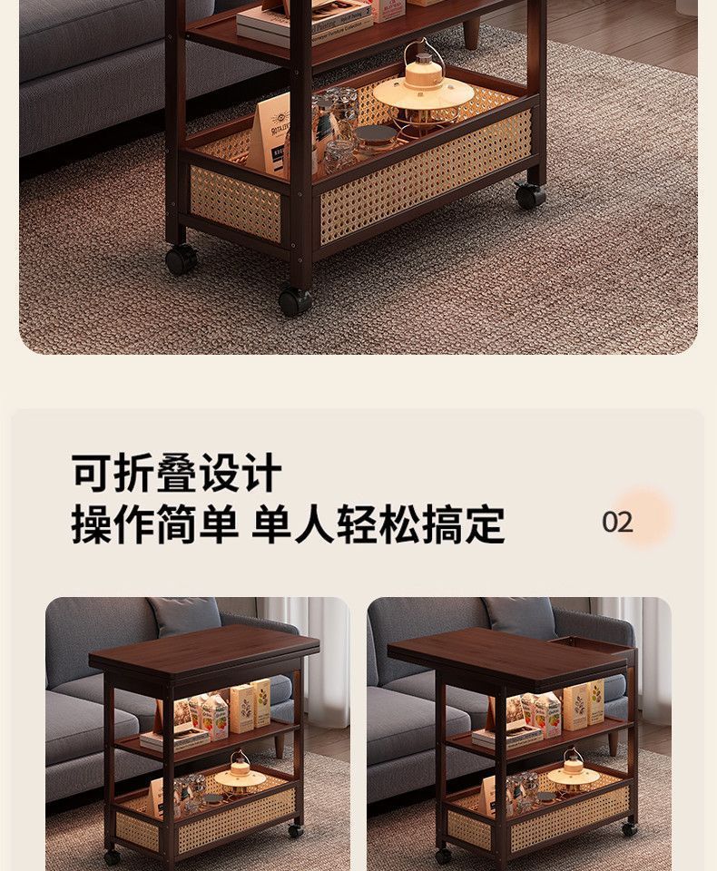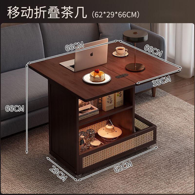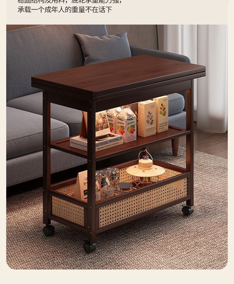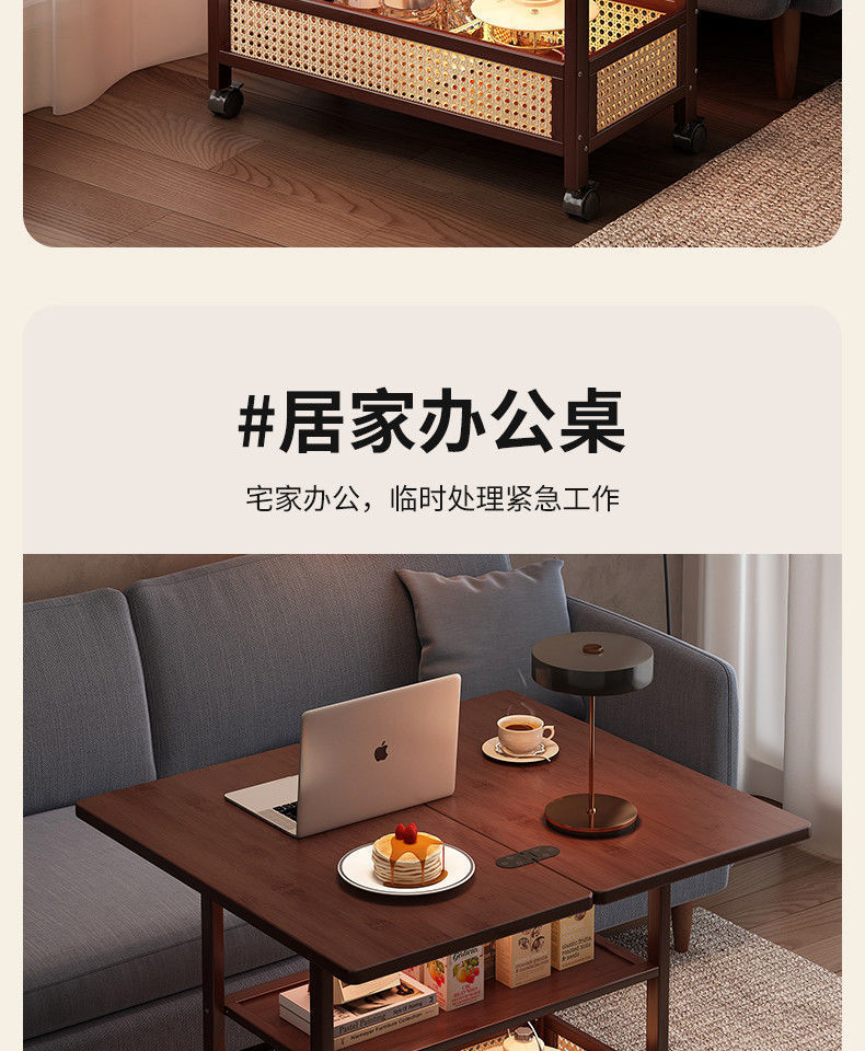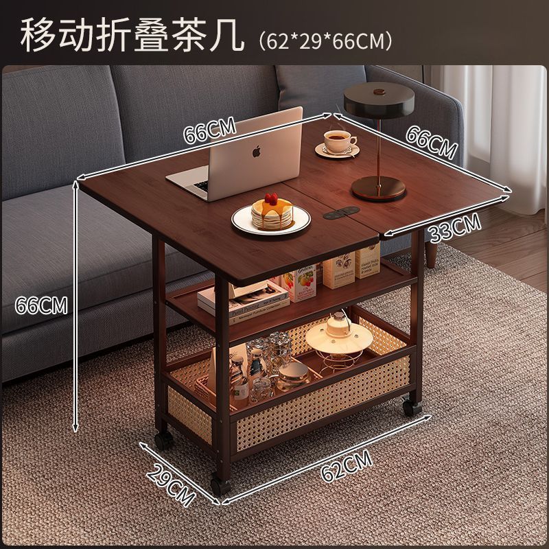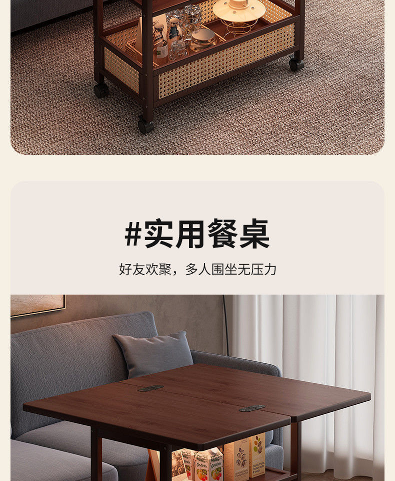 移动茶几可折叠桌子小户型客厅家用沙发阳台餐桌两用实木中古推车