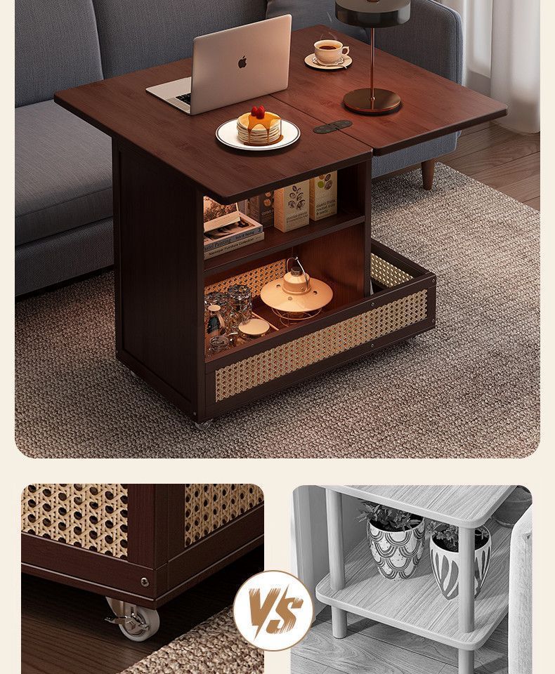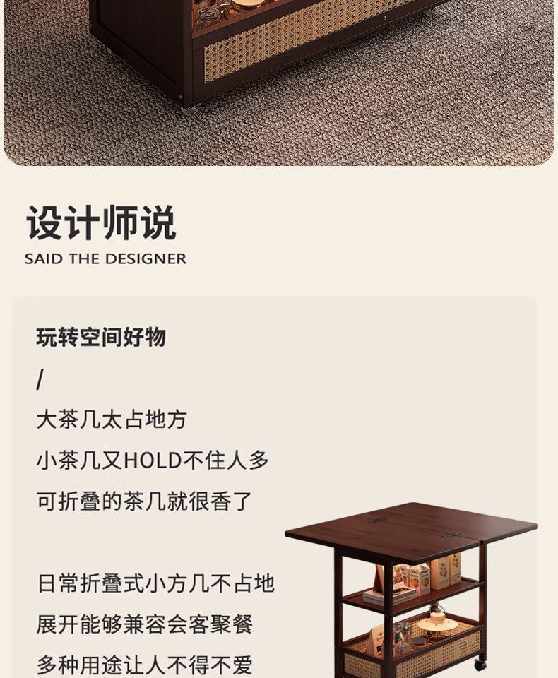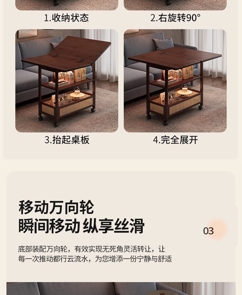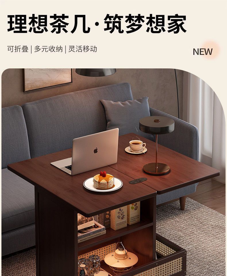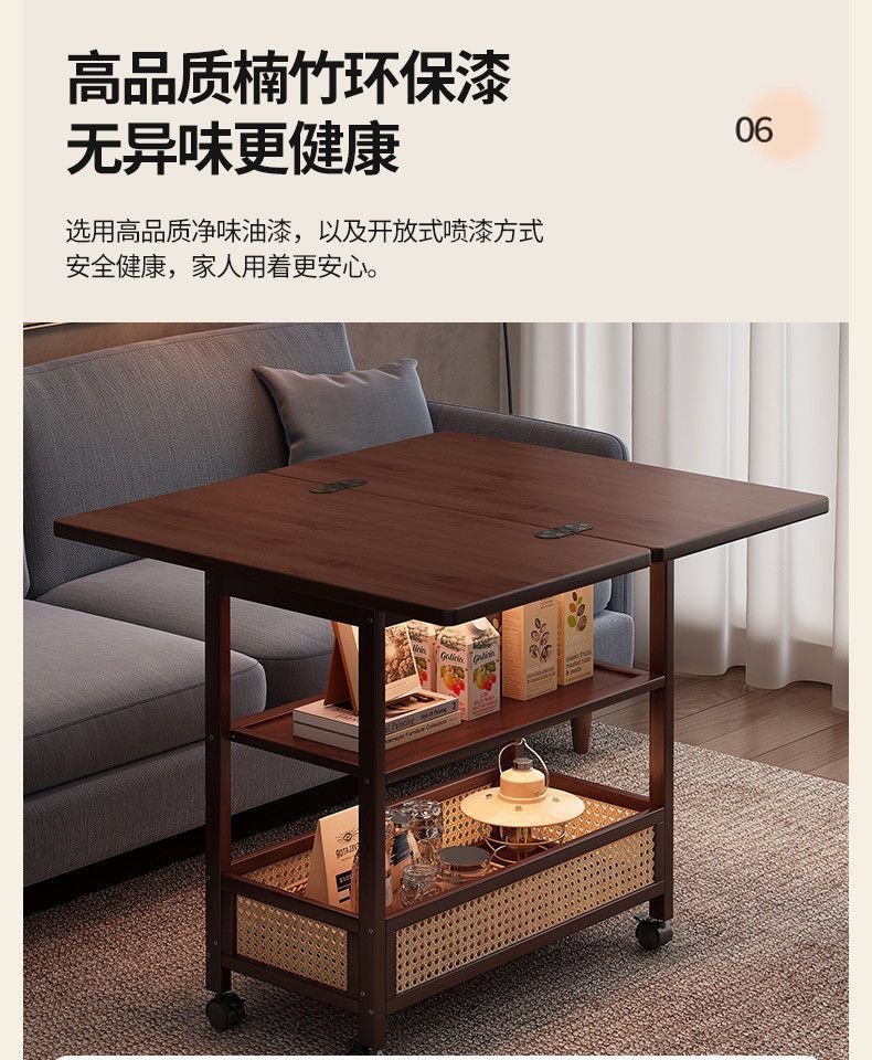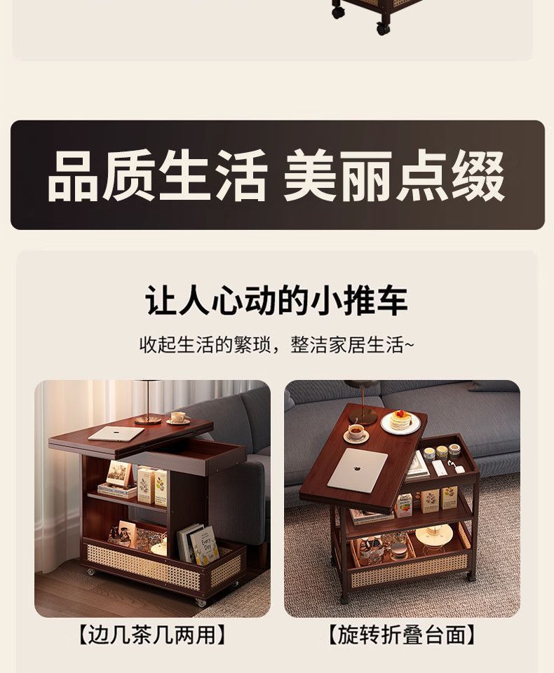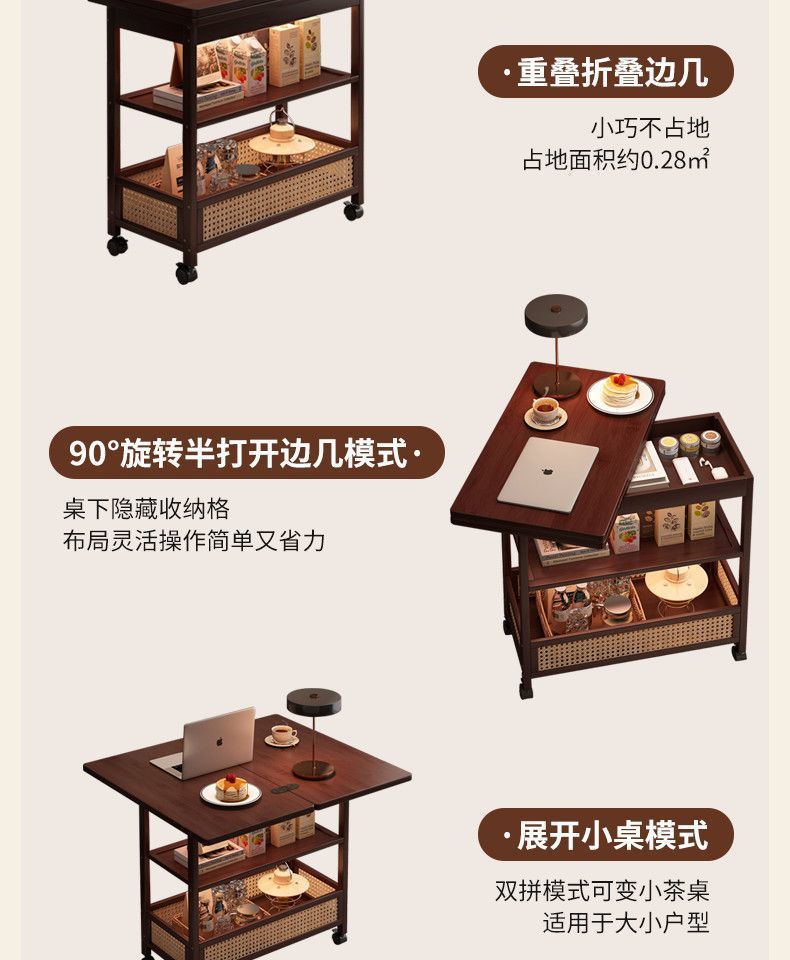 移动茶几可折叠桌子小户型客厅家用沙发阳台餐桌两用实木中古推车
