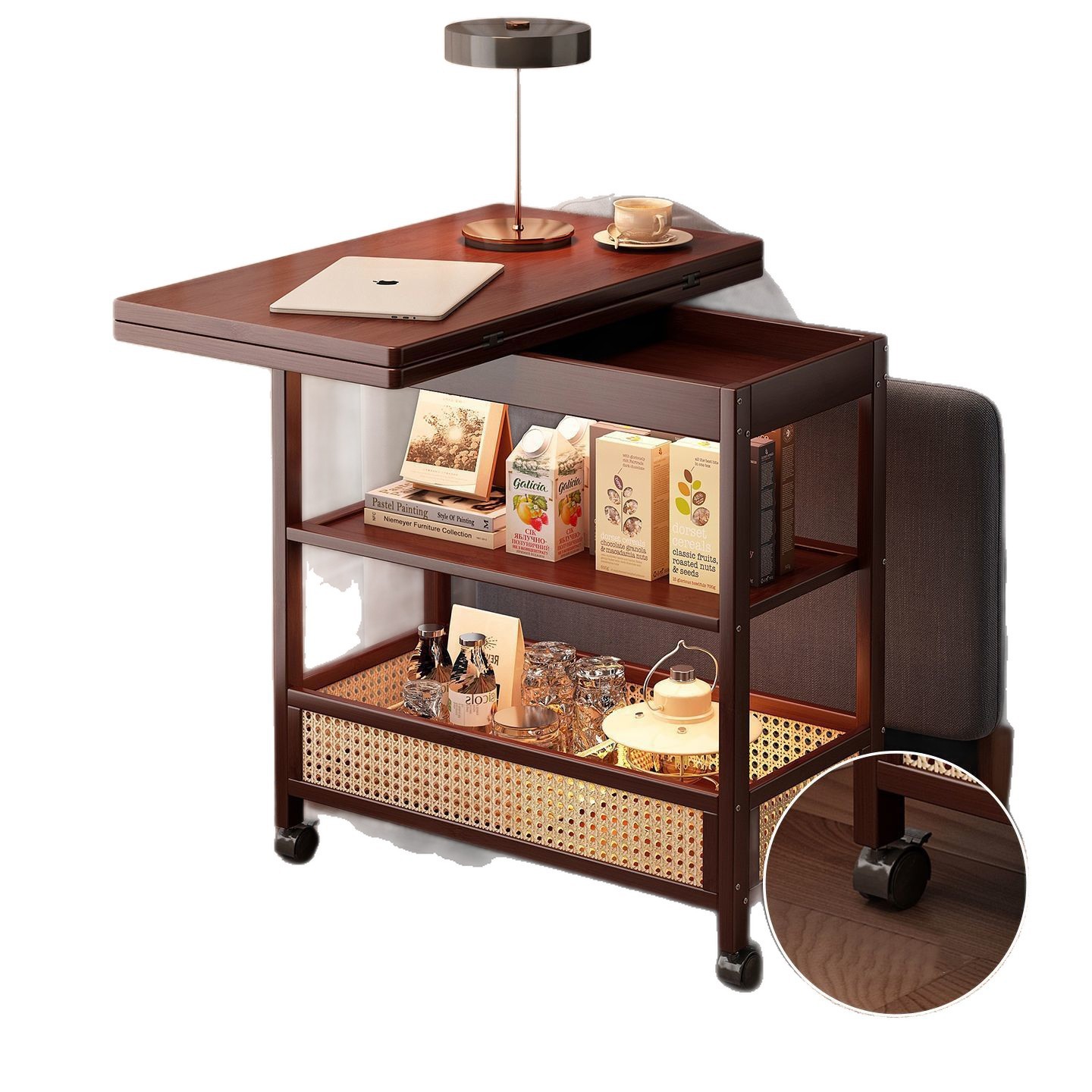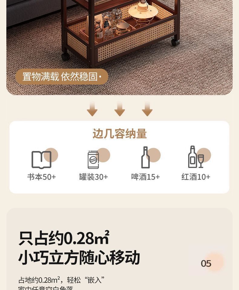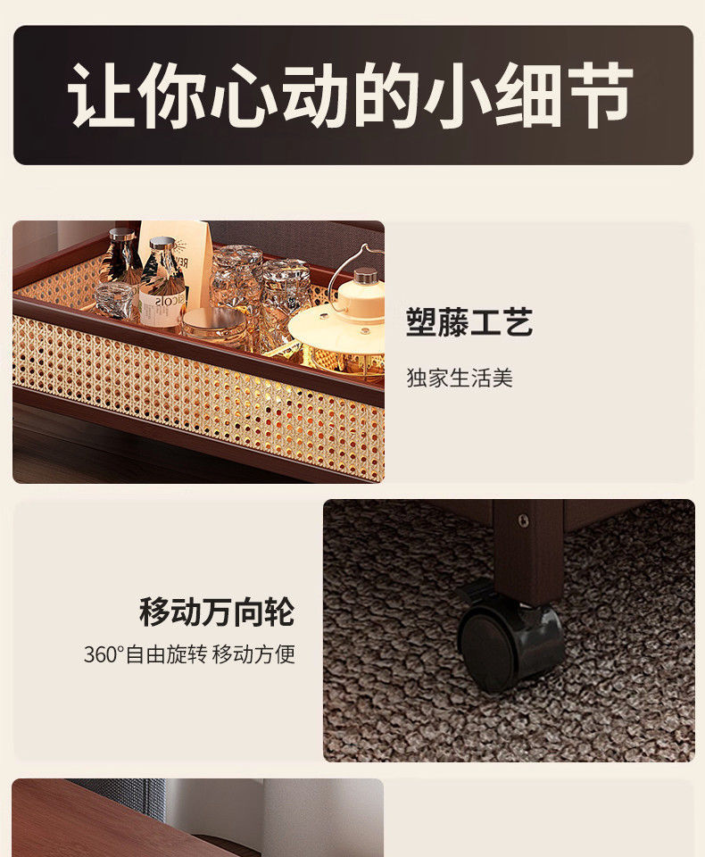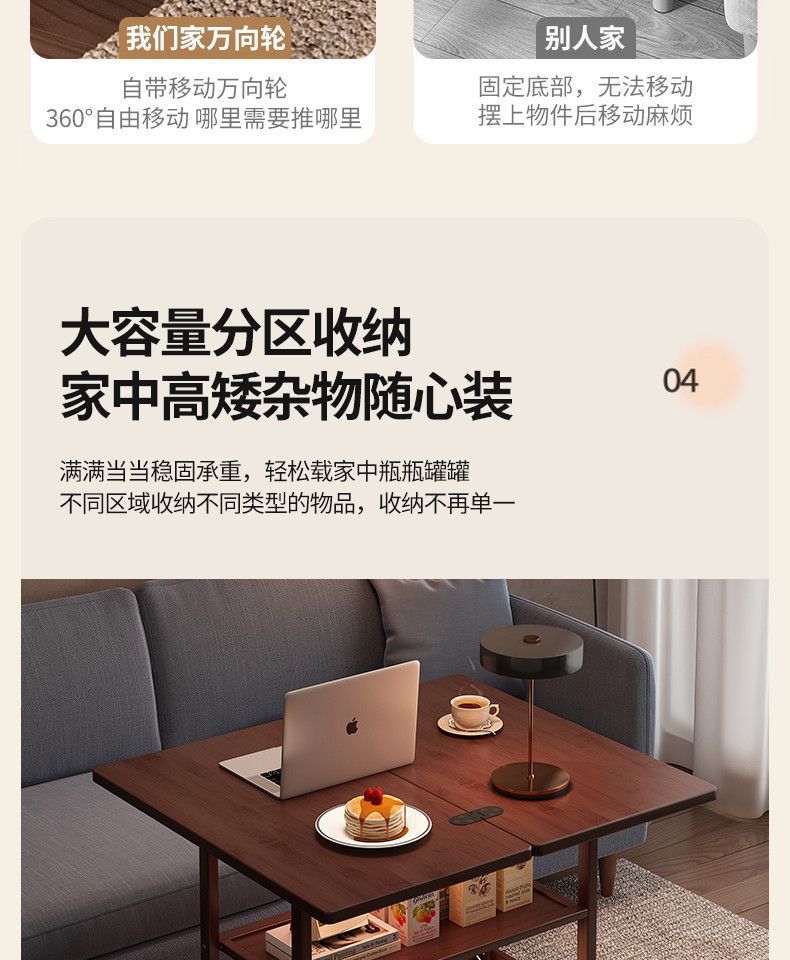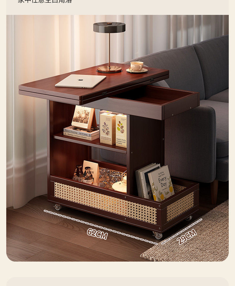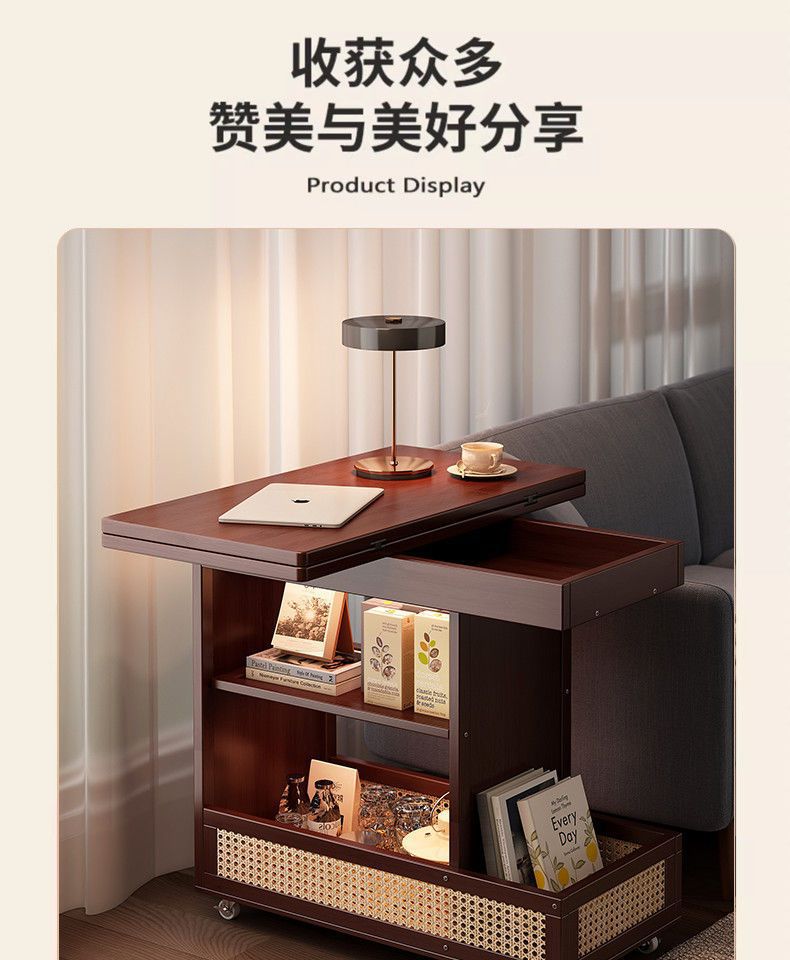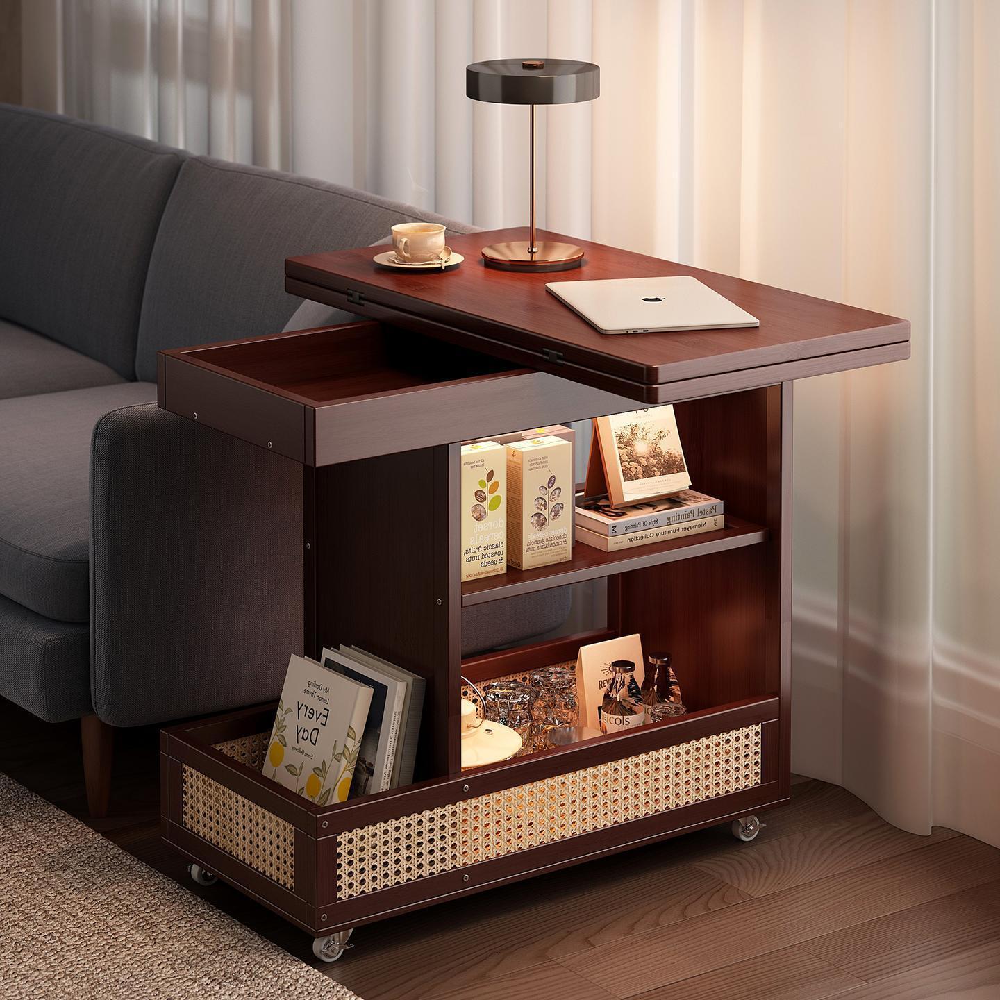 移动茶几可折叠桌子小户型客厅家用沙发阳台餐桌两用实木中古推车