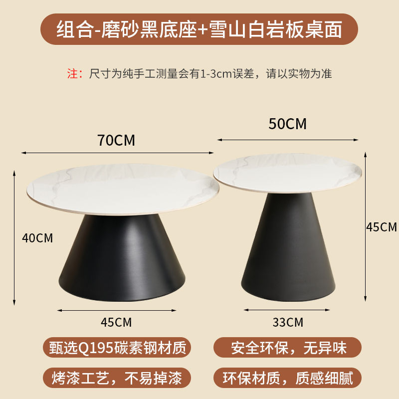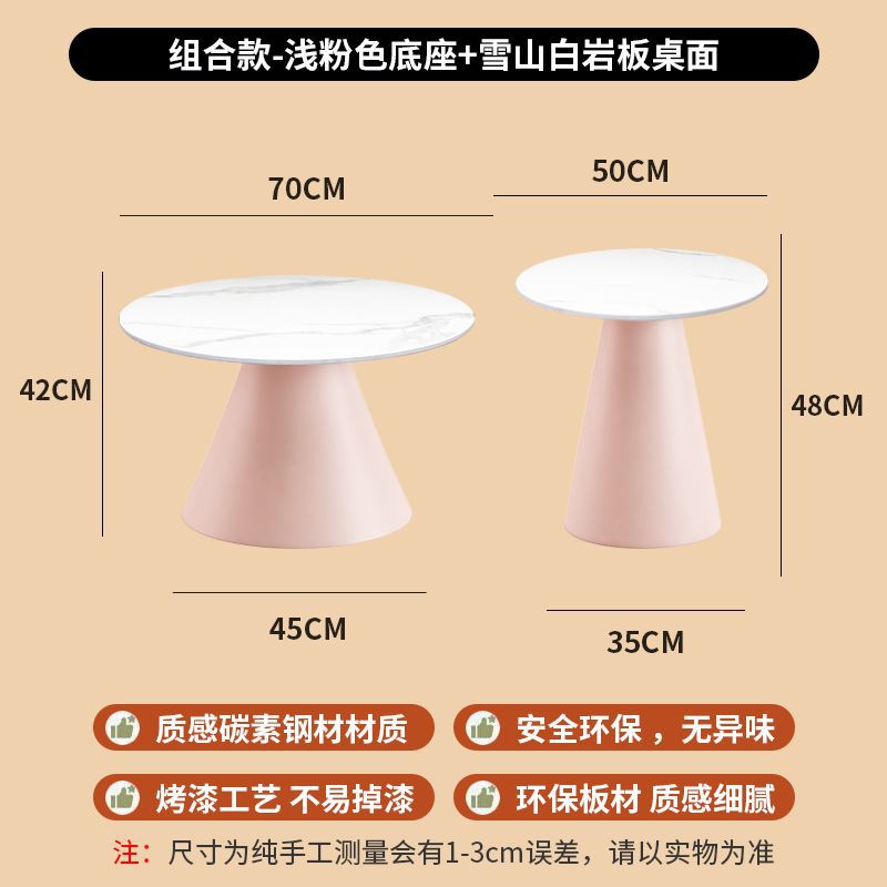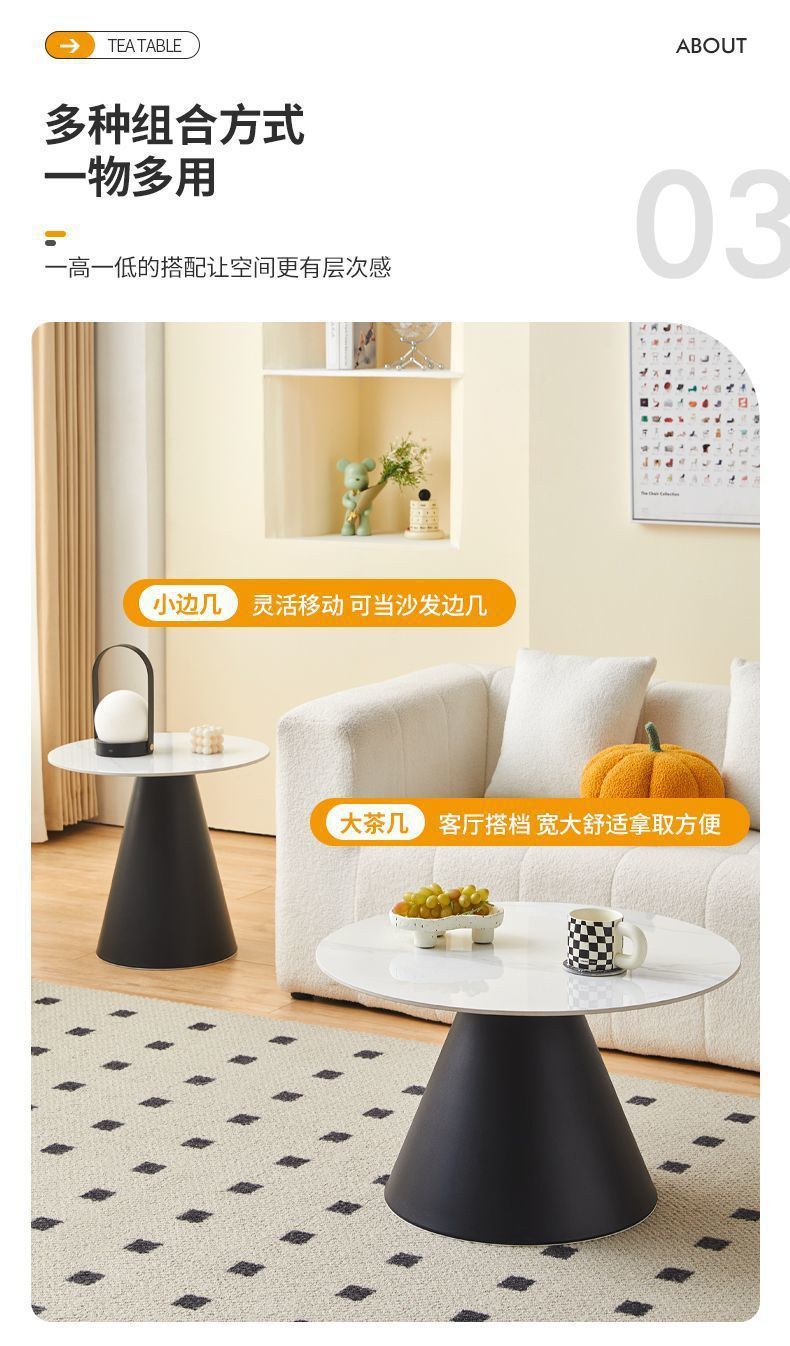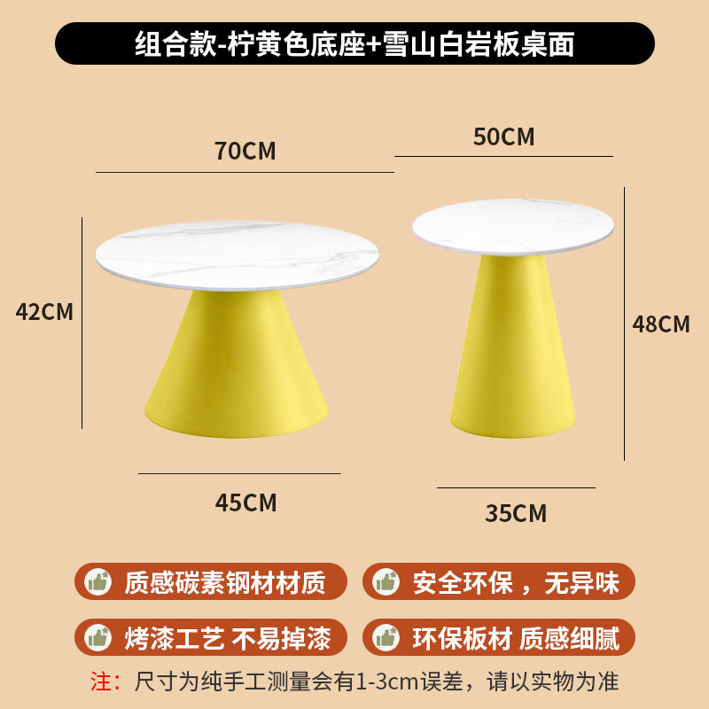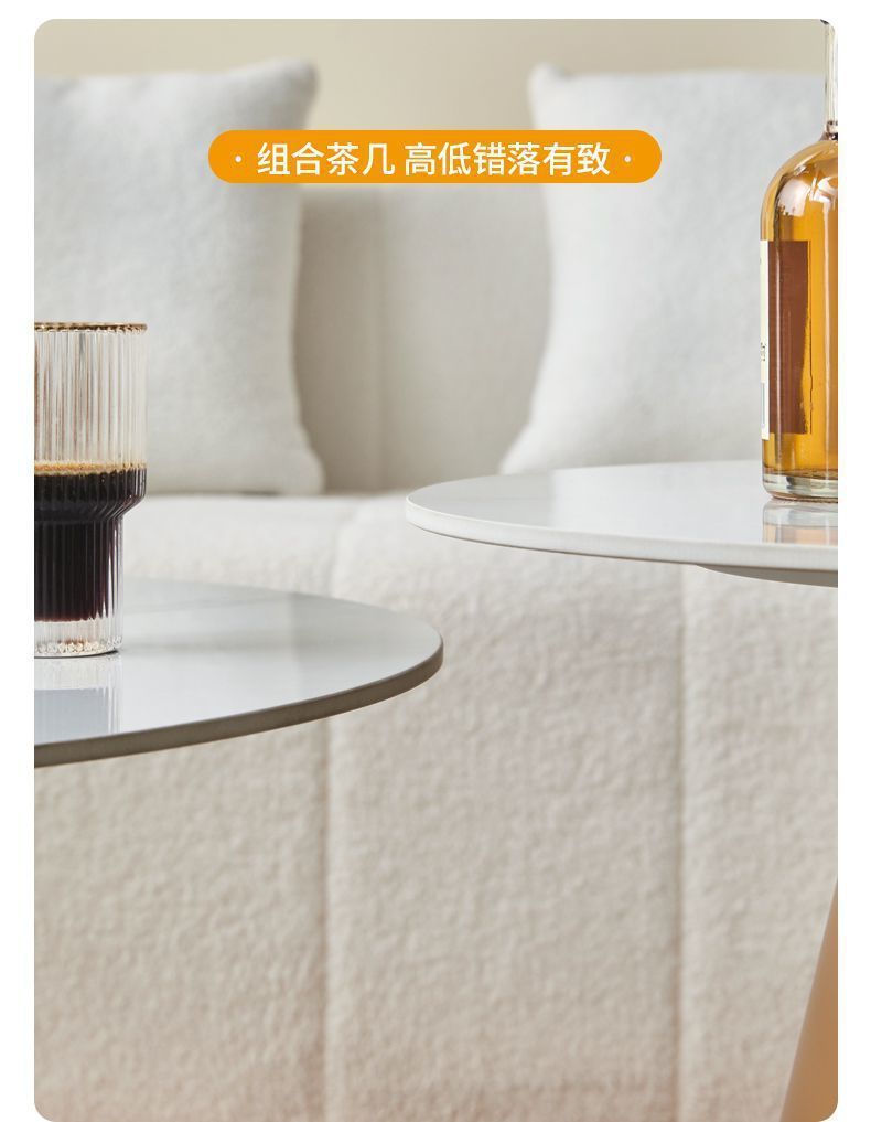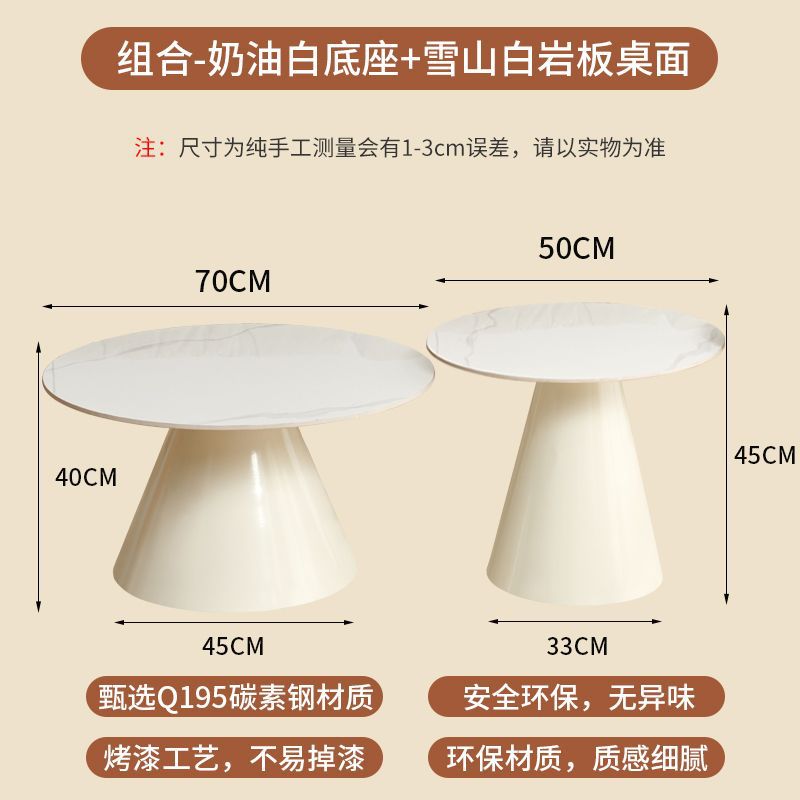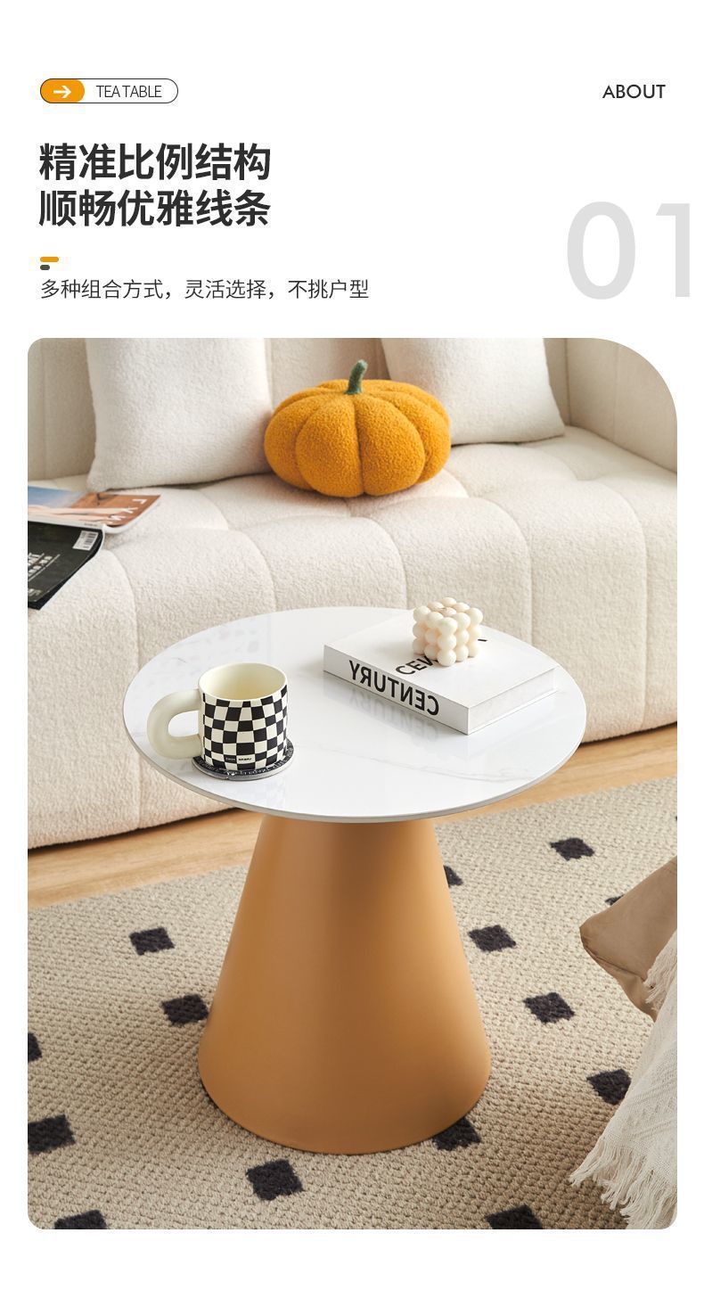 北欧轻奢奶油风边几茶桌铁艺客厅小户型家用简约岩板铁艺茶几圆形