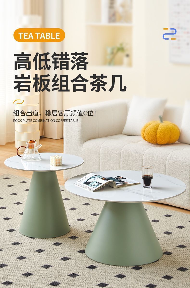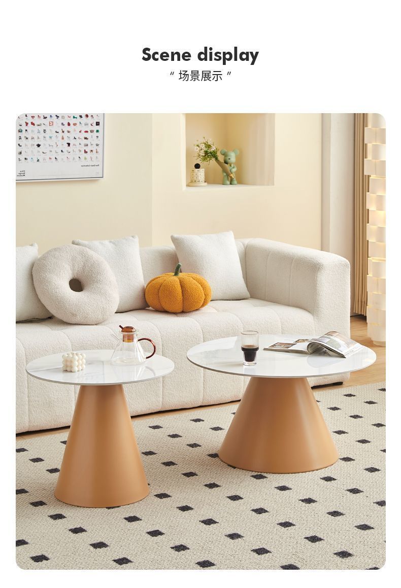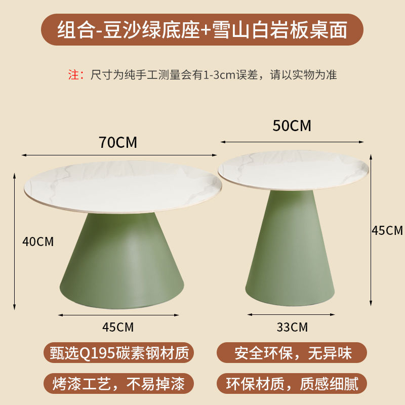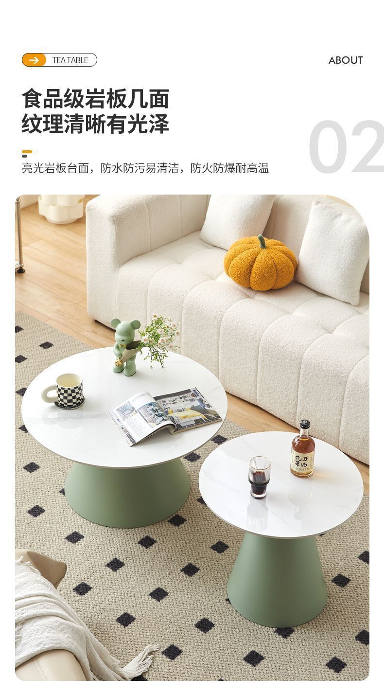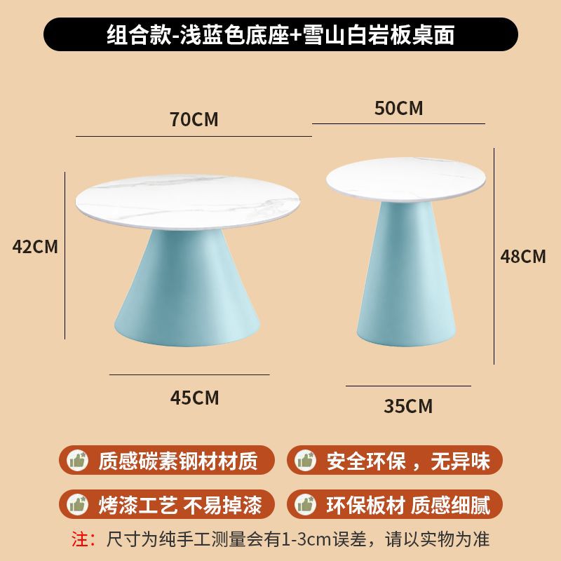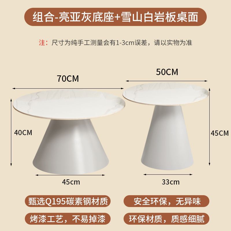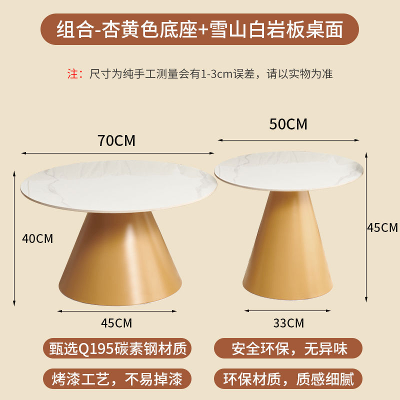 北欧轻奢奶油风边几茶桌铁艺客厅小户型家用简约岩板铁艺茶几圆形