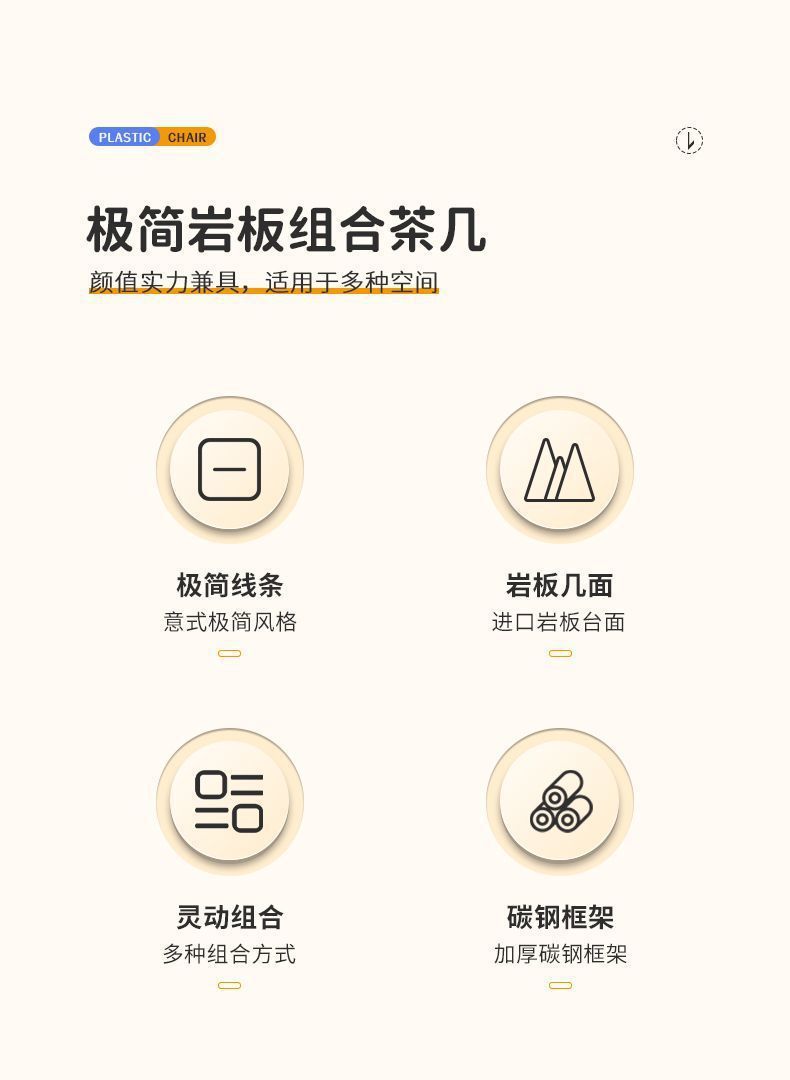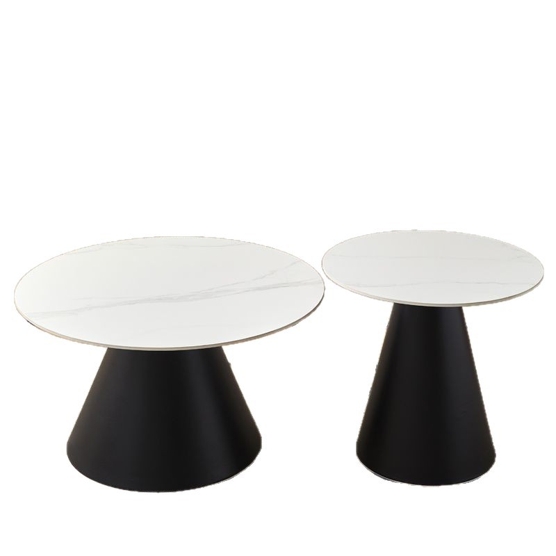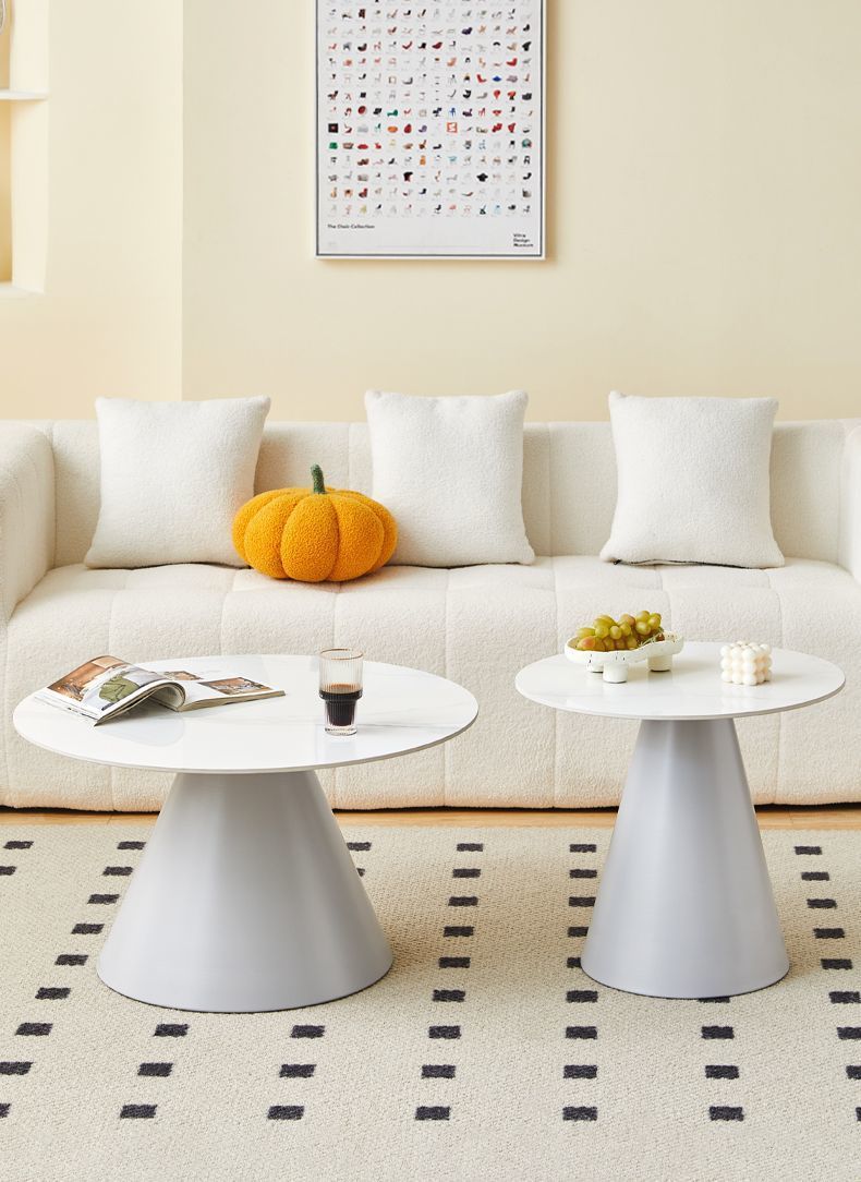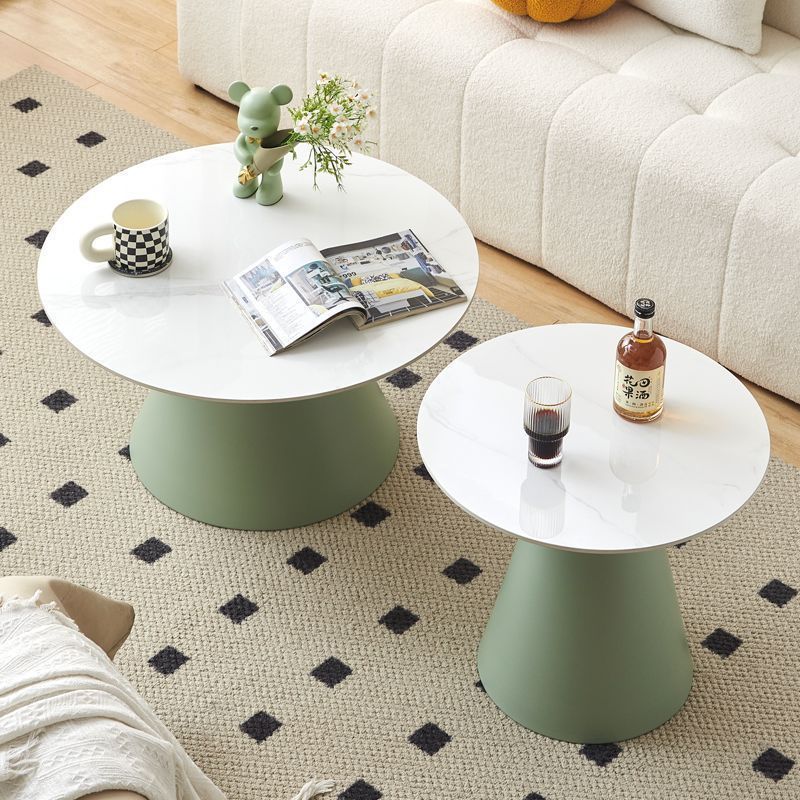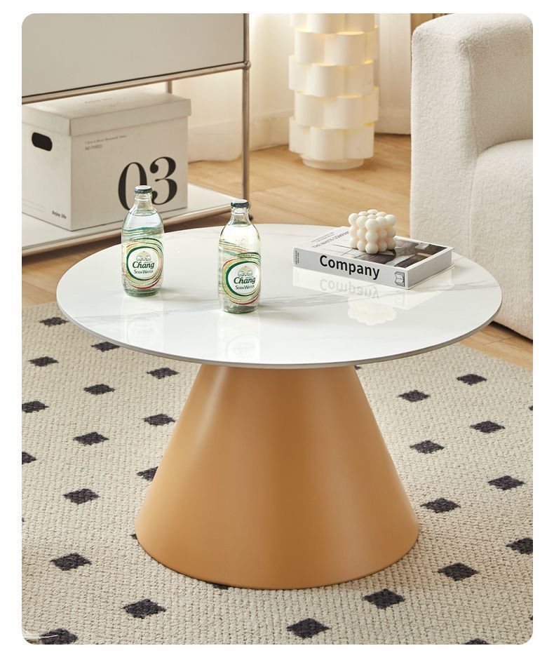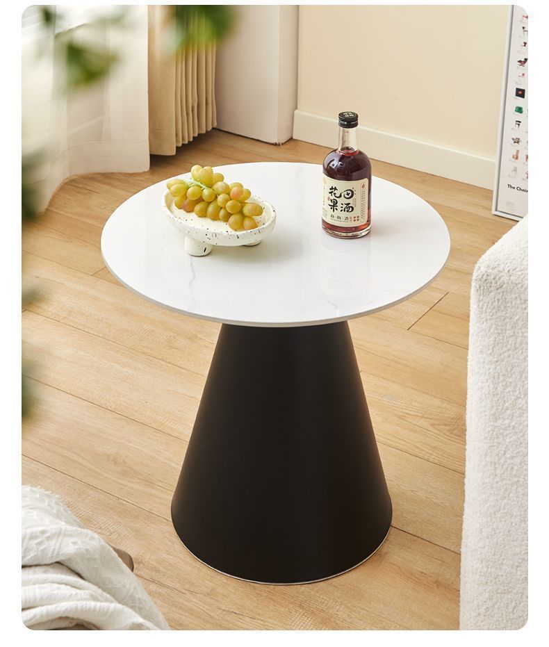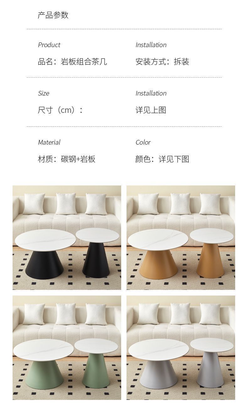 北欧轻奢奶油风边几茶桌铁艺客厅小户型家用简约岩板铁艺茶几圆形