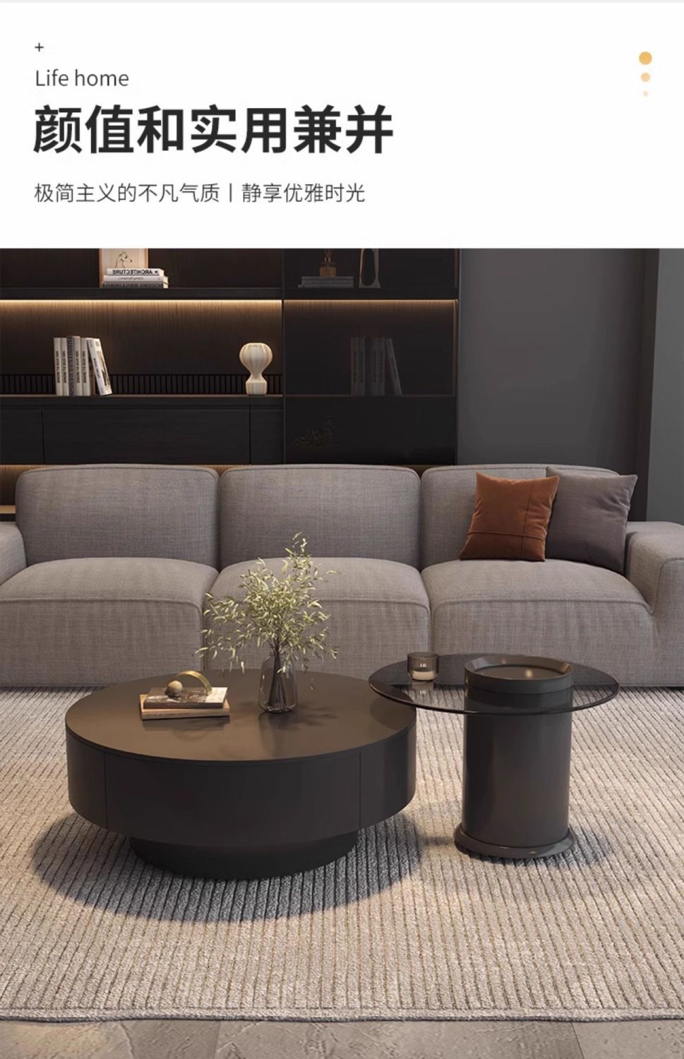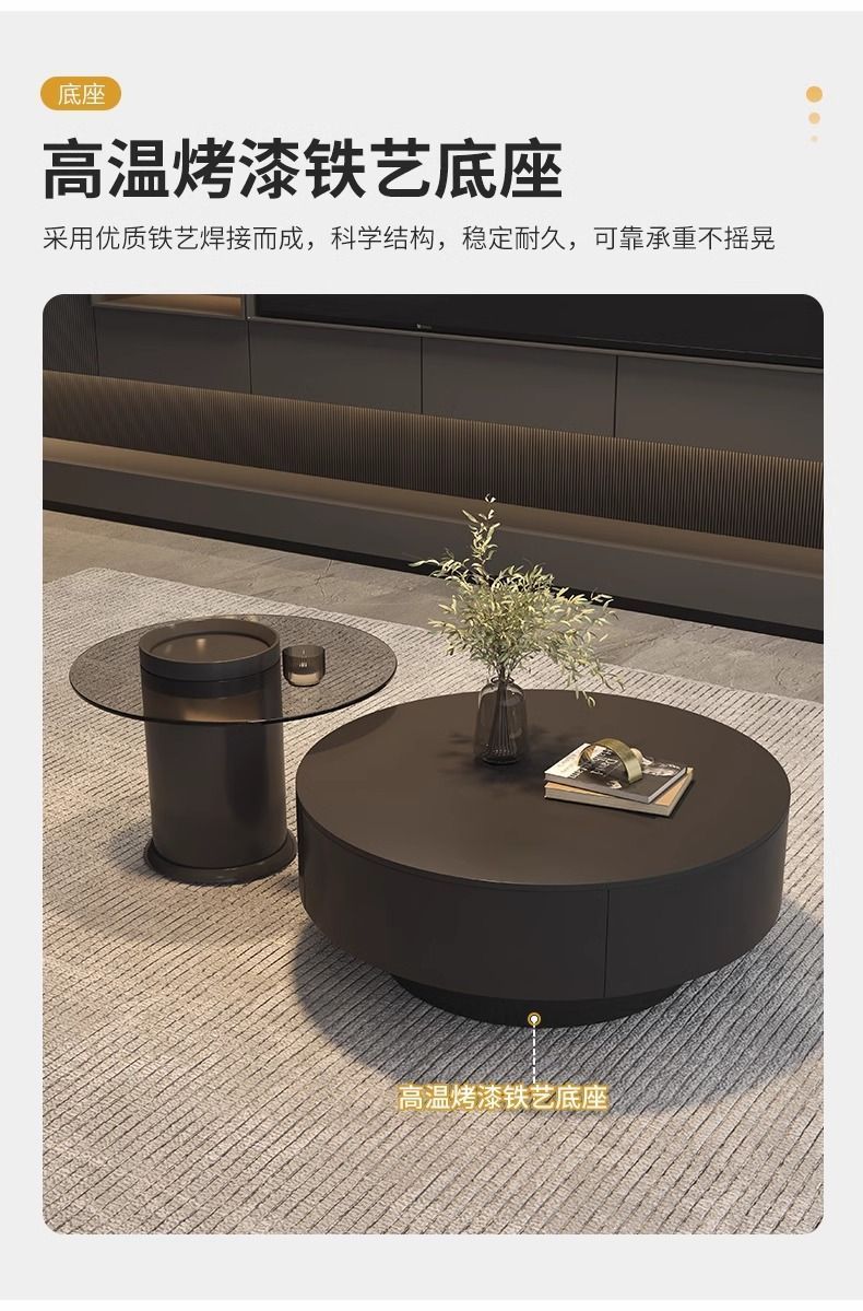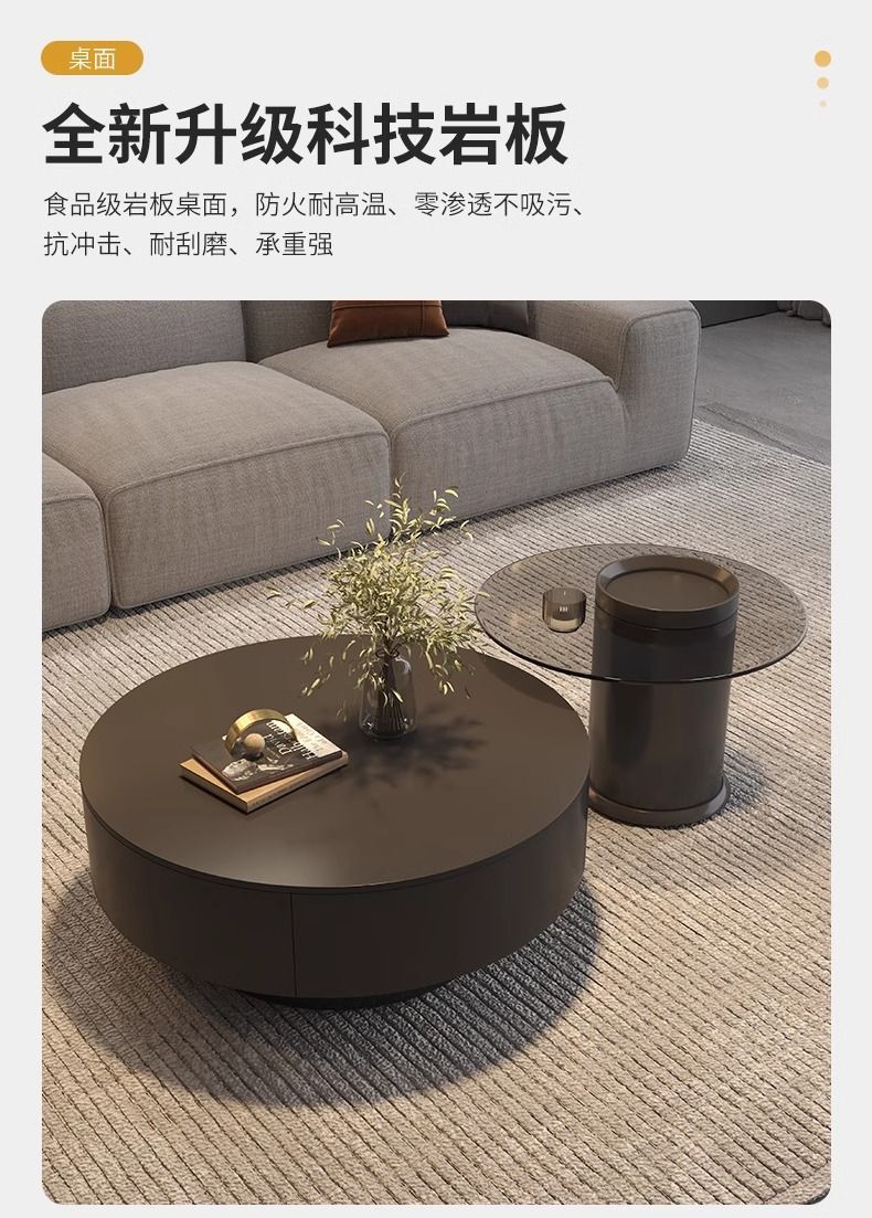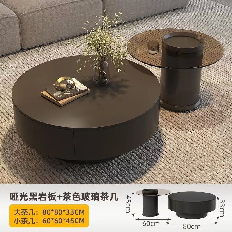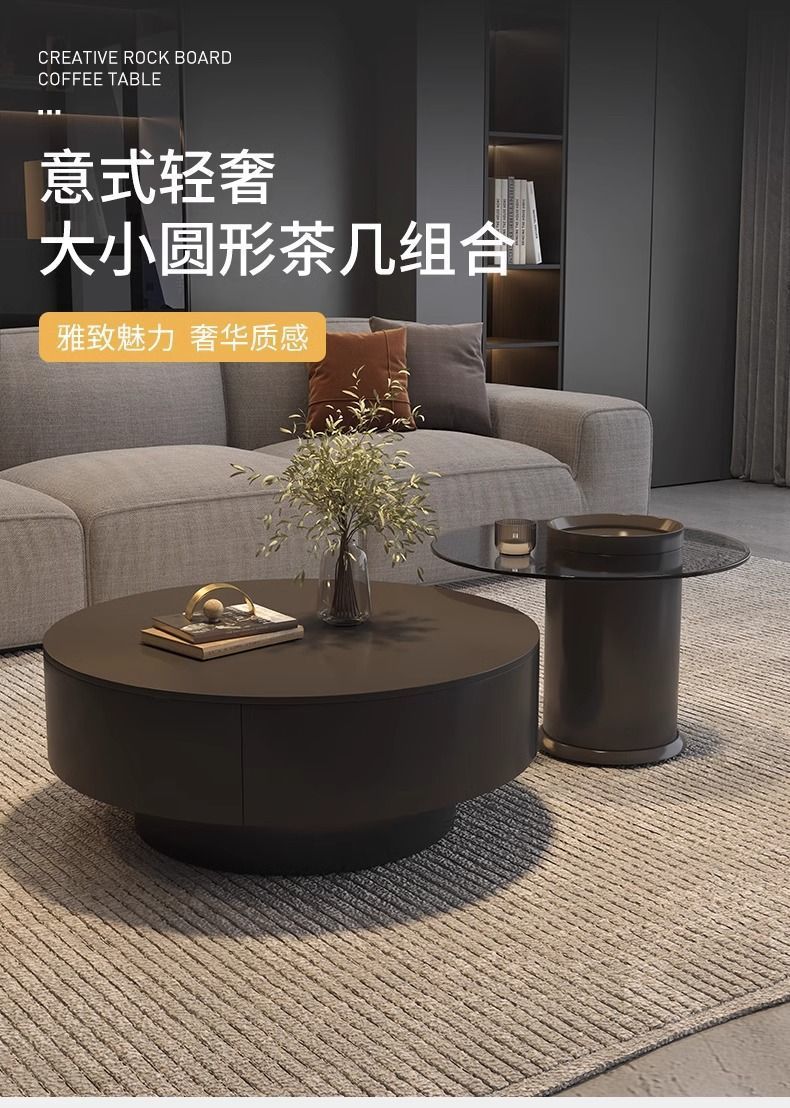 意式轻奢岩板茶几极简储物客厅小户型茶室高级感圆形家用茶桌组合