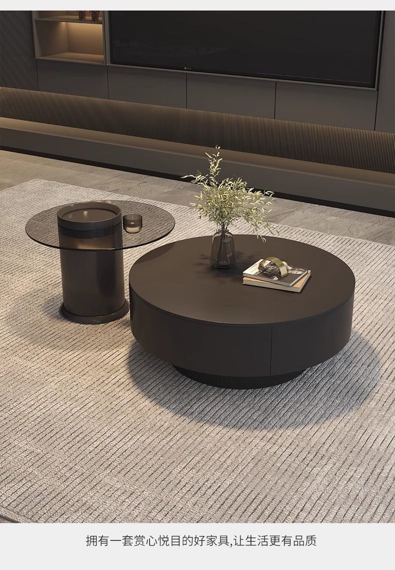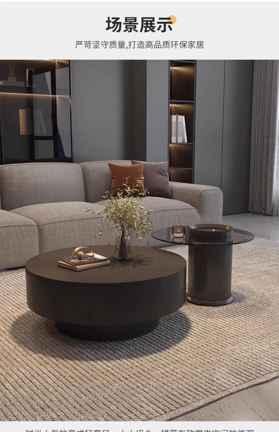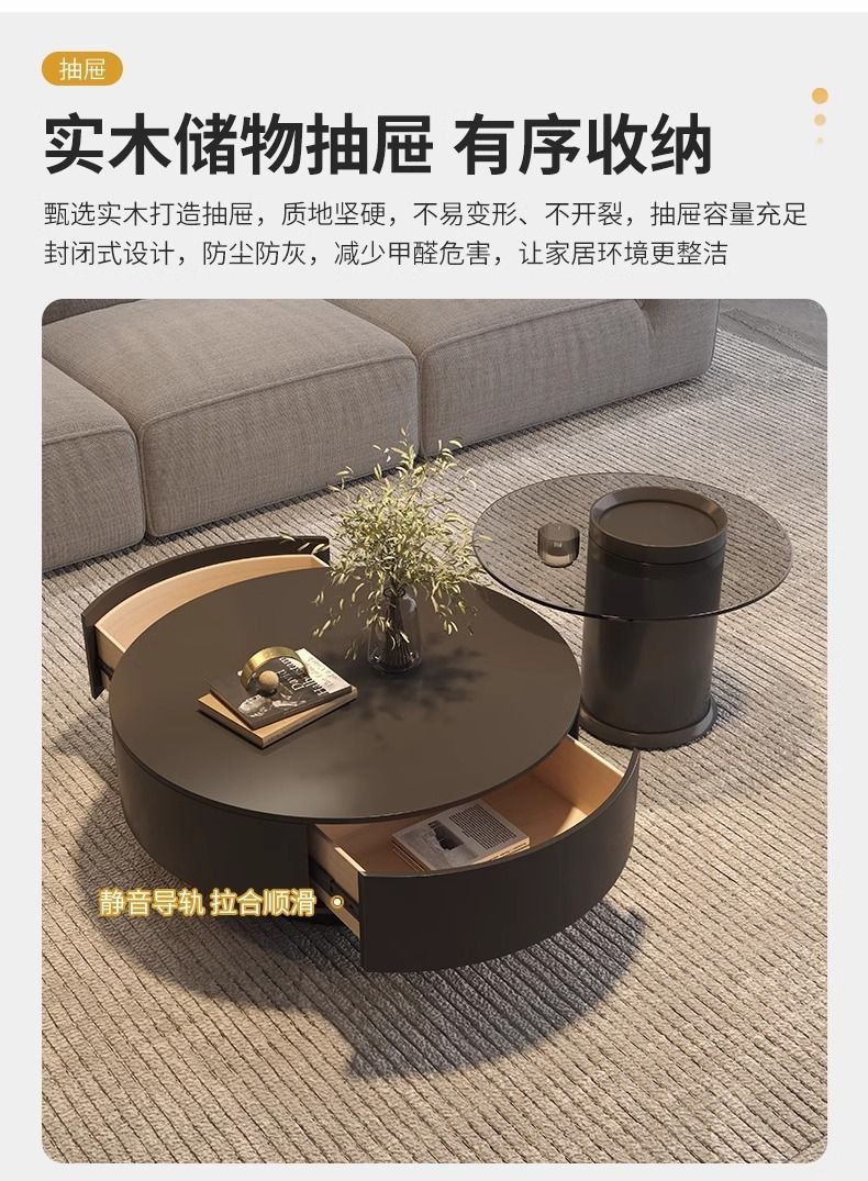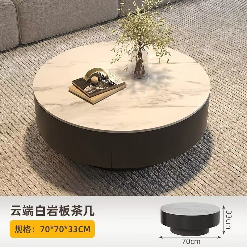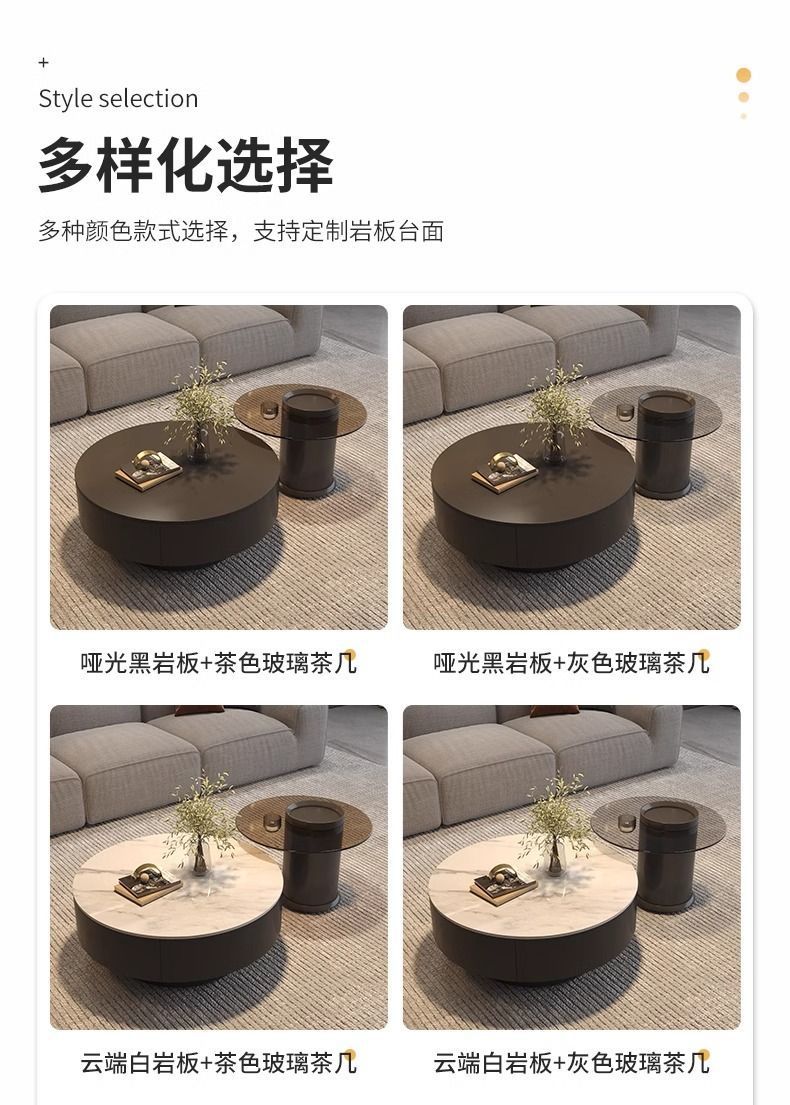 意式轻奢岩板茶几极简储物客厅小户型茶室高级感圆形家用茶桌组合