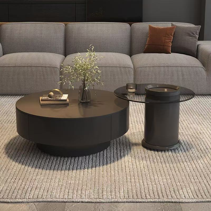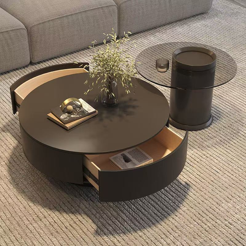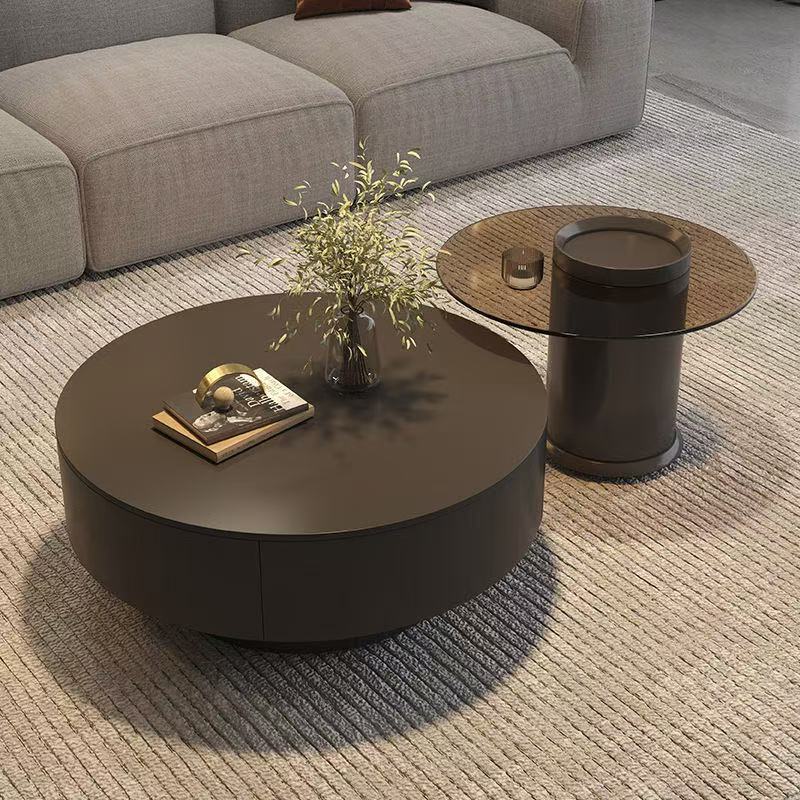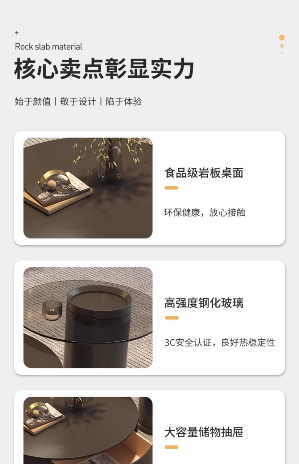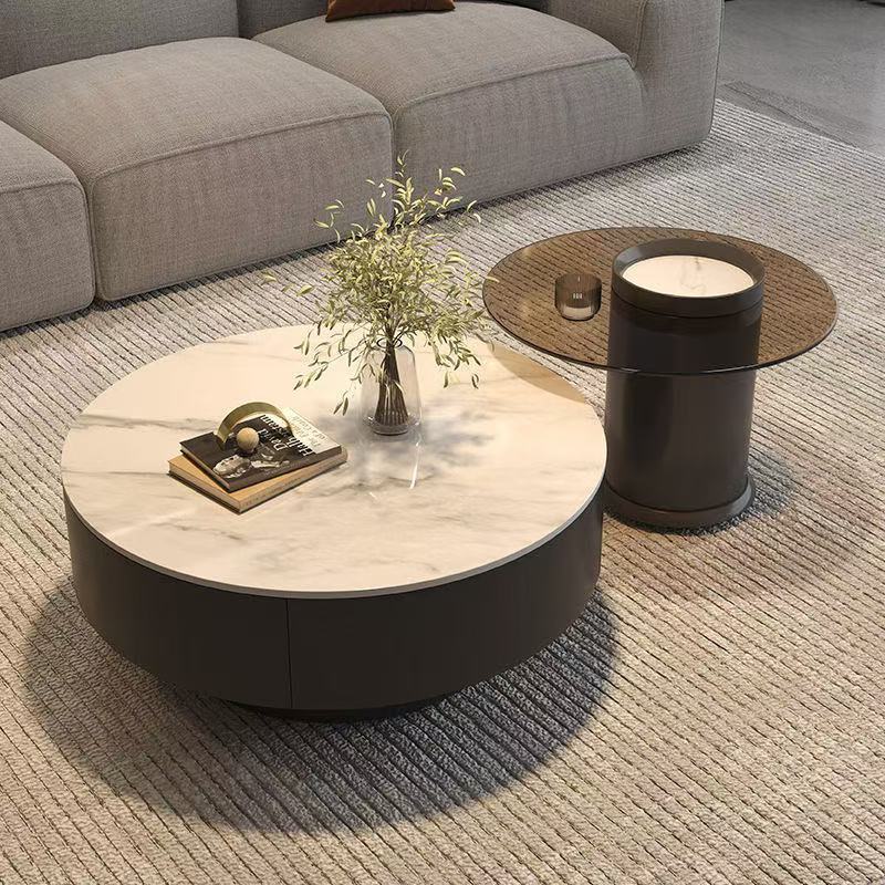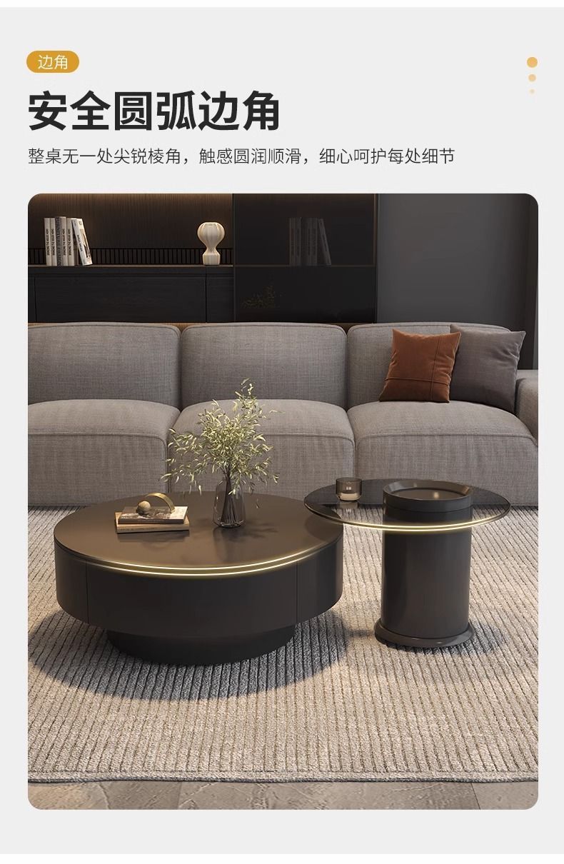 意式轻奢岩板茶几极简储物客厅小户型茶室高级感圆形家用茶桌组合