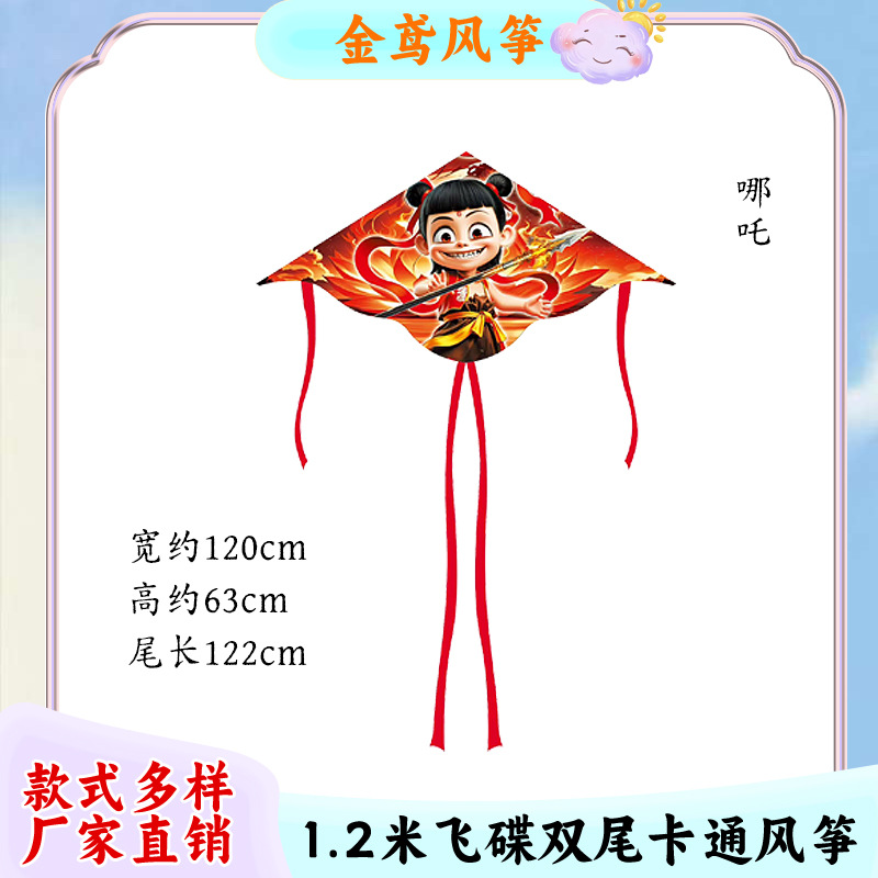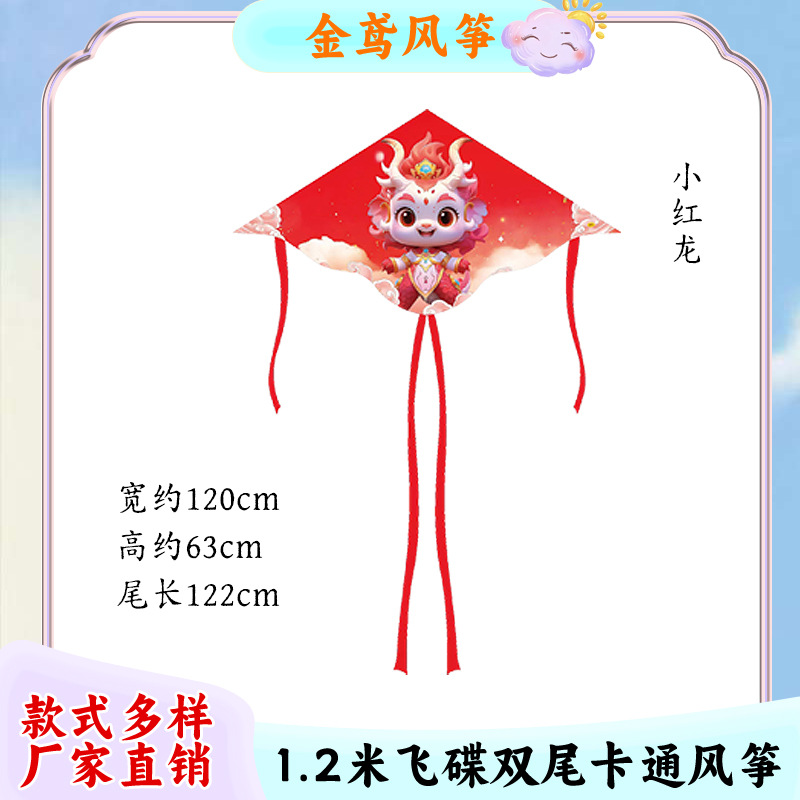 儿童飞碟双尾风筝新款儿童户外卡通风筝长尾潍坊风筝批发