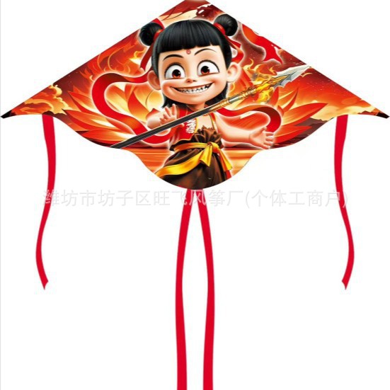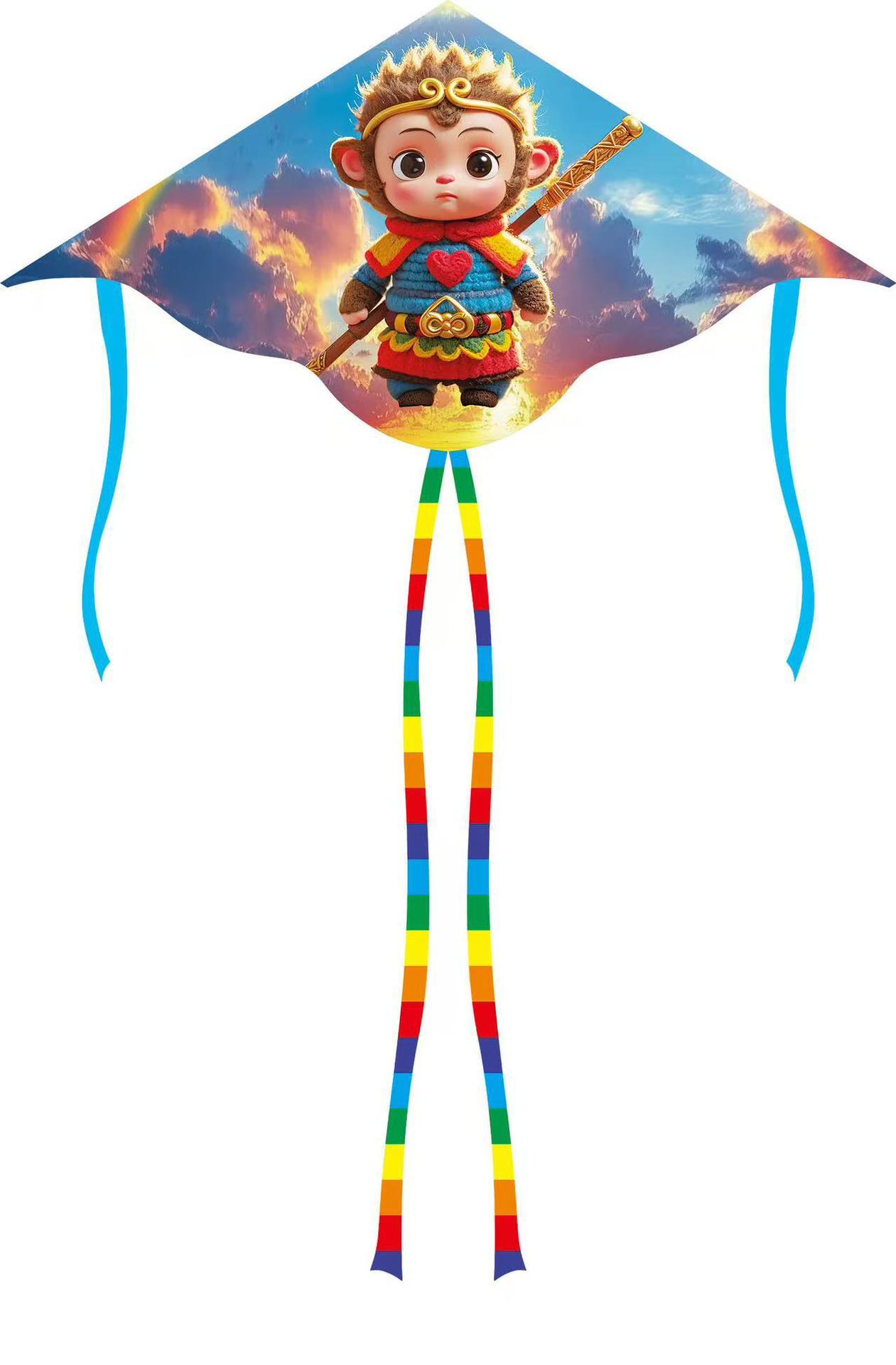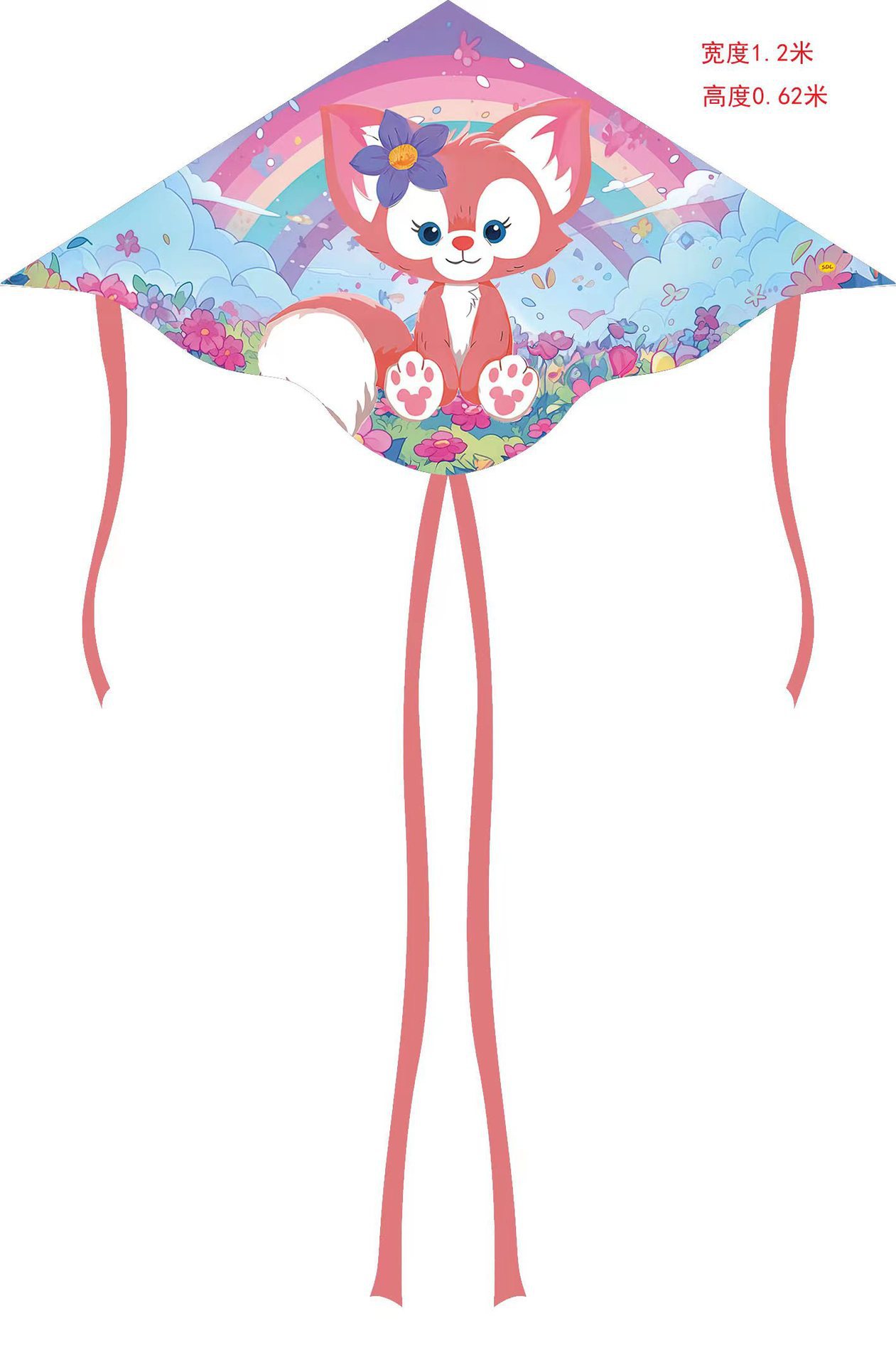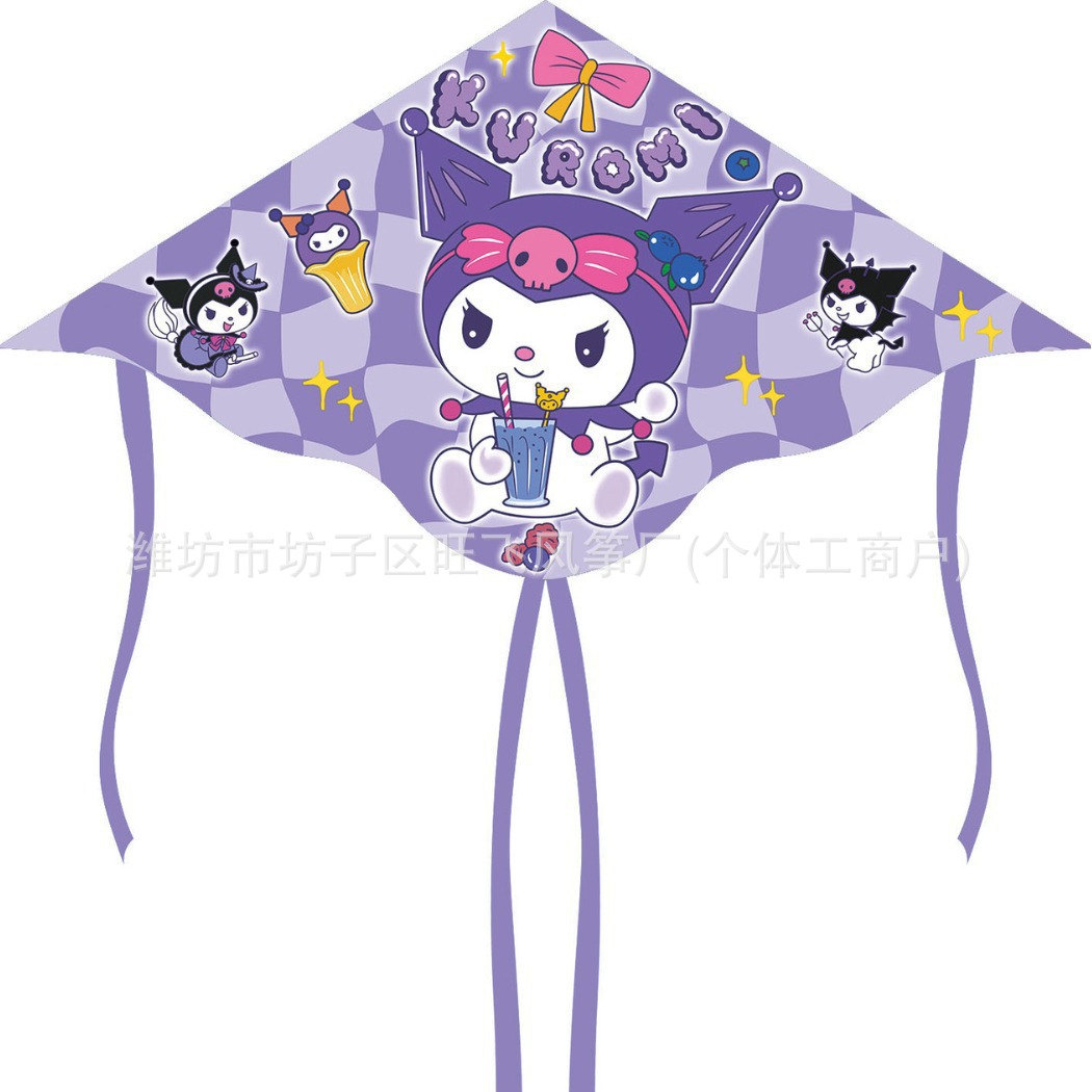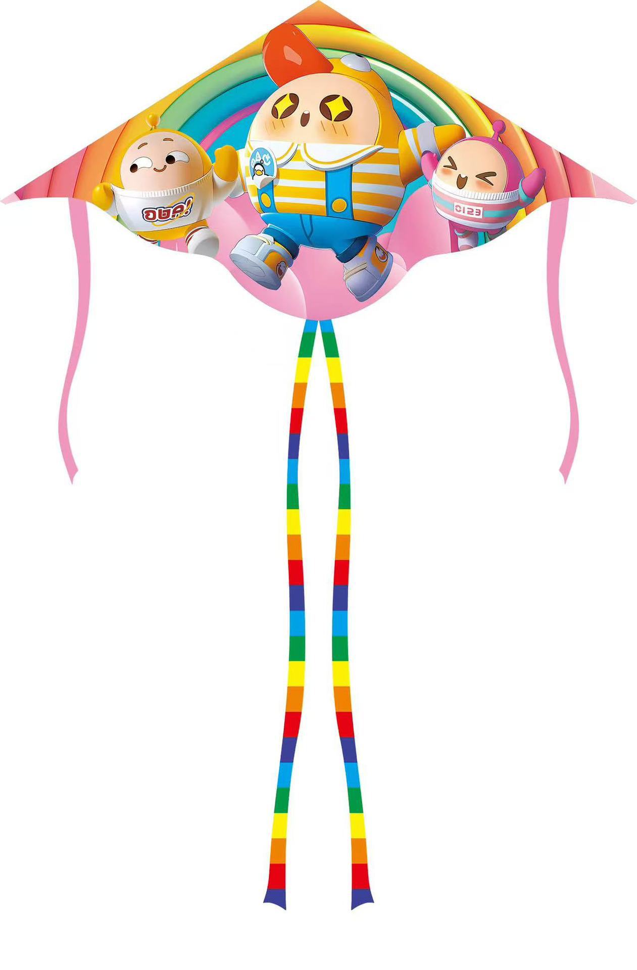 新款双尾风筝潍坊风筝批发儿童卡通风筝格子布弯边三角风筝易飞