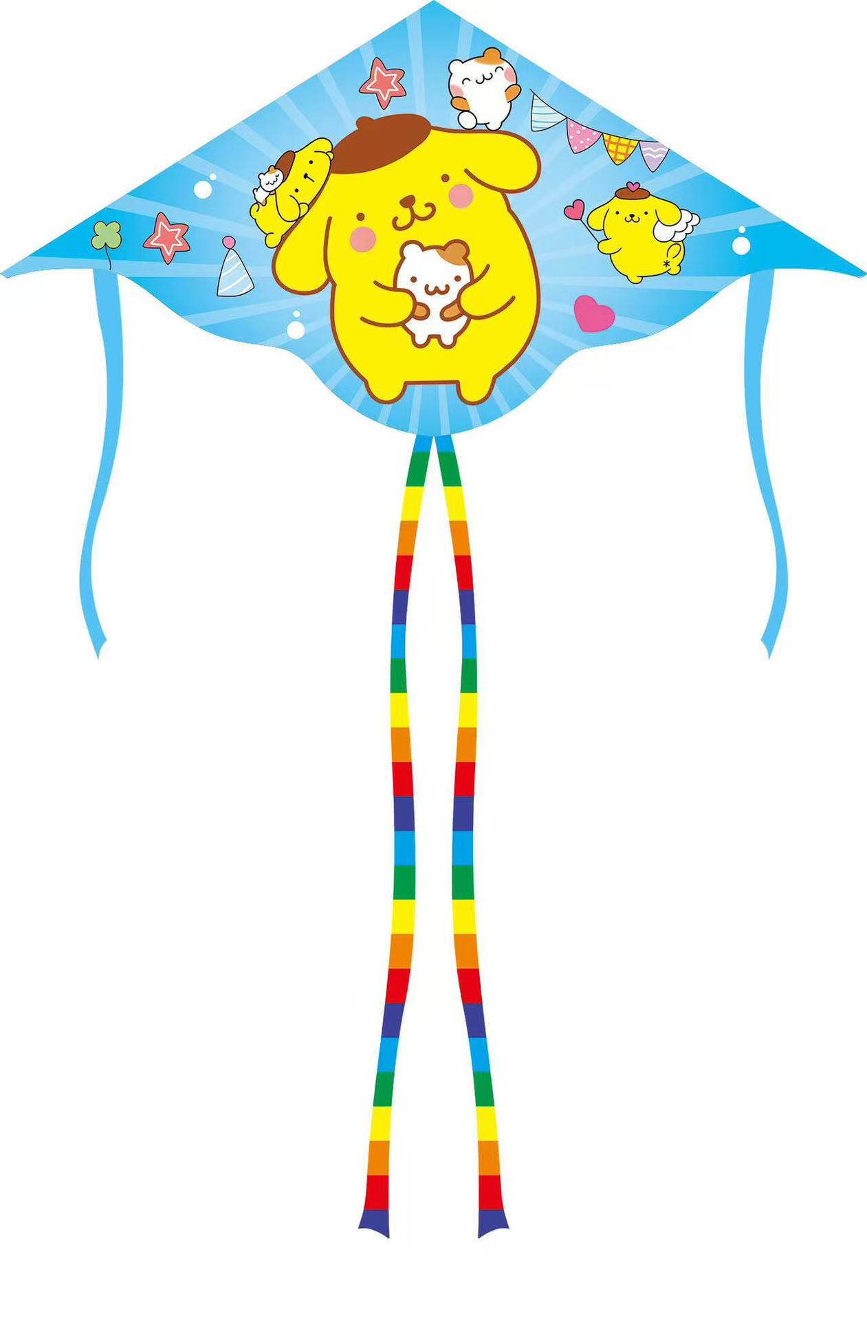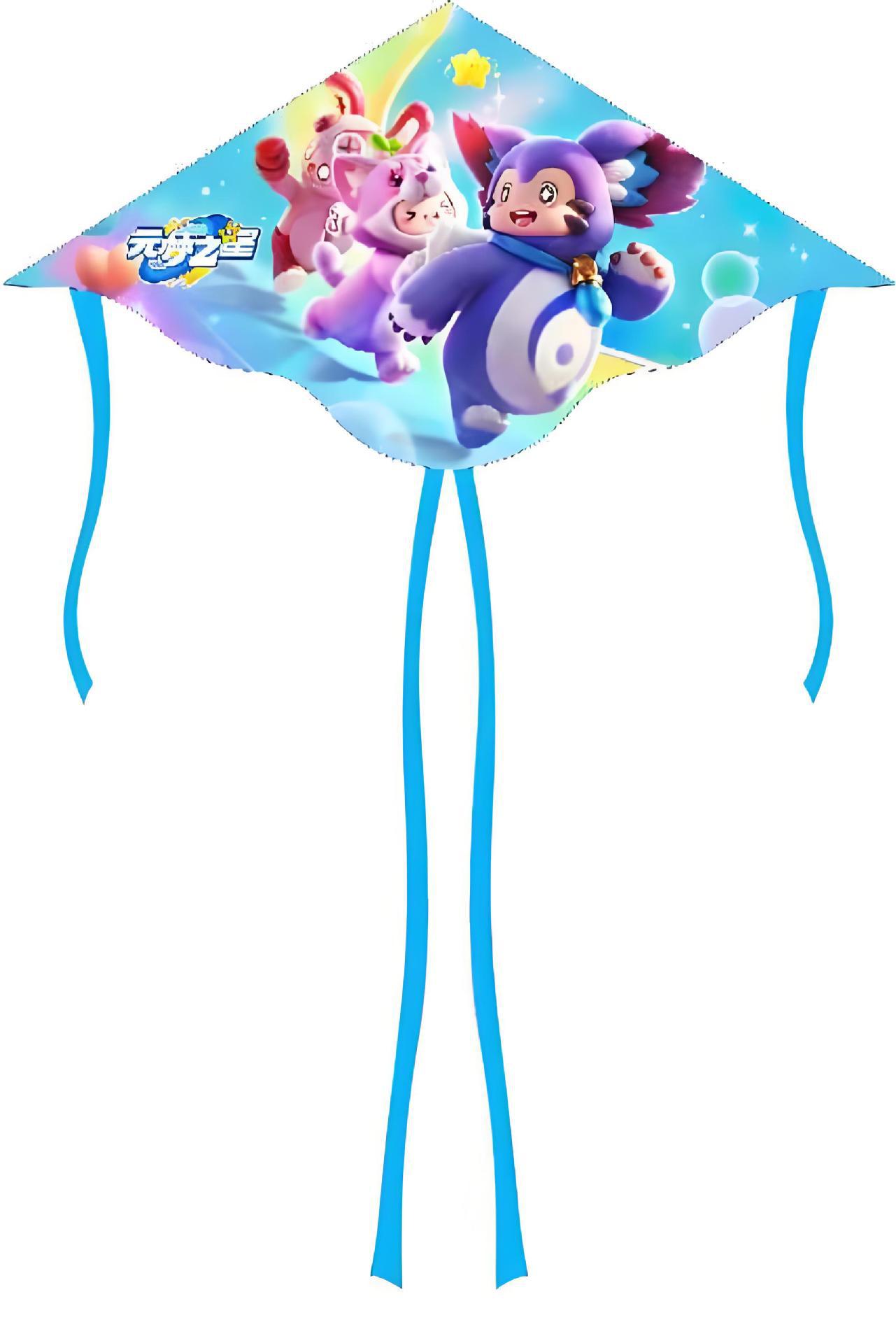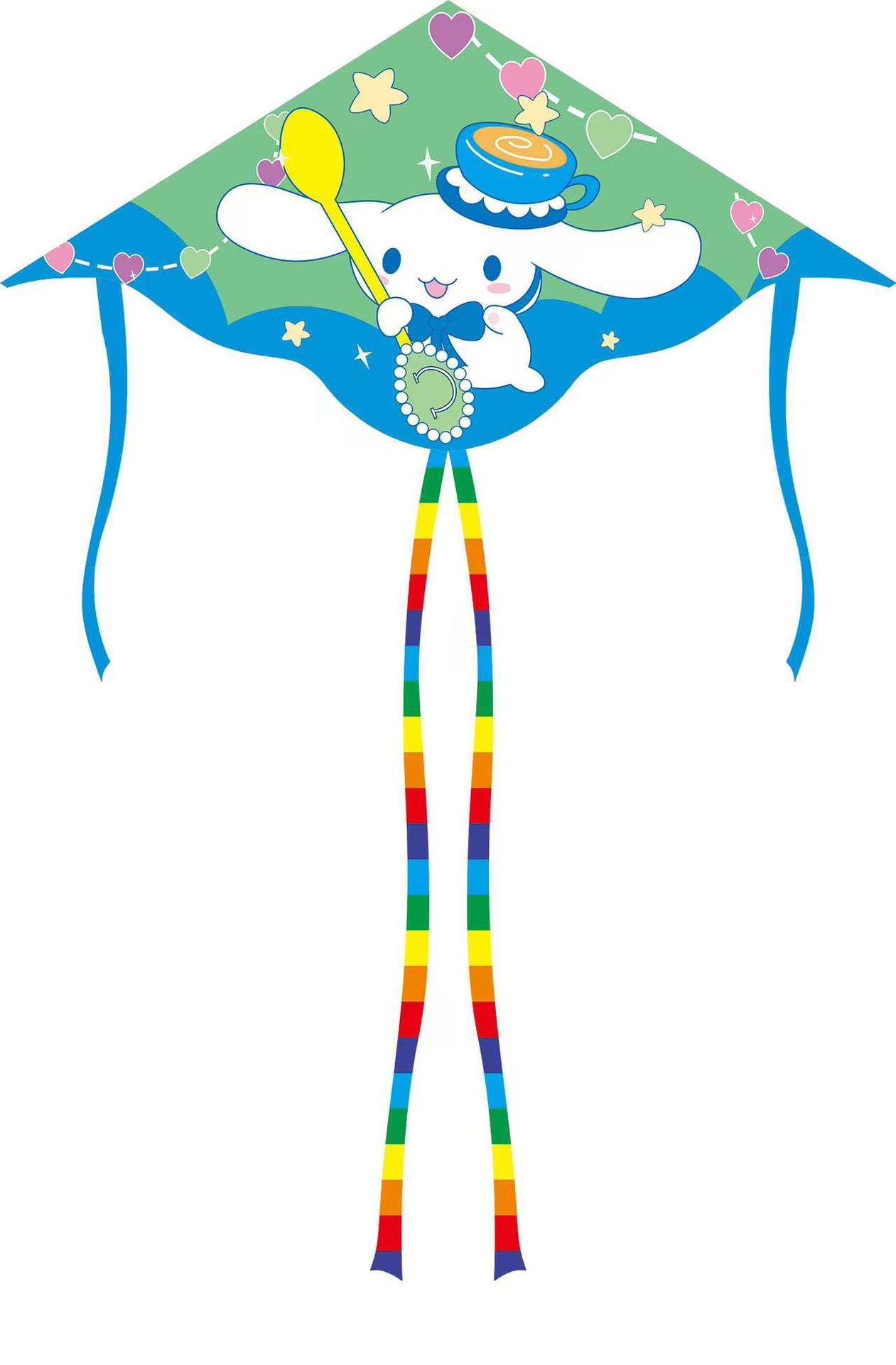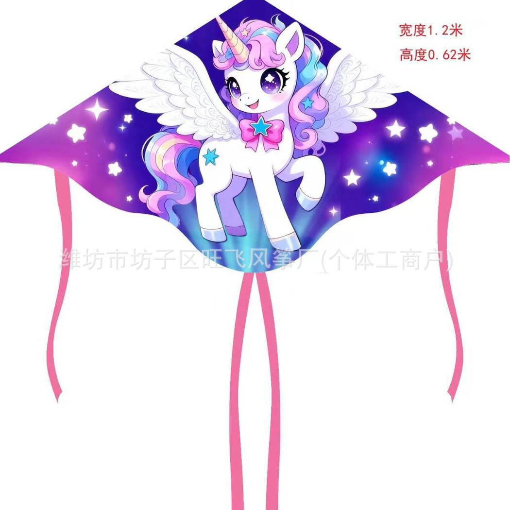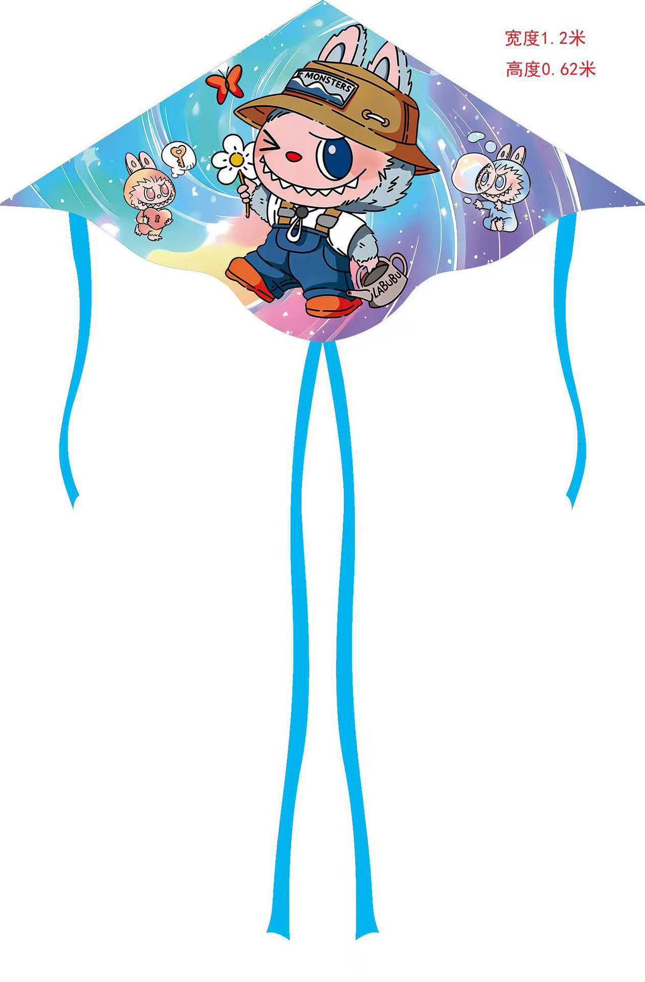 新款双尾风筝潍坊风筝批发儿童卡通风筝格子布弯边三角风筝易飞