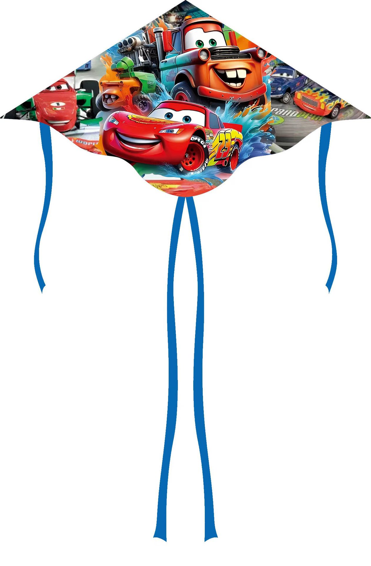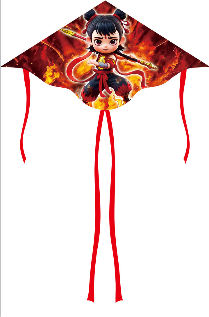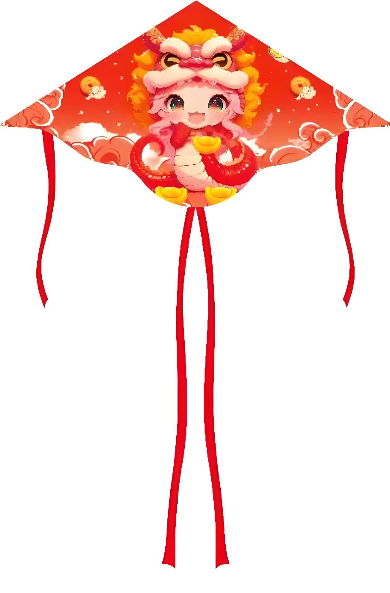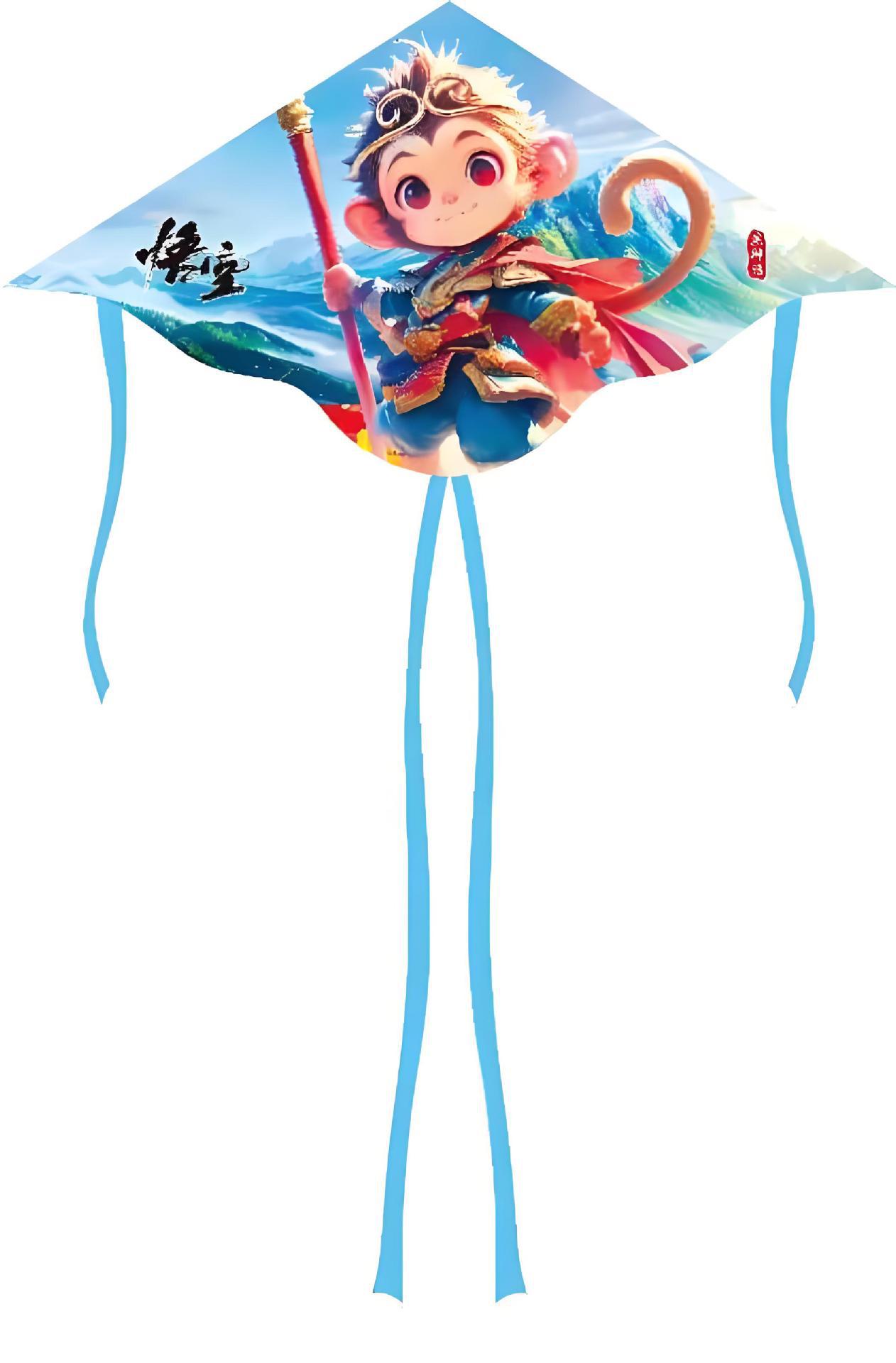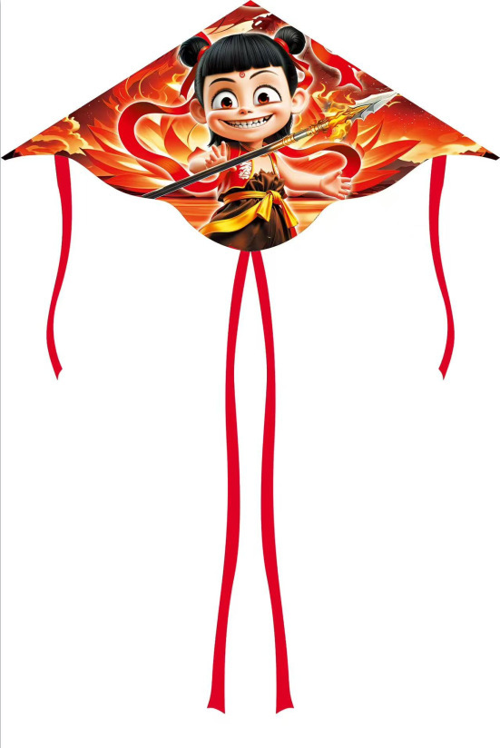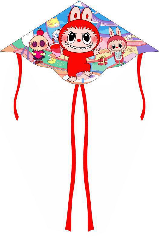 新款双尾风筝潍坊风筝批发儿童卡通风筝格子布弯边三角风筝易飞
