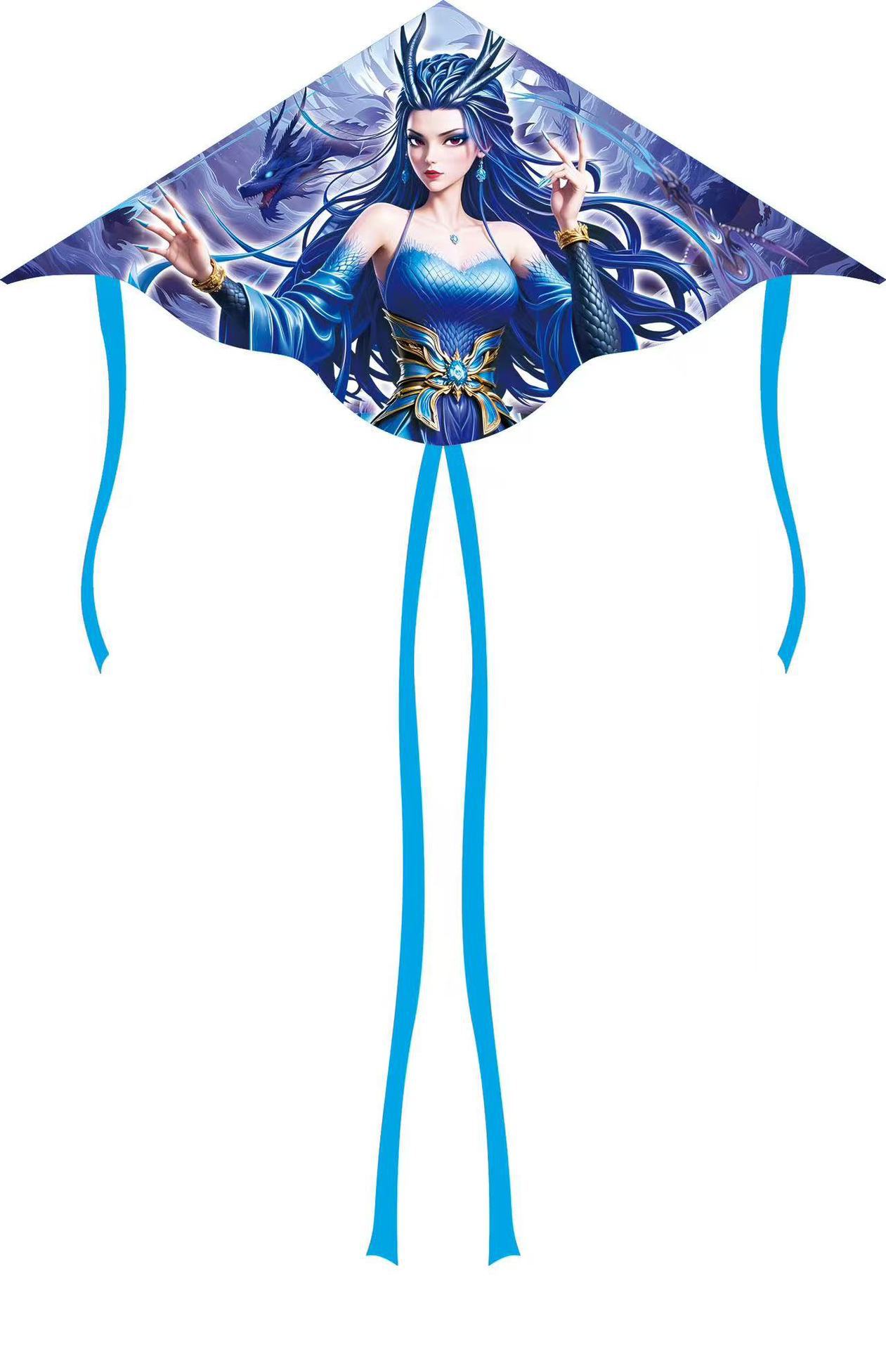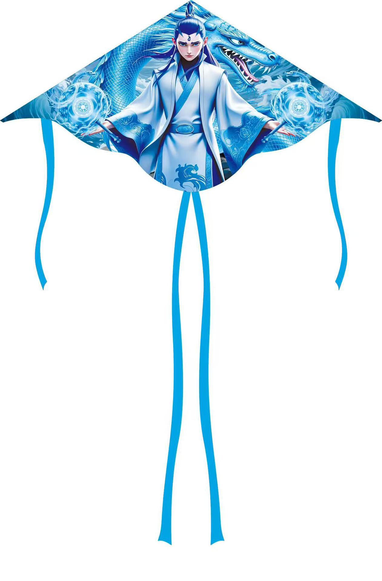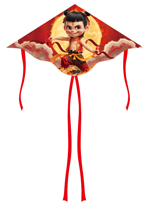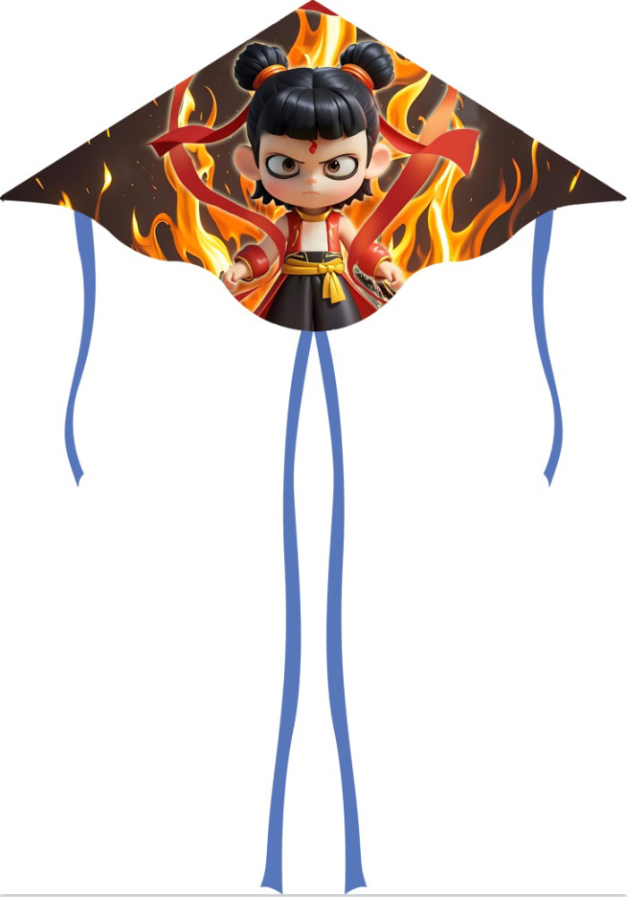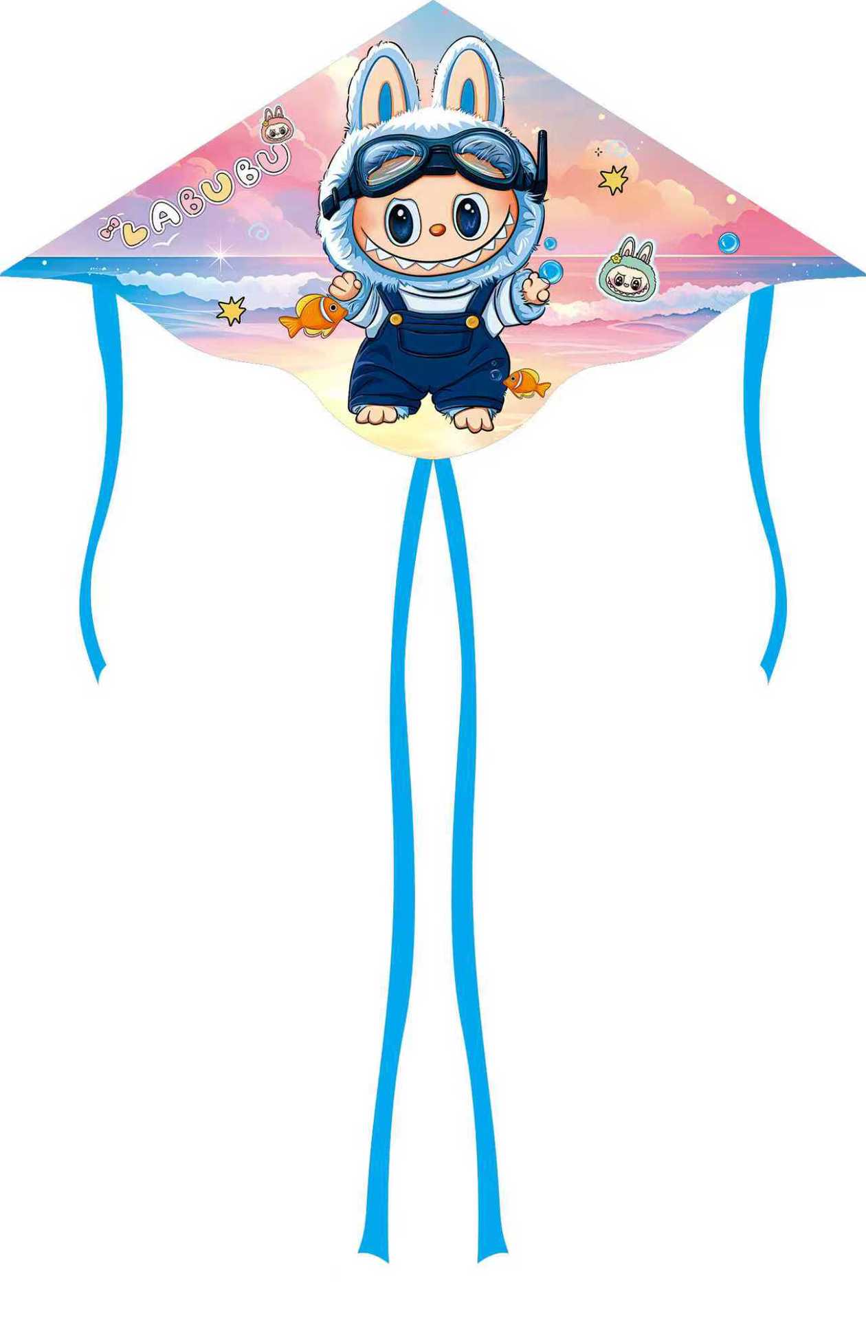 新款双尾风筝潍坊风筝批发儿童卡通风筝格子布弯边三角风筝易飞