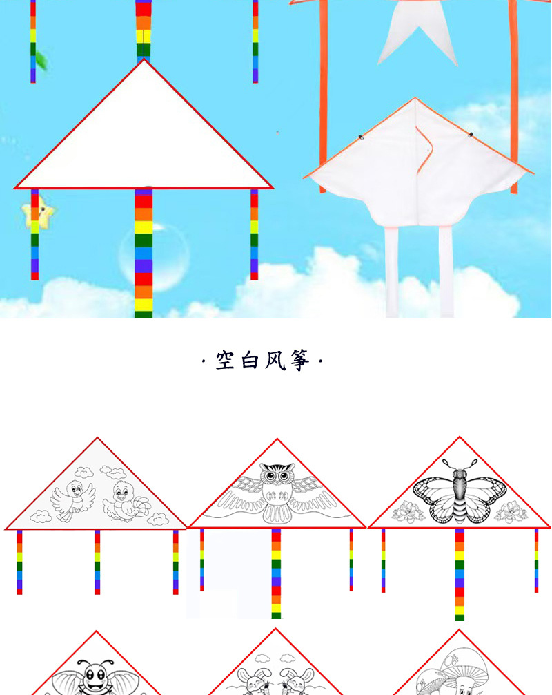 diy手绘风筝带材料包 儿童涂鸦绘画风筝 厂家批发涂鸦diy空白风筝
