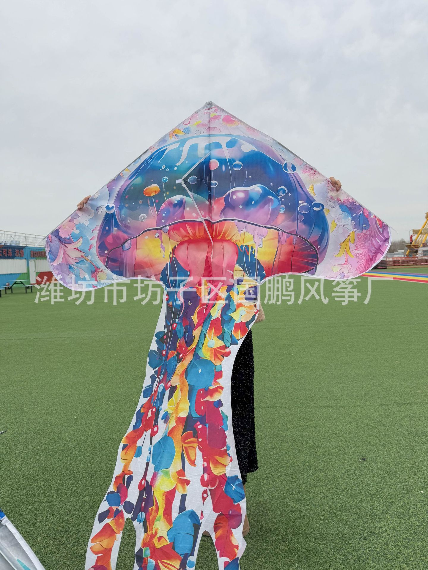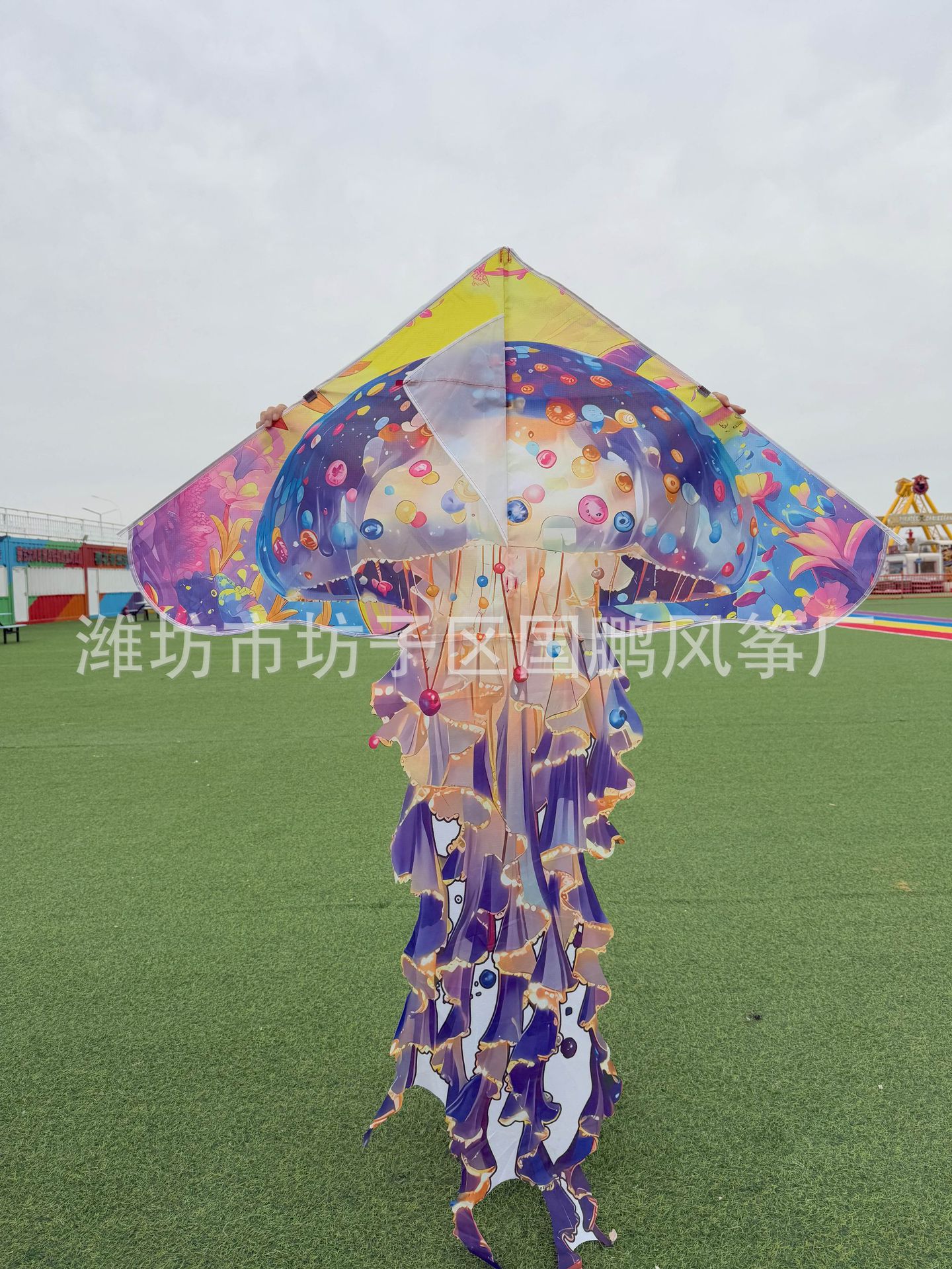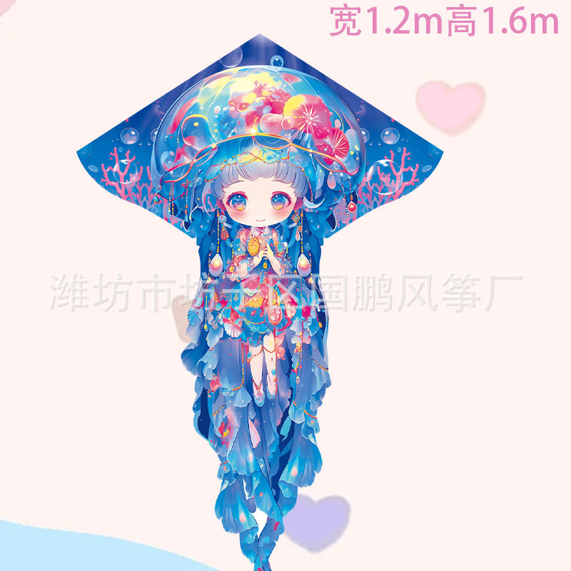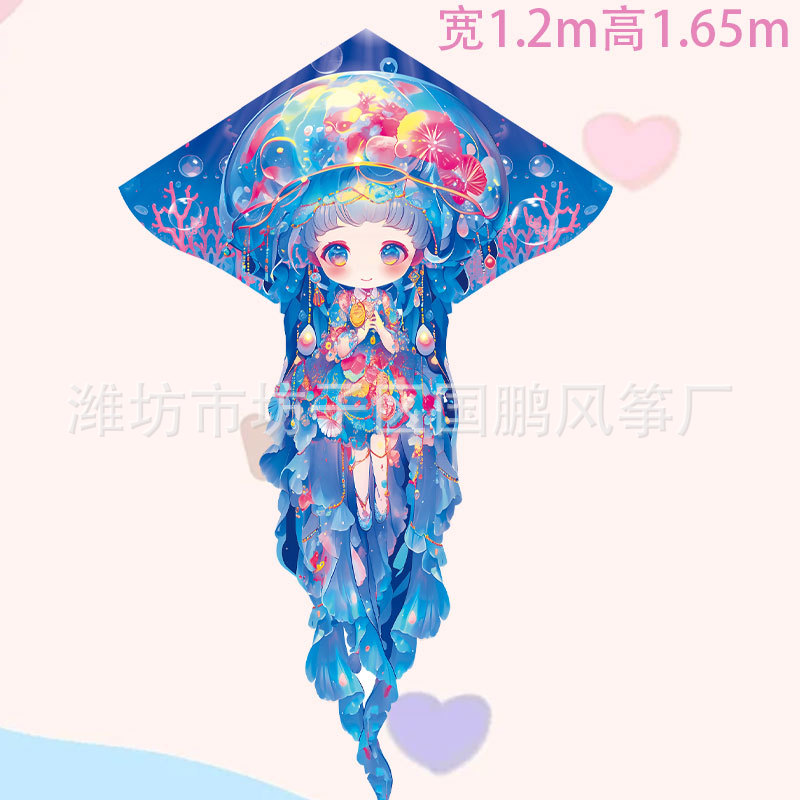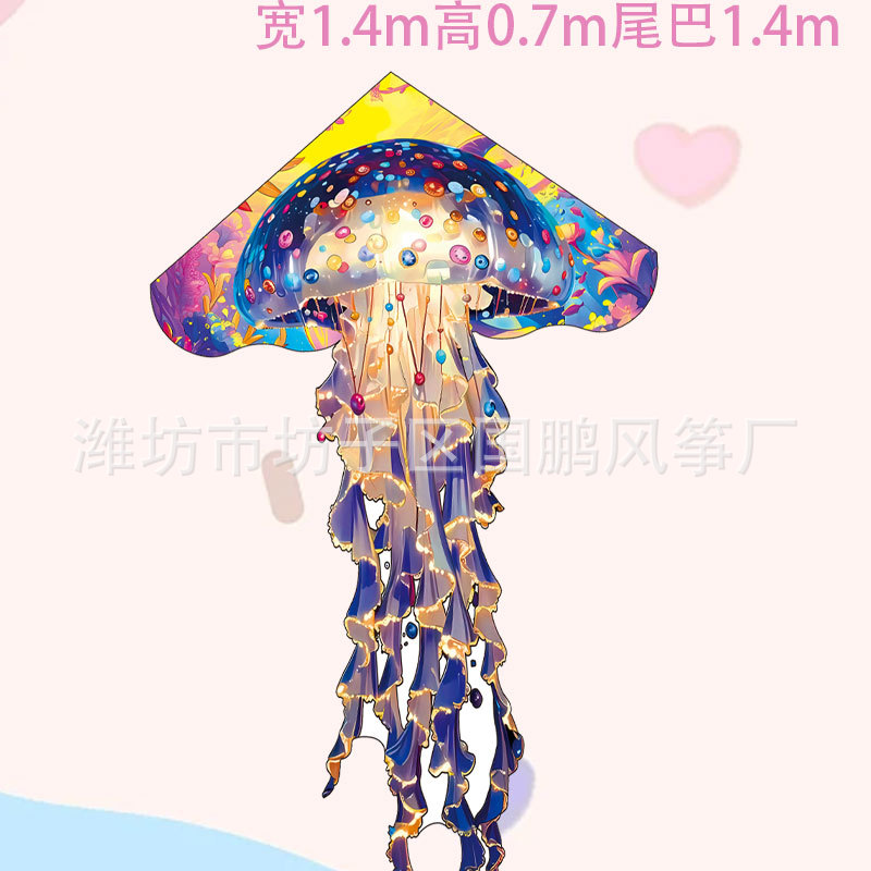 潍坊水母风筝厂家批发长尾带线微风易飞户外摆摊玩具儿童成人风筝