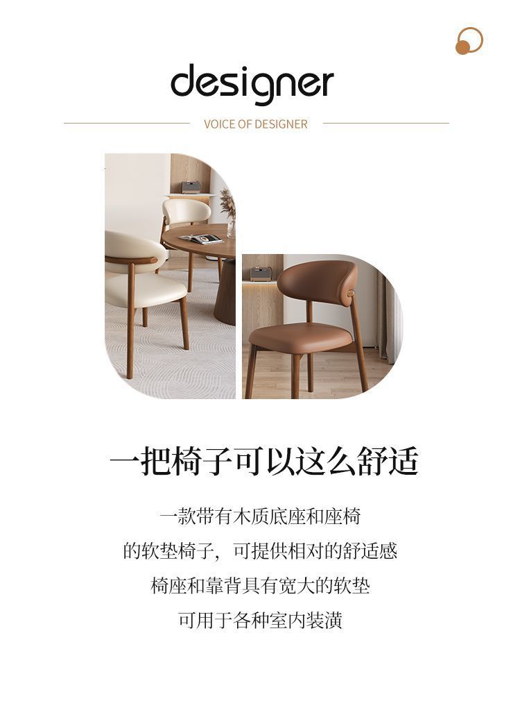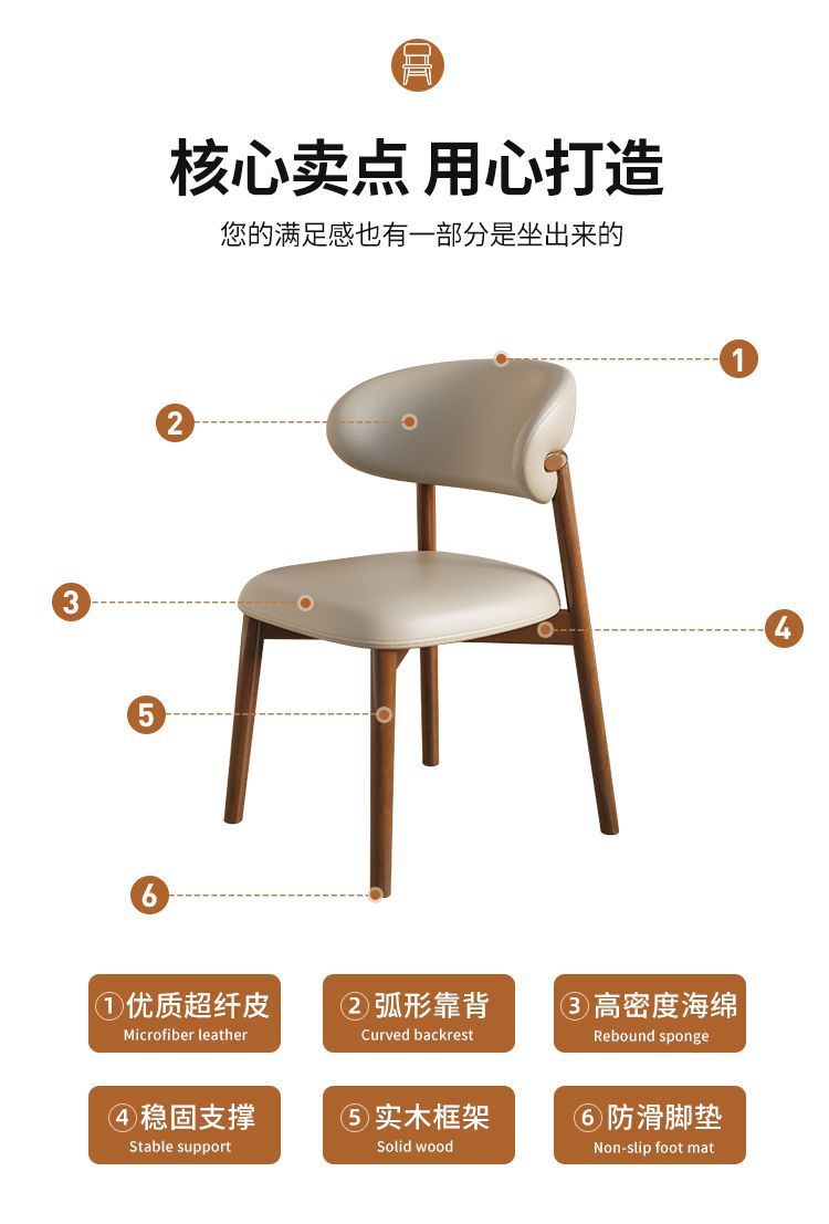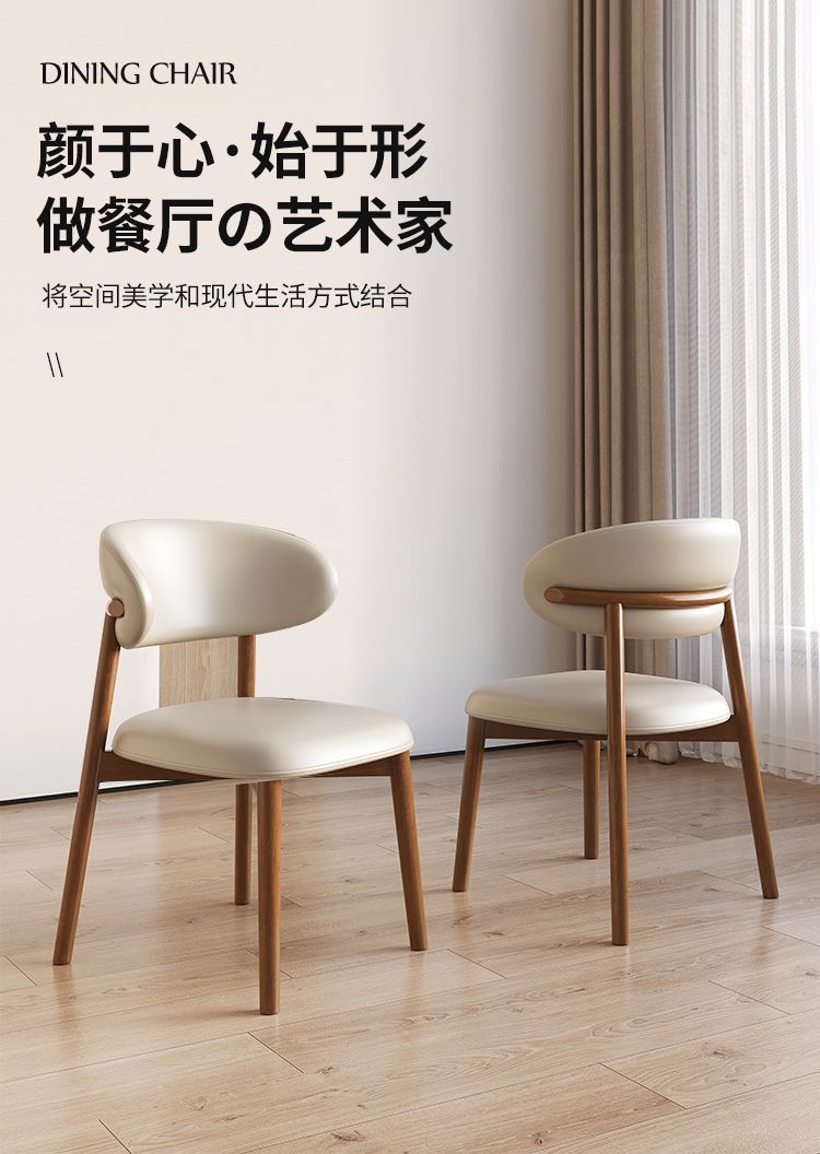 实木餐椅网红北欧家用轻奢简约现代靠背餐桌椅饭店餐厅奶油风椅子
