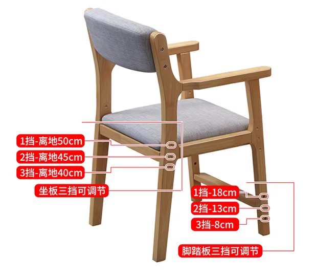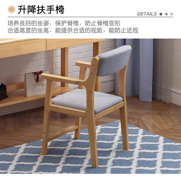 实木椅子餐椅可升降调节靠背椅儿童学习书桌椅办公电脑椅带扶手椅