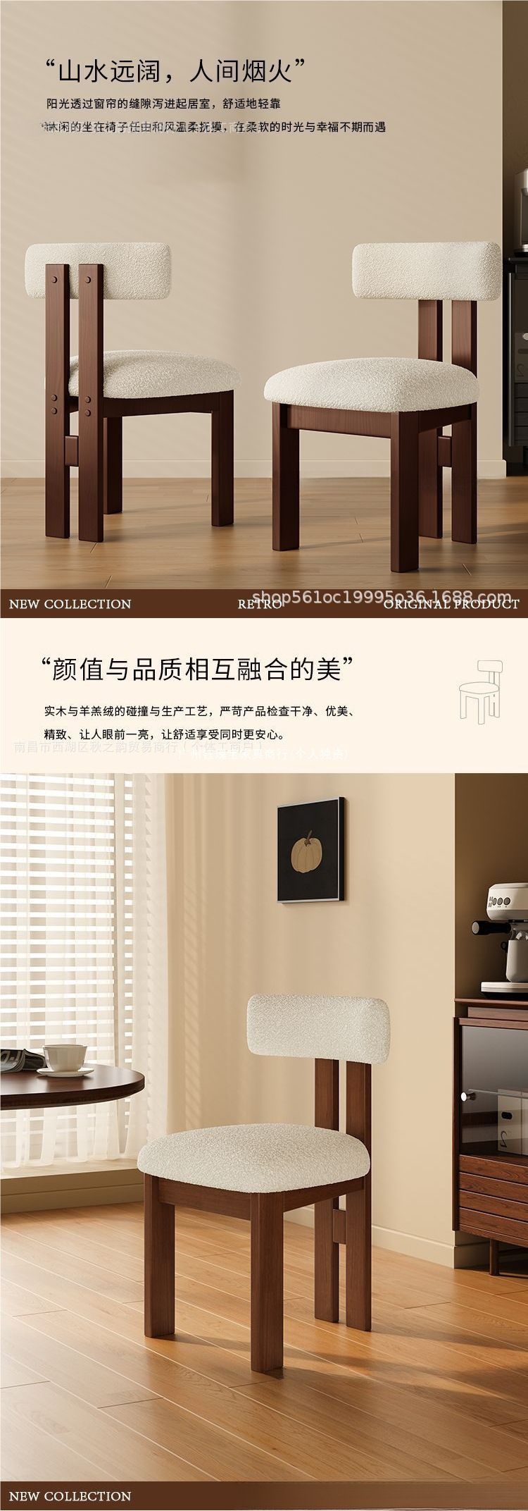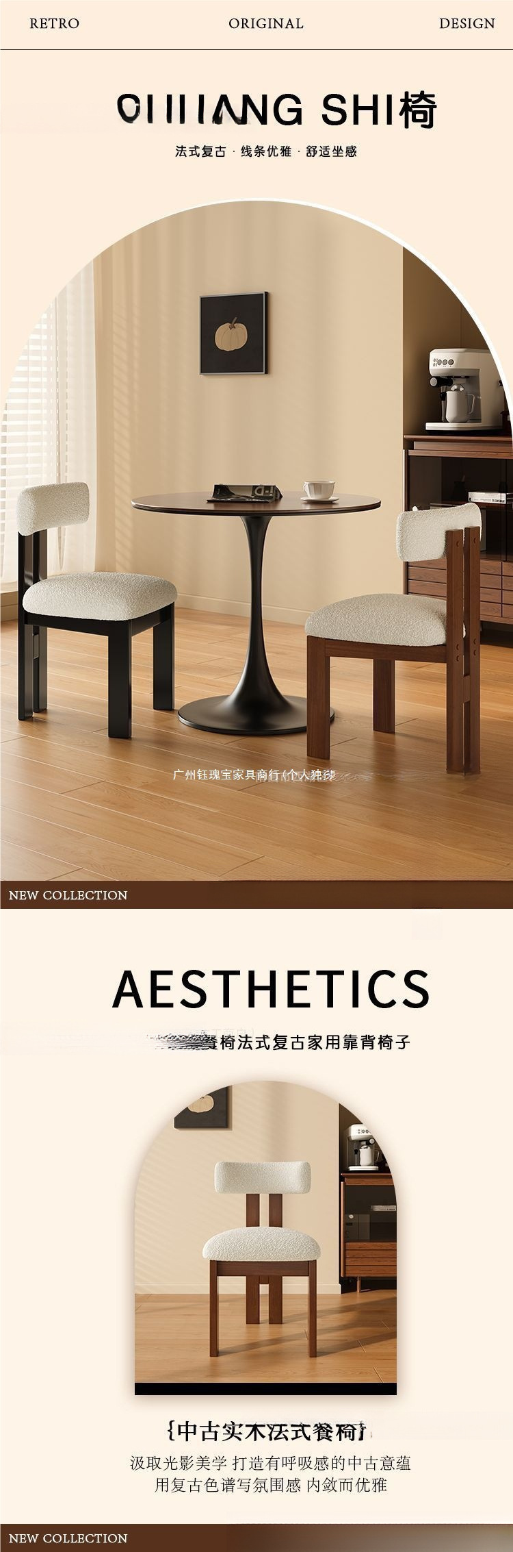 北欧原野椅现代复古法式实木靠背餐椅侘寂风设计师款简约实木椅子