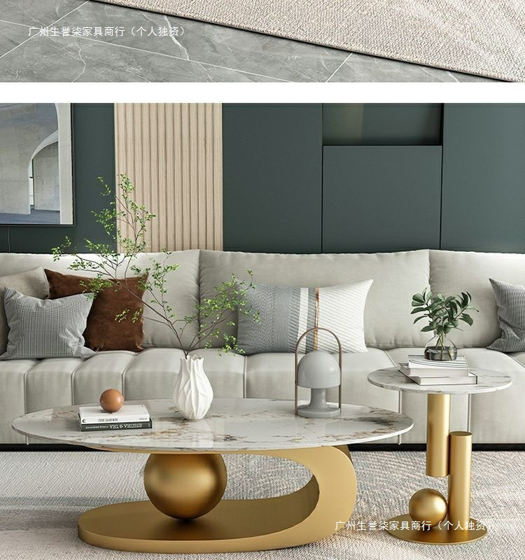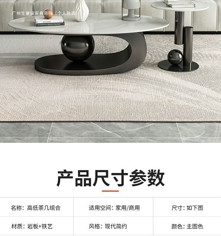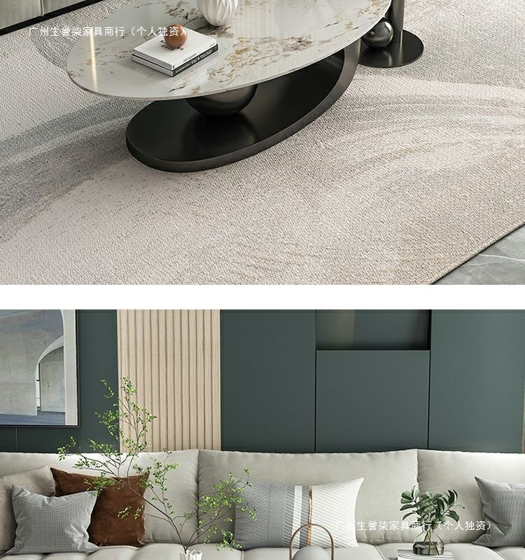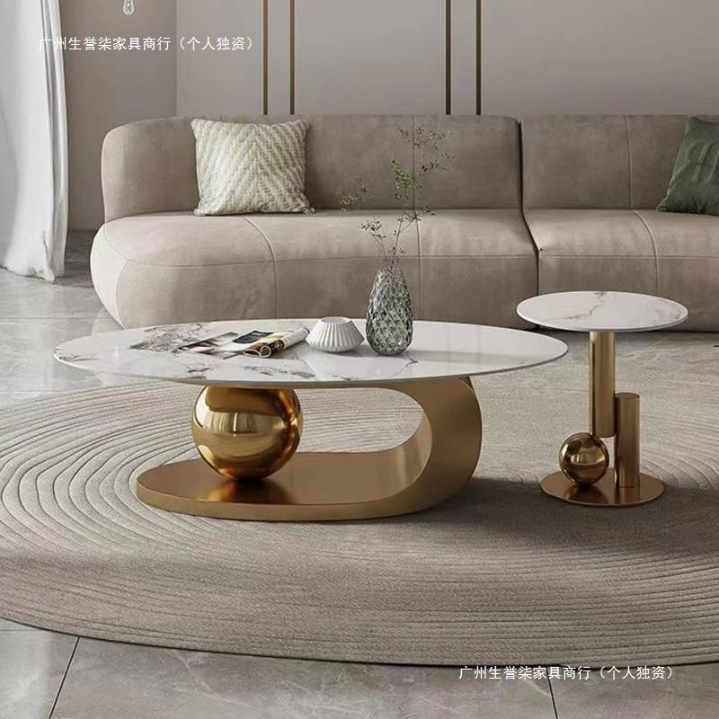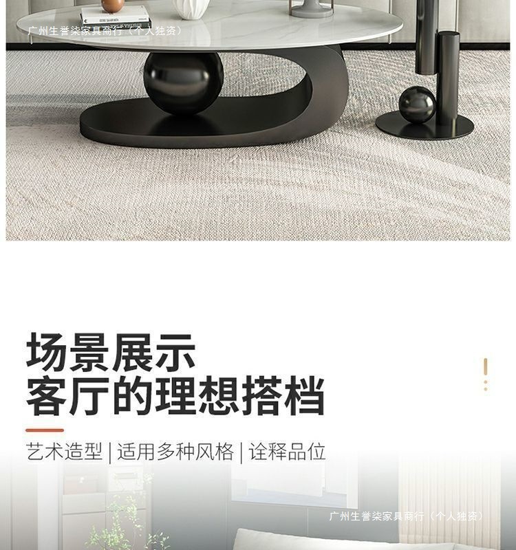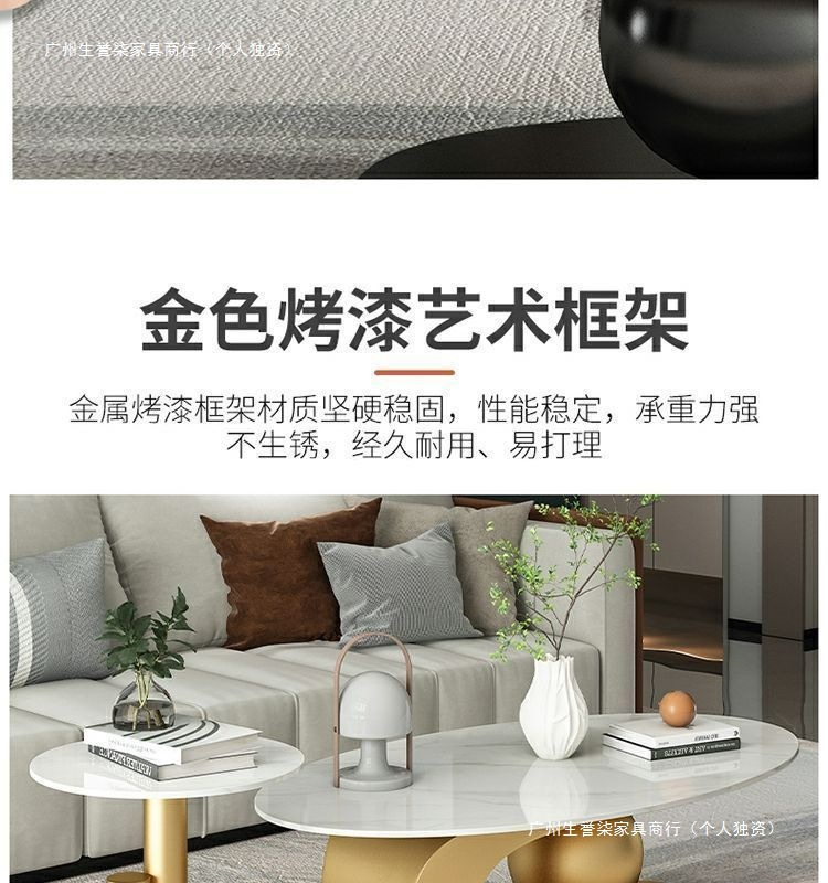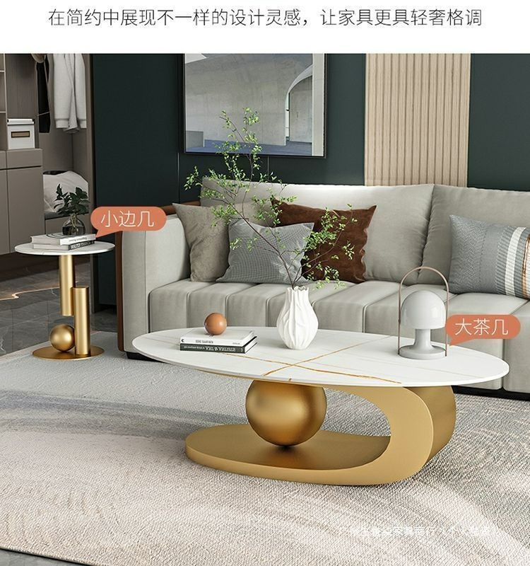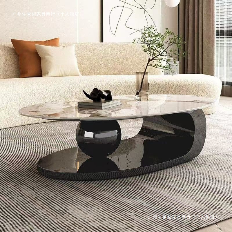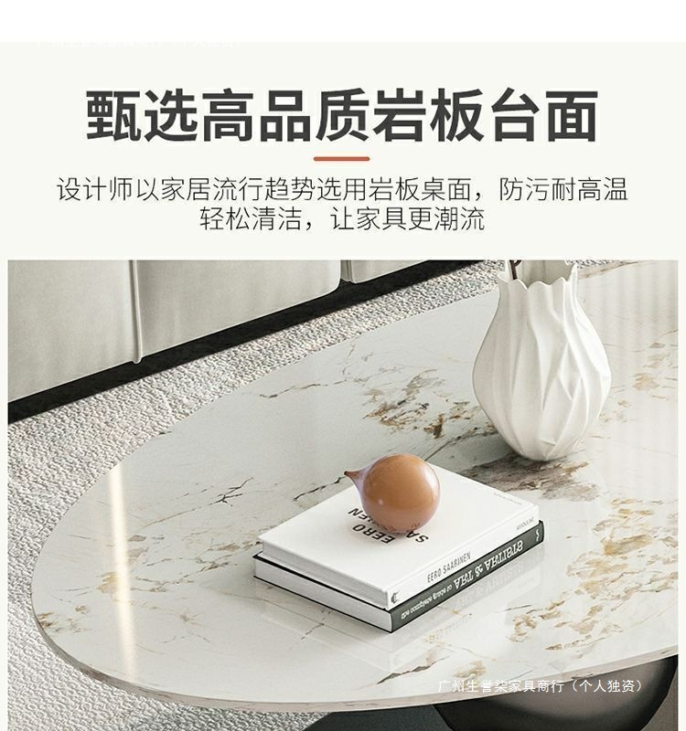 轻奢小户型岩板椭圆形茶几出租房用茶几家用客厅爆款桌子网红简易