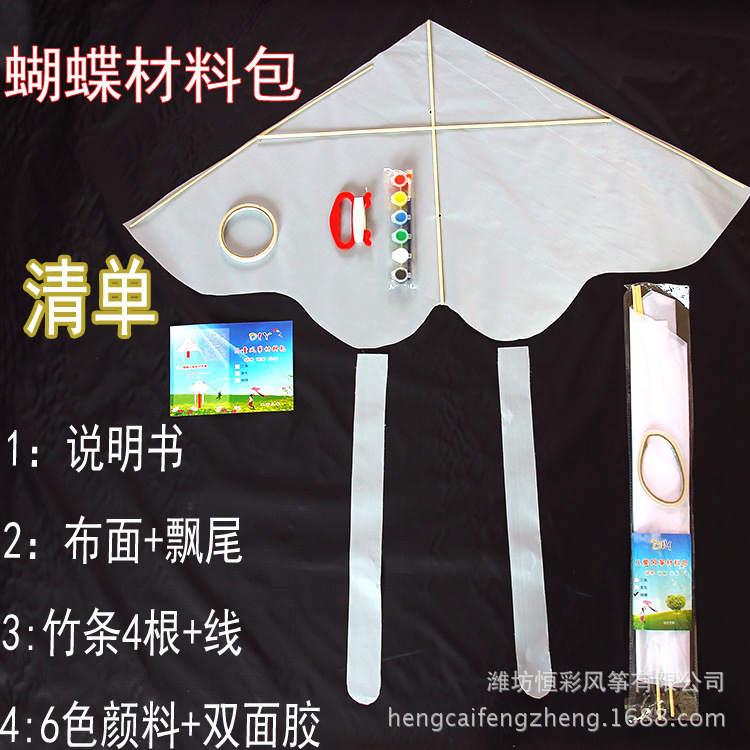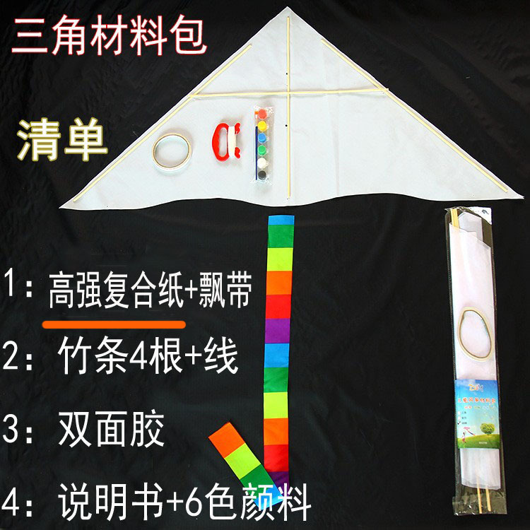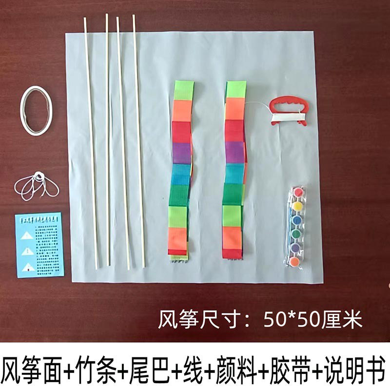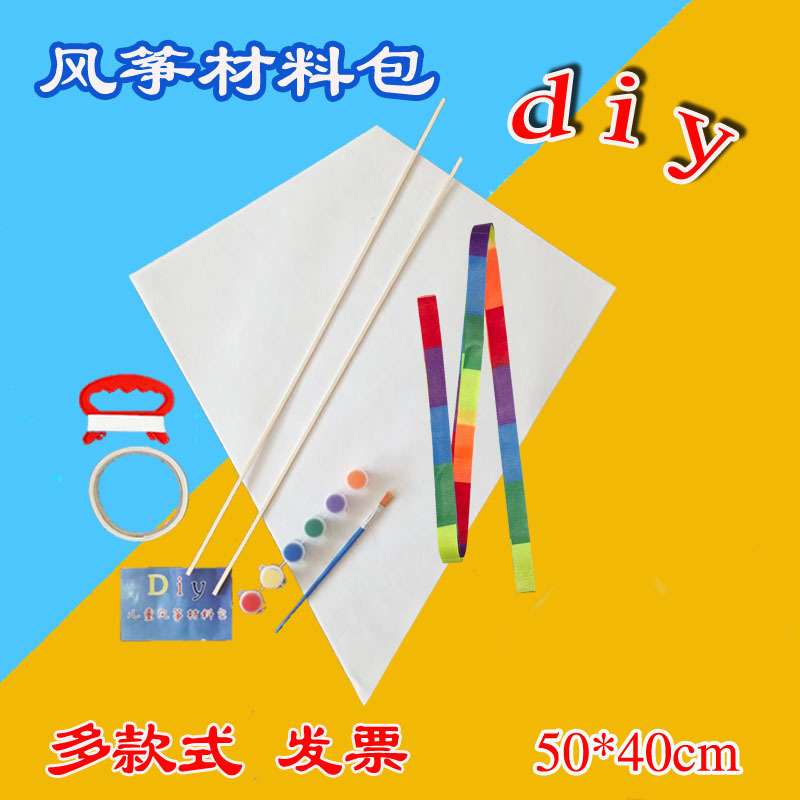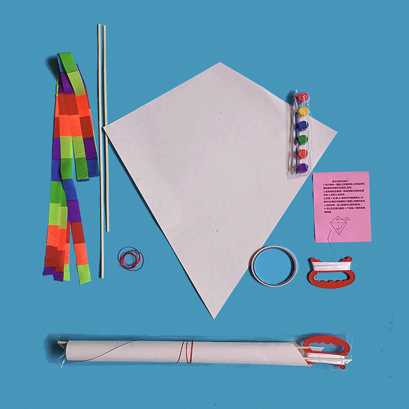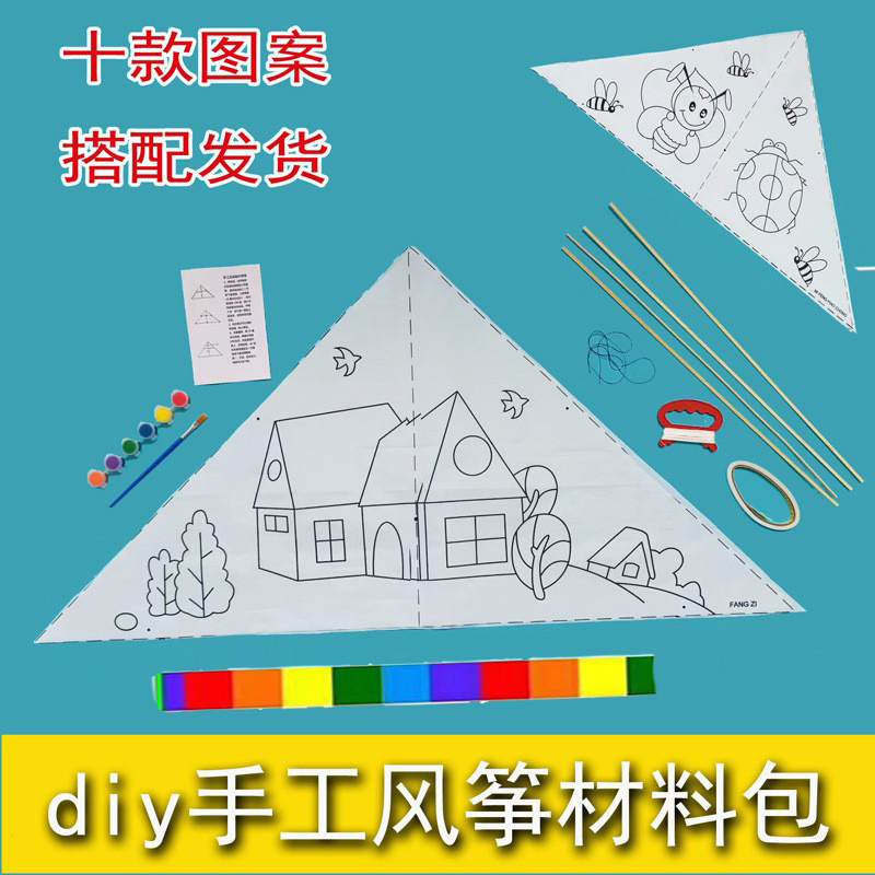 空白风筝DIY材料包手工制作幼儿童学生美术课教学文具纸风筝竹子