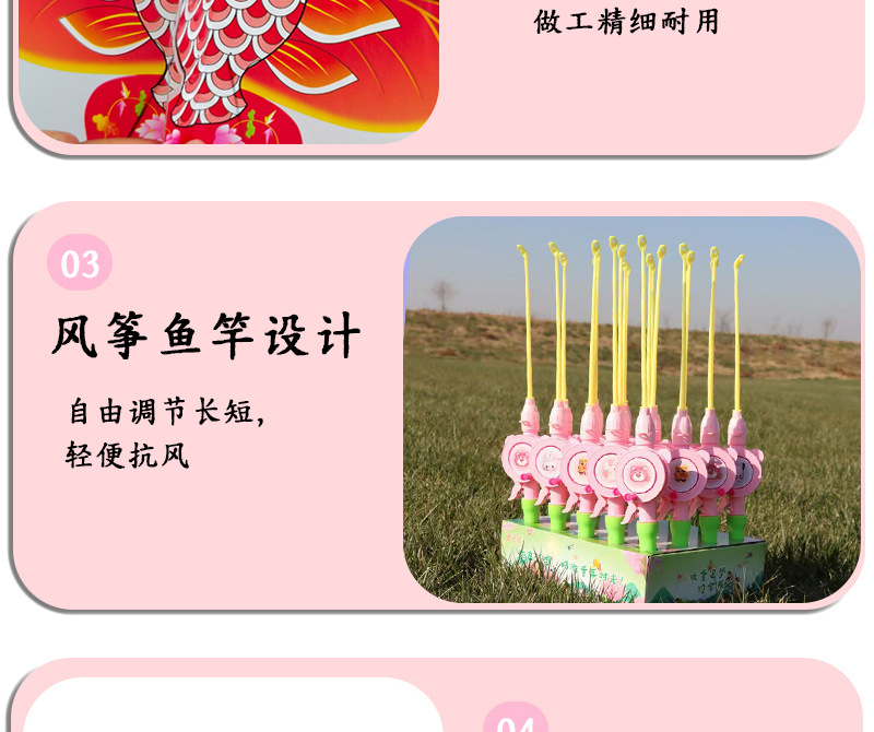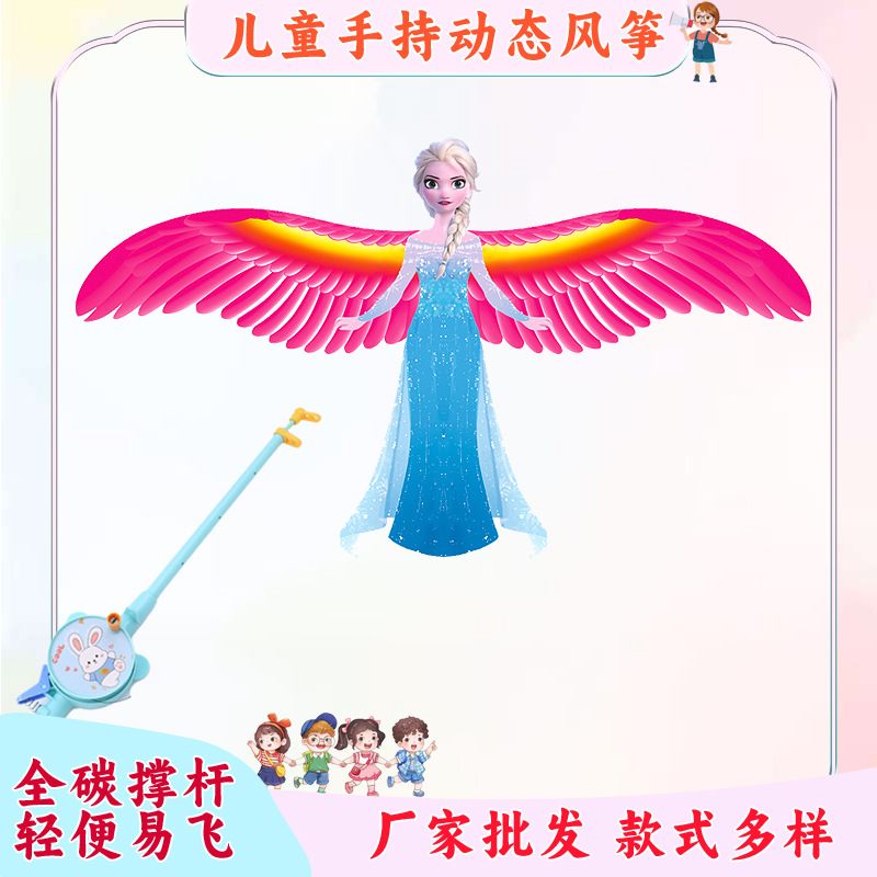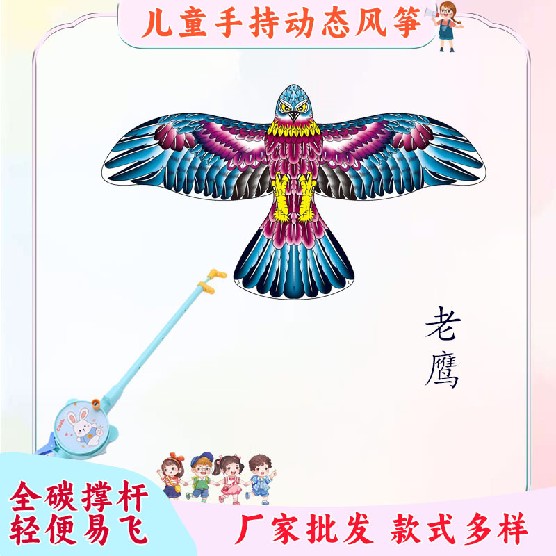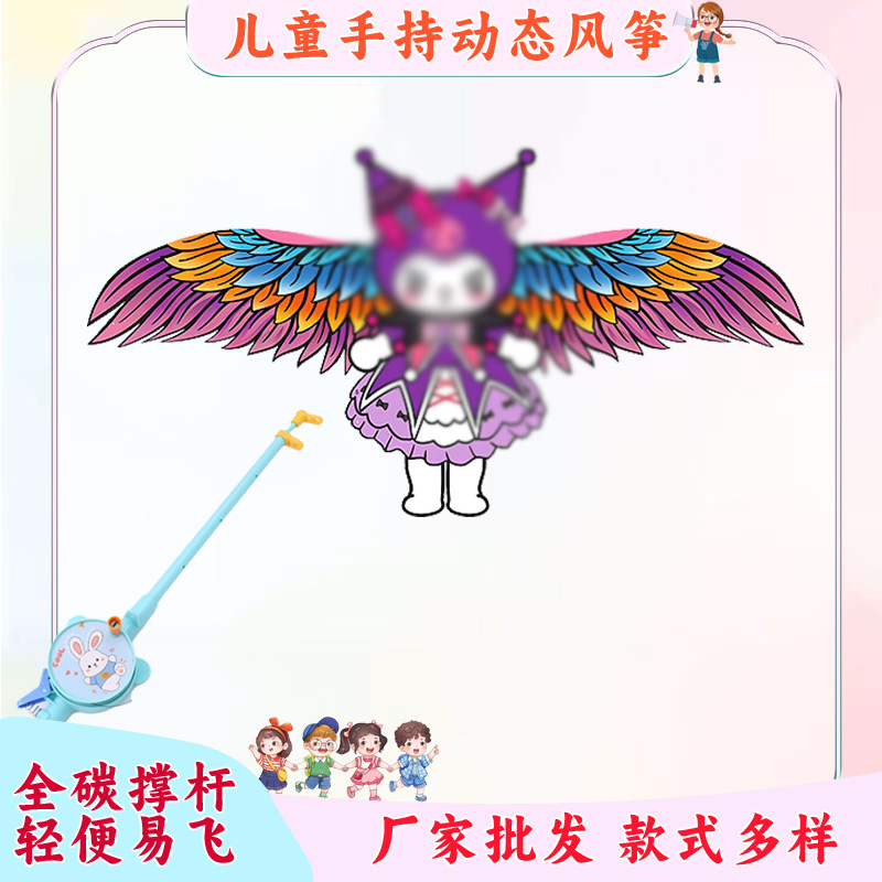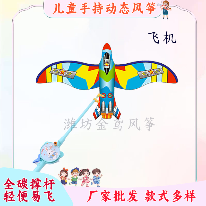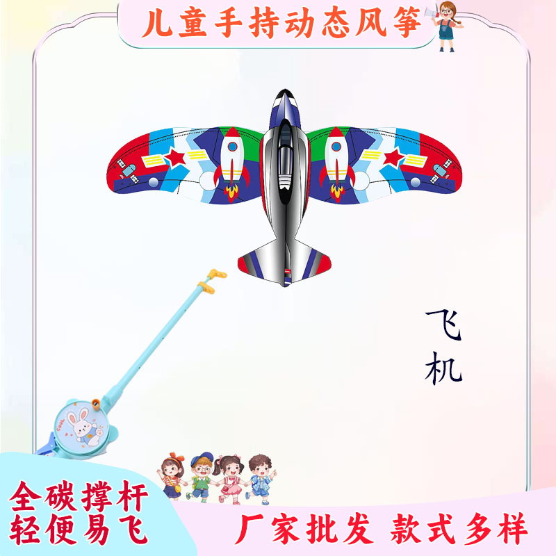 潍坊鱼竿风筝批发 儿童卡通动态塑料风筝 儿童手持风筝微风易飞