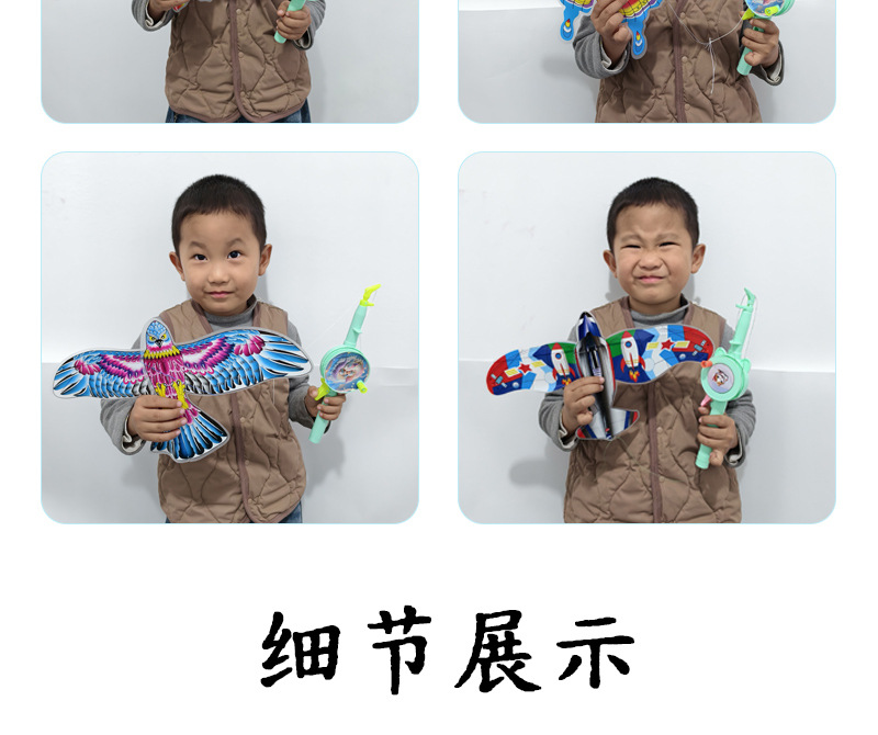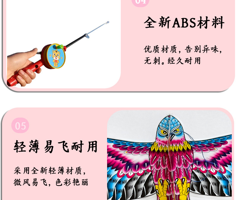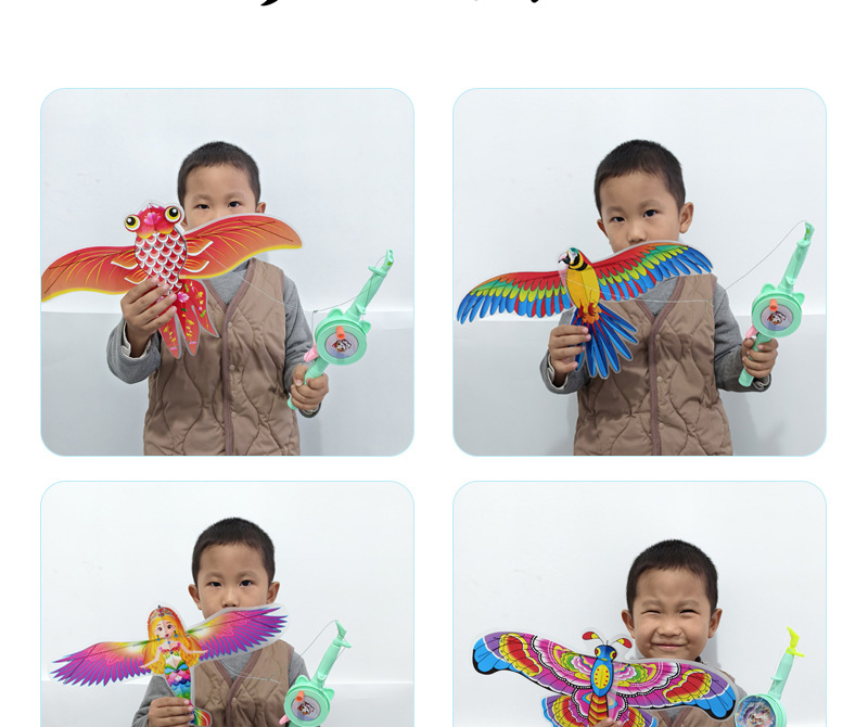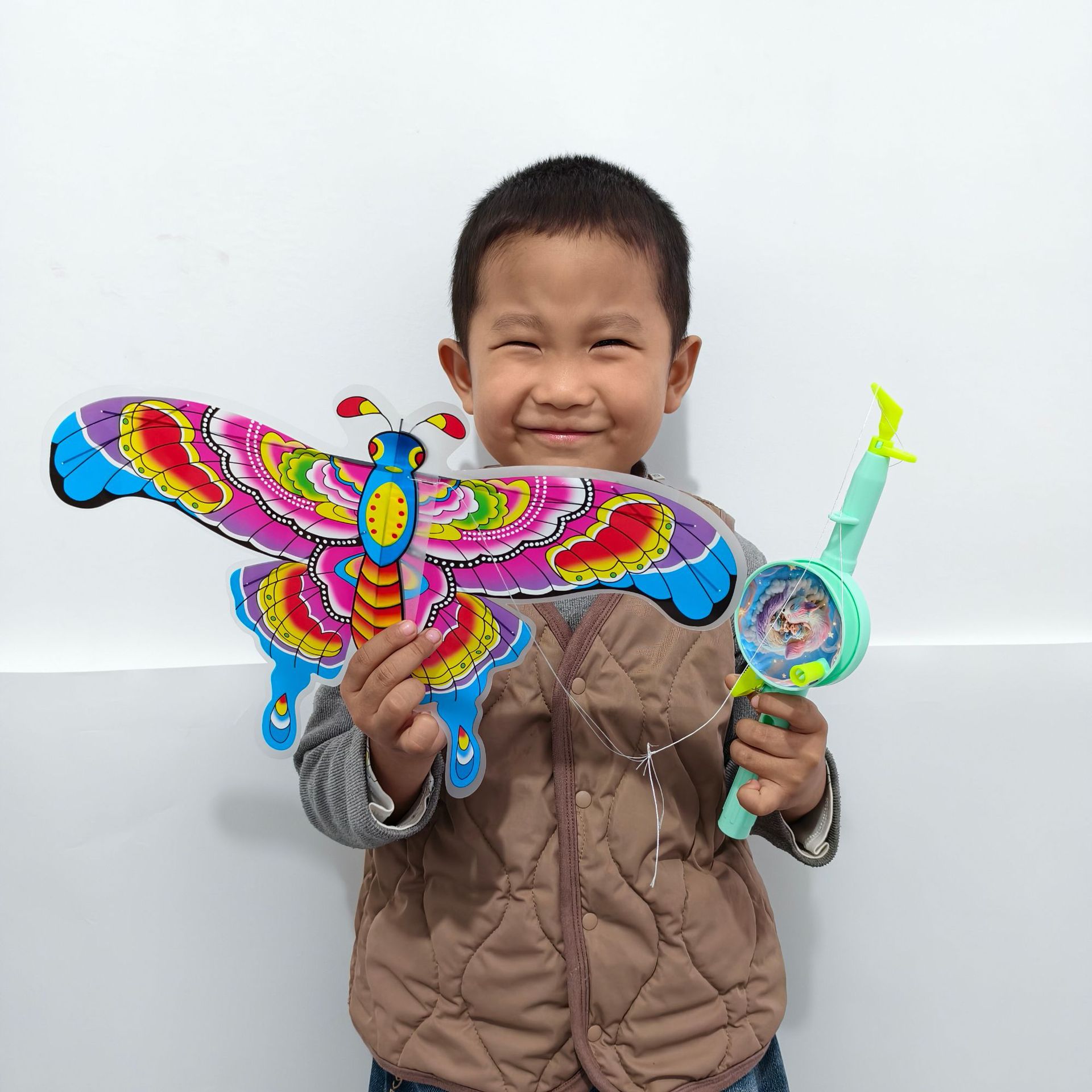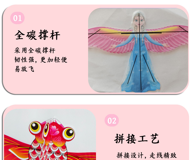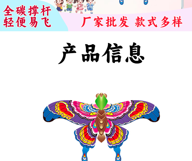 潍坊鱼竿风筝批发 儿童卡通动态塑料风筝 儿童手持风筝微风易飞