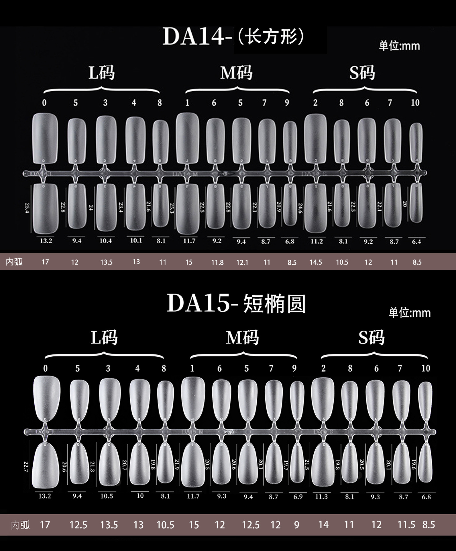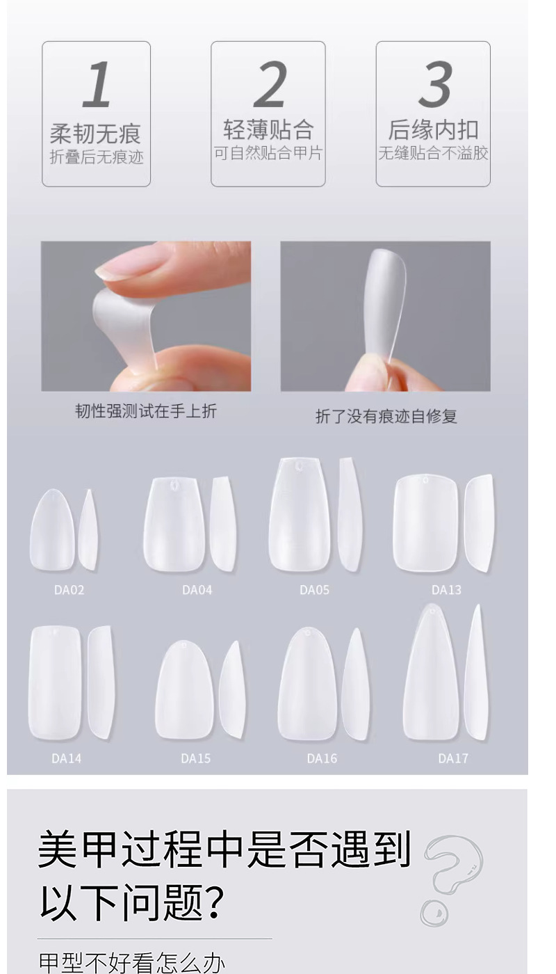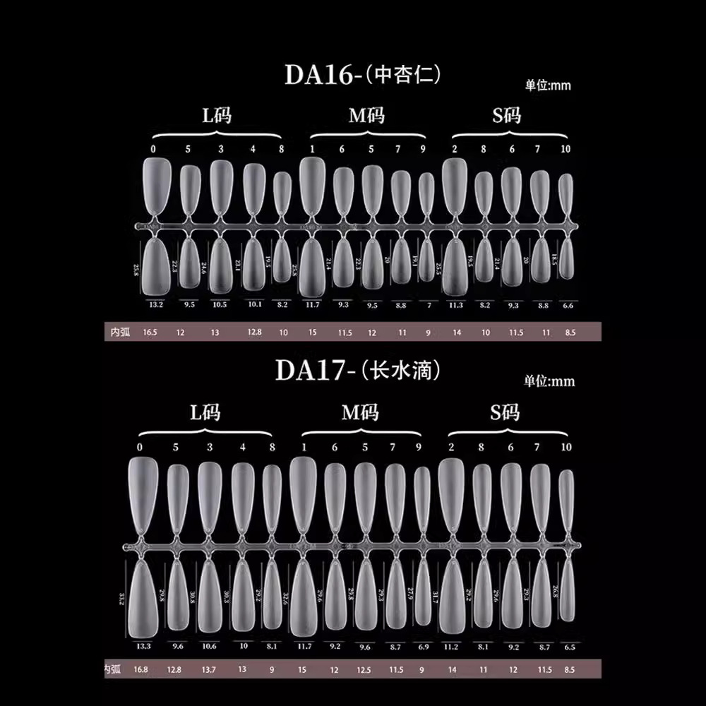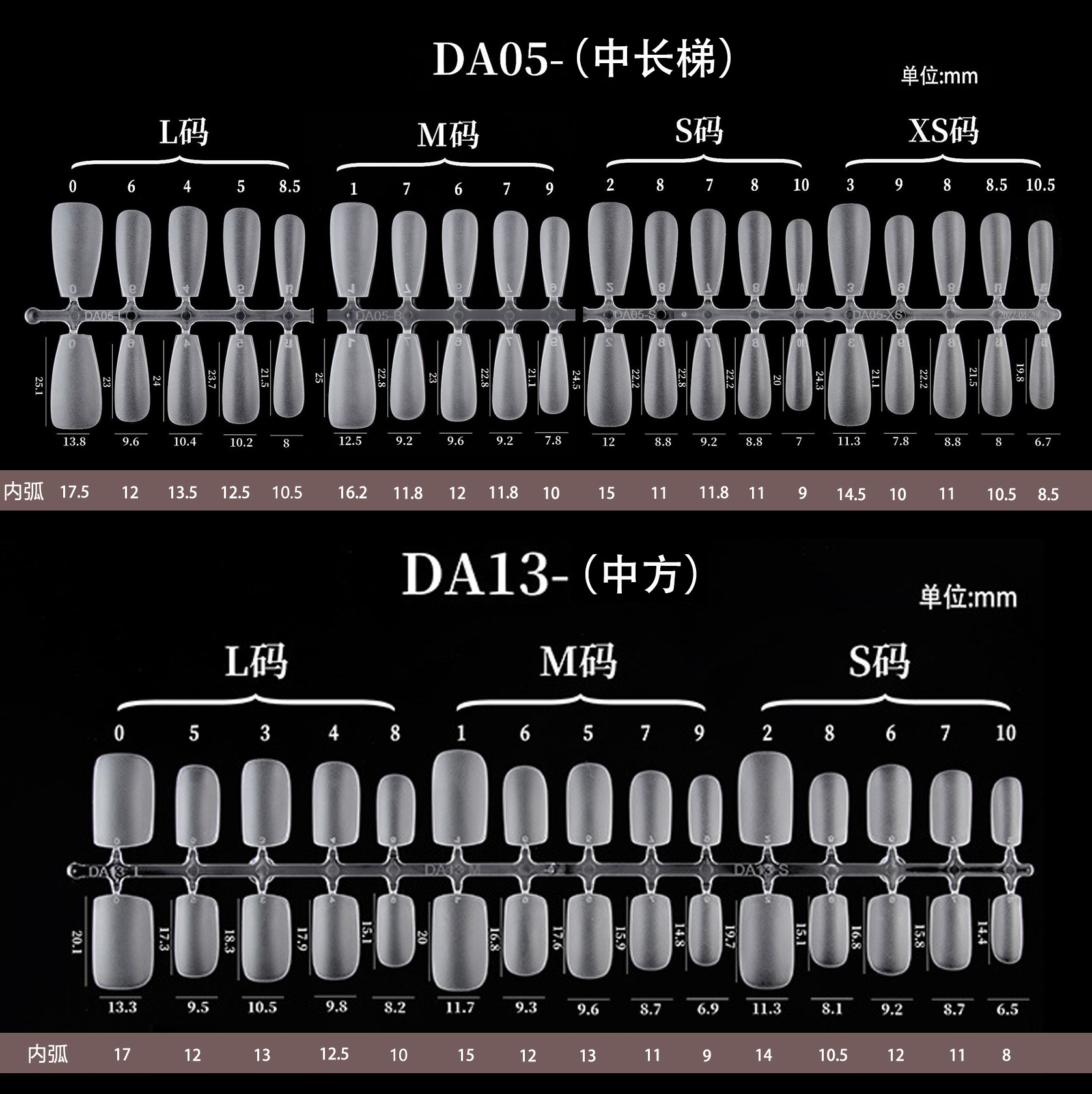 纳笛蔻高端穿戴甲用甲片薄款17款长梯形中梯平弧免刻磨延长贴分码