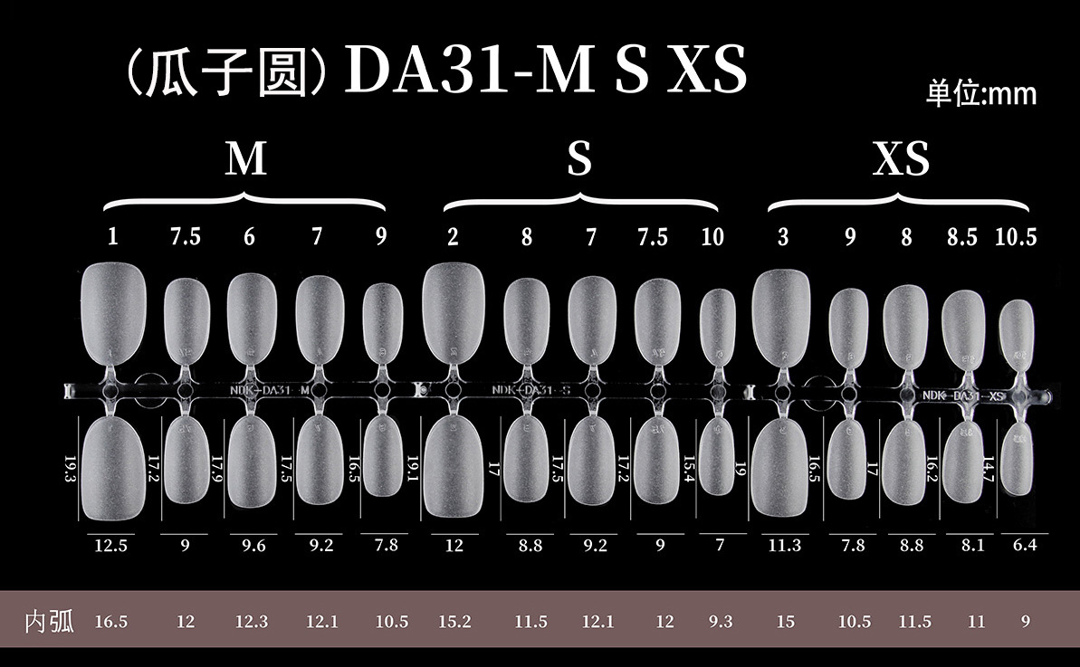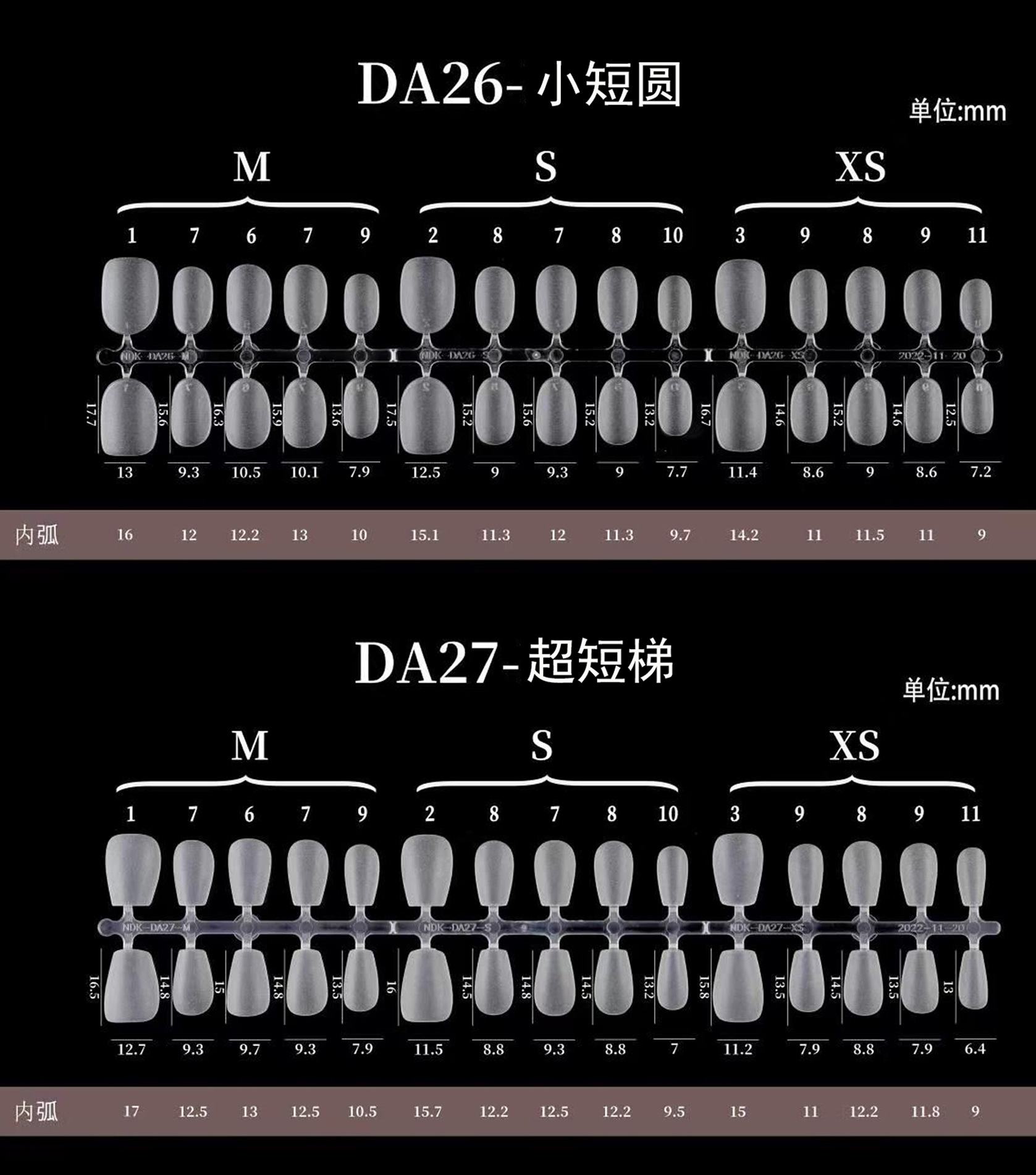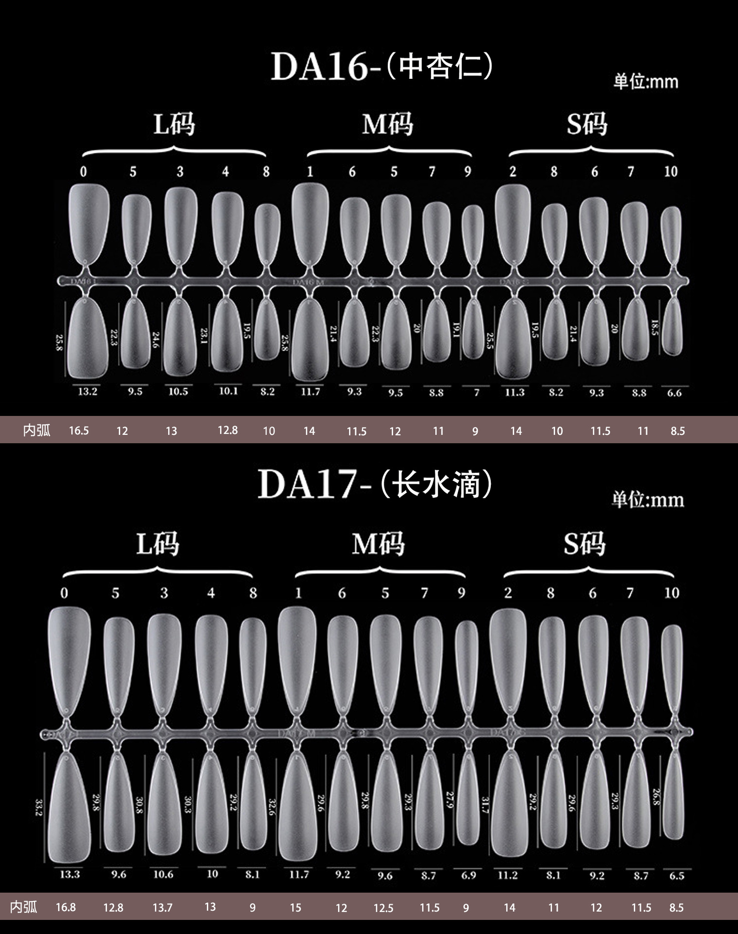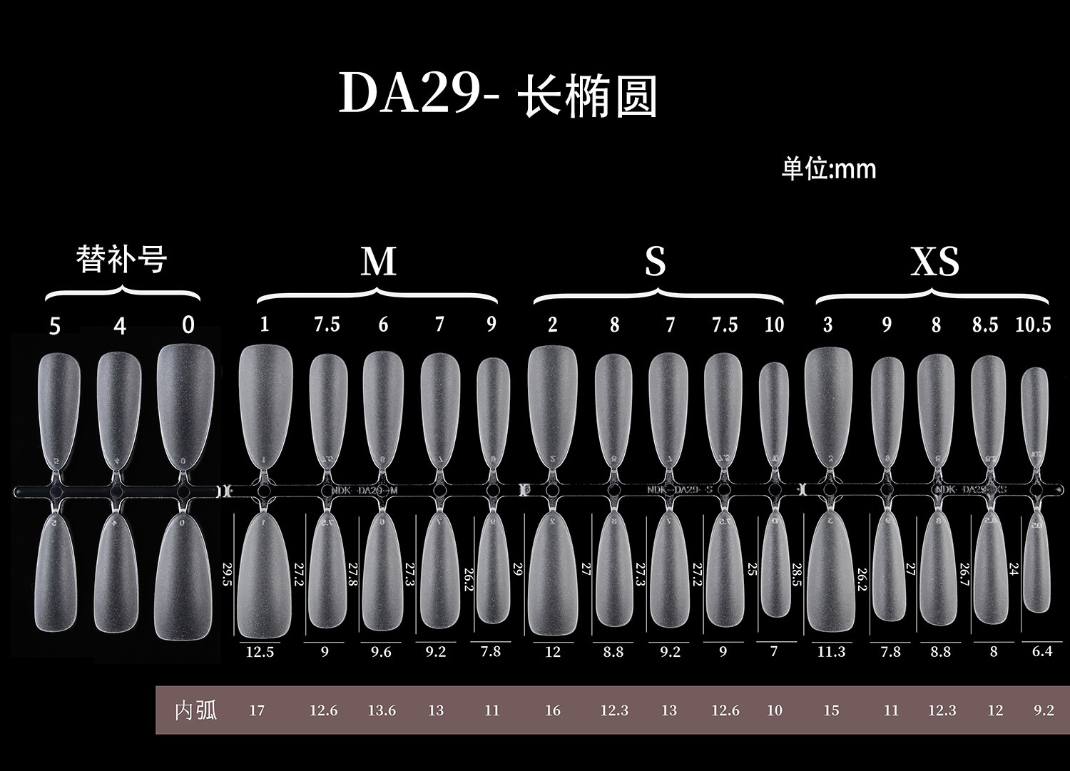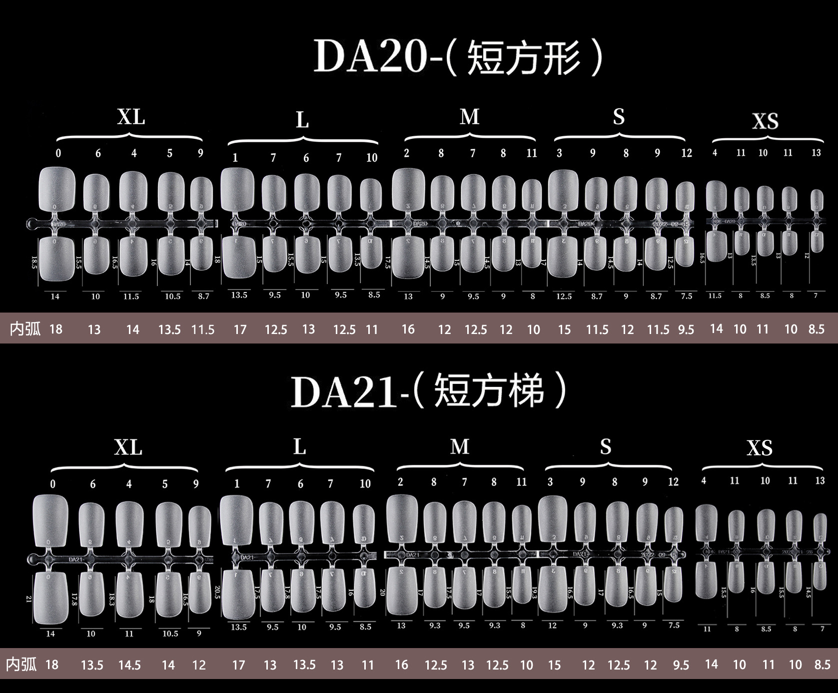 纳笛蔻高端穿戴甲用甲片薄款17款长梯形中梯平弧免刻磨延长贴分码