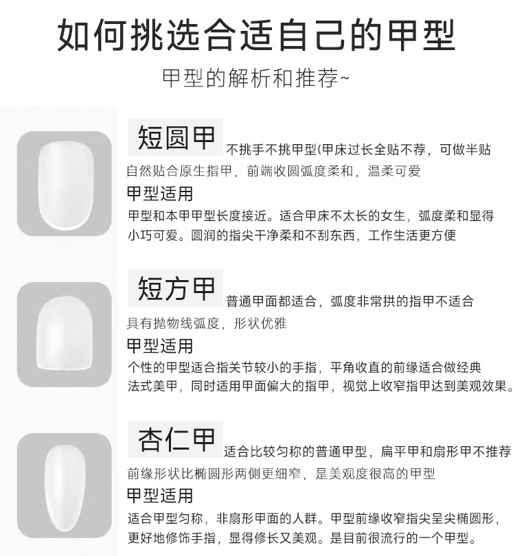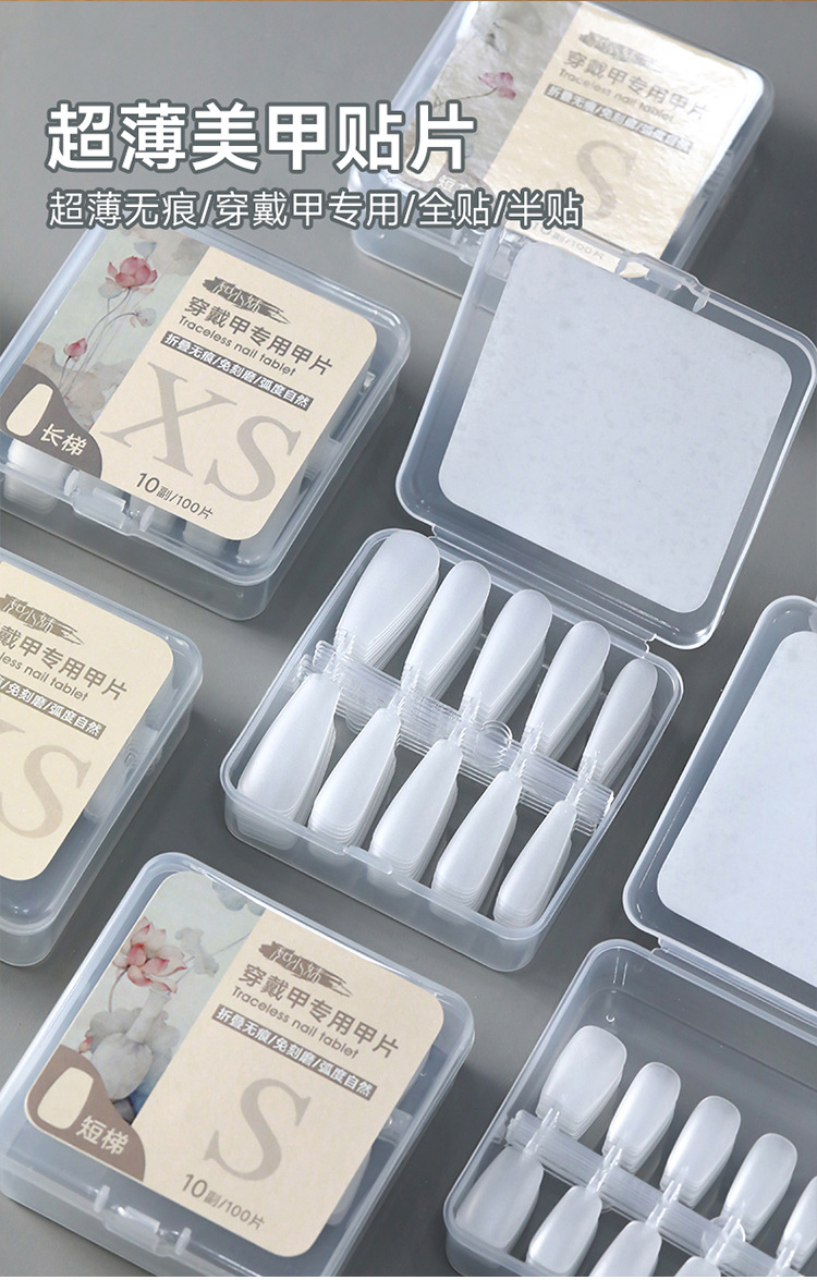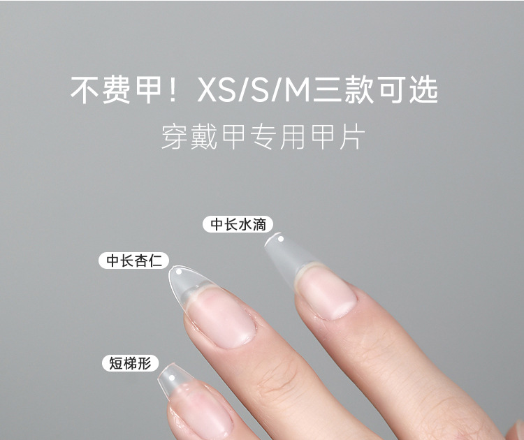 超薄无痕穿戴甲甲片短款分码水滴杏仁型免刻磨延长穿戴式美甲贴片